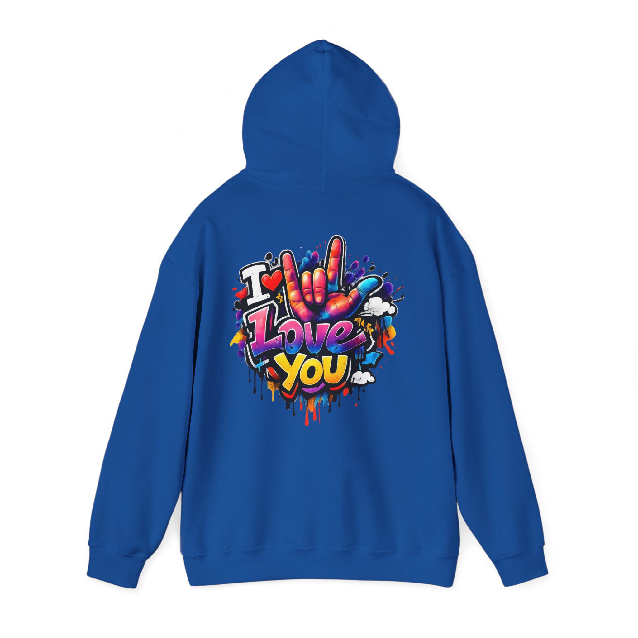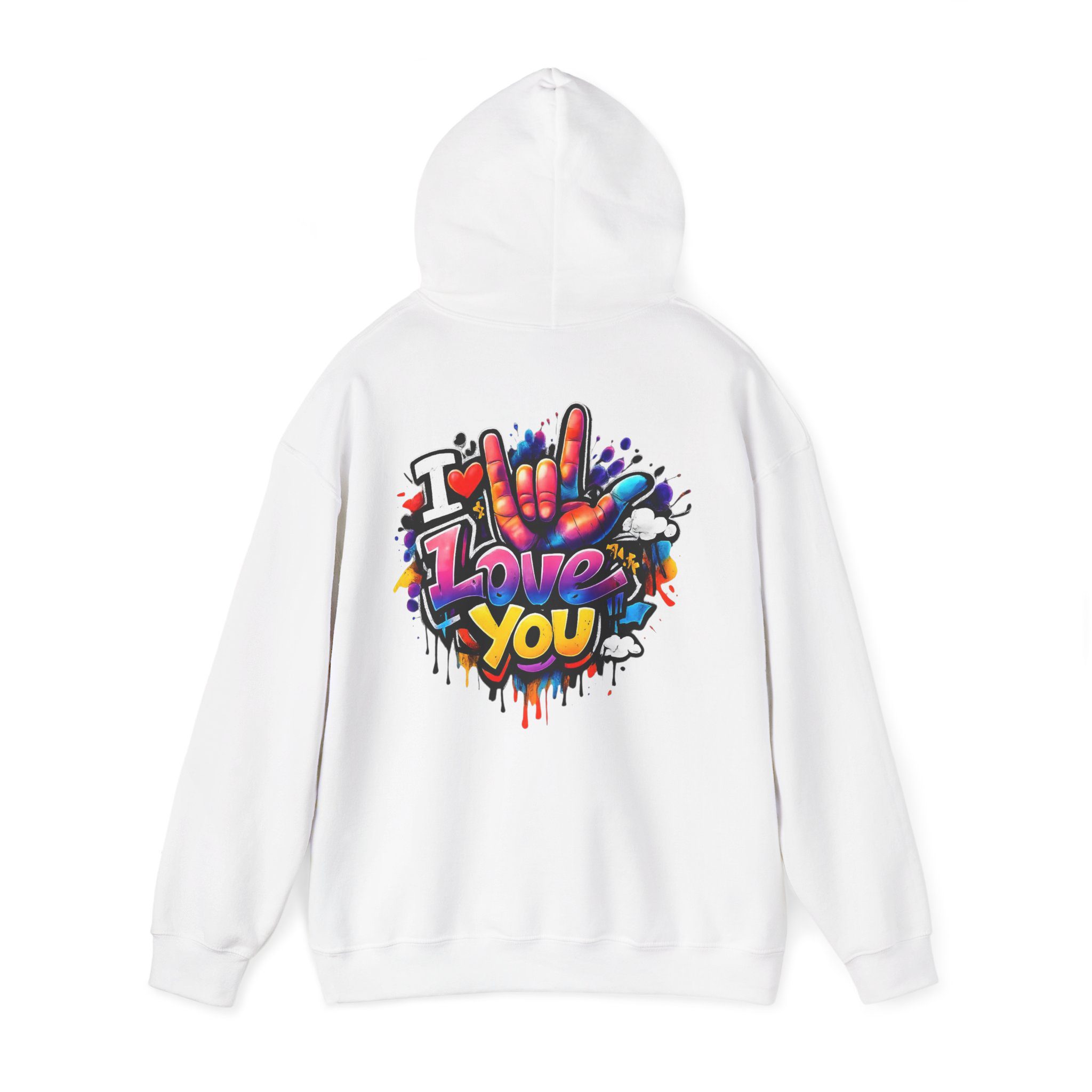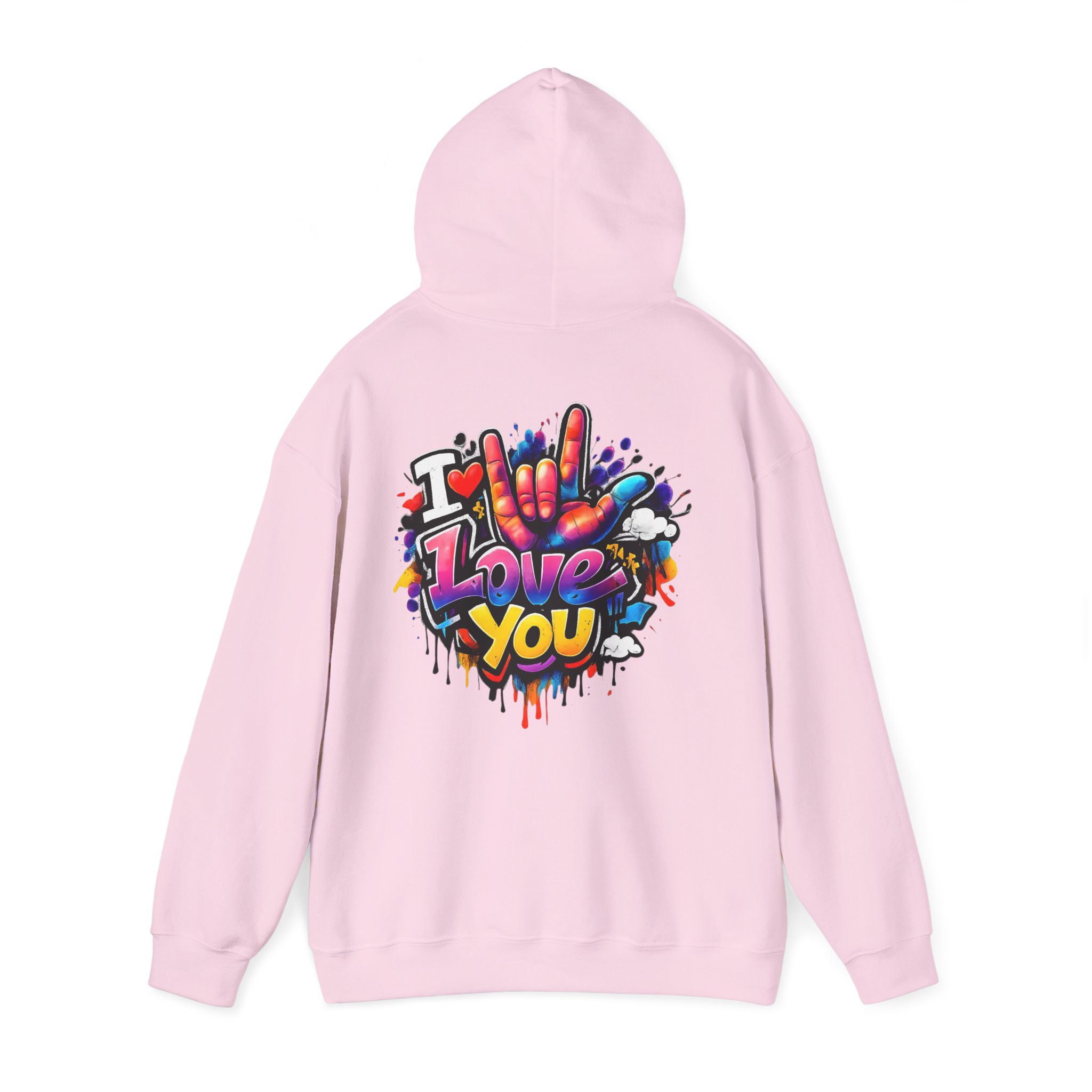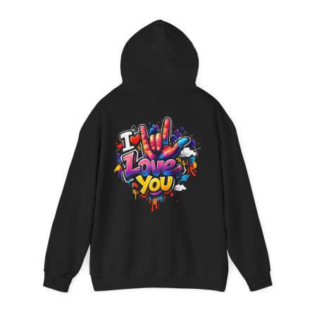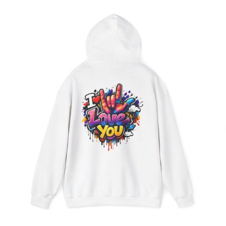Wärme zum Anziehen – kombiniert mit einem Hauch von Street-Art. Dieses mittelschwere Kapuzen-Sweatshirt verbindet ein weiches, langlebiges Material mit ausdrucksstarker Graffiti-Kunst: einem kleinen Brustmotiv und einem großen Rückendesign mit dem Schriftzug „I Love You“ in verspielten Farben und tropfenden Farbeffekten. Der Hoodie fühlt sich an wie eine Umarmung – angenehm weich auf der Haut, locker geschnitten und gemacht für viele Trage- und Waschgänge. Die doppellagige Kapuze mit farblich abgestimmter Kordel sorgt für einen hochwertigen Look, während die Kängurutasche die Hände warm hält. Für alle, die Liebe gerne laut, bunt und sichtbar ausdrücken, wird dieser Hoodie zu tragbarer Kunst.