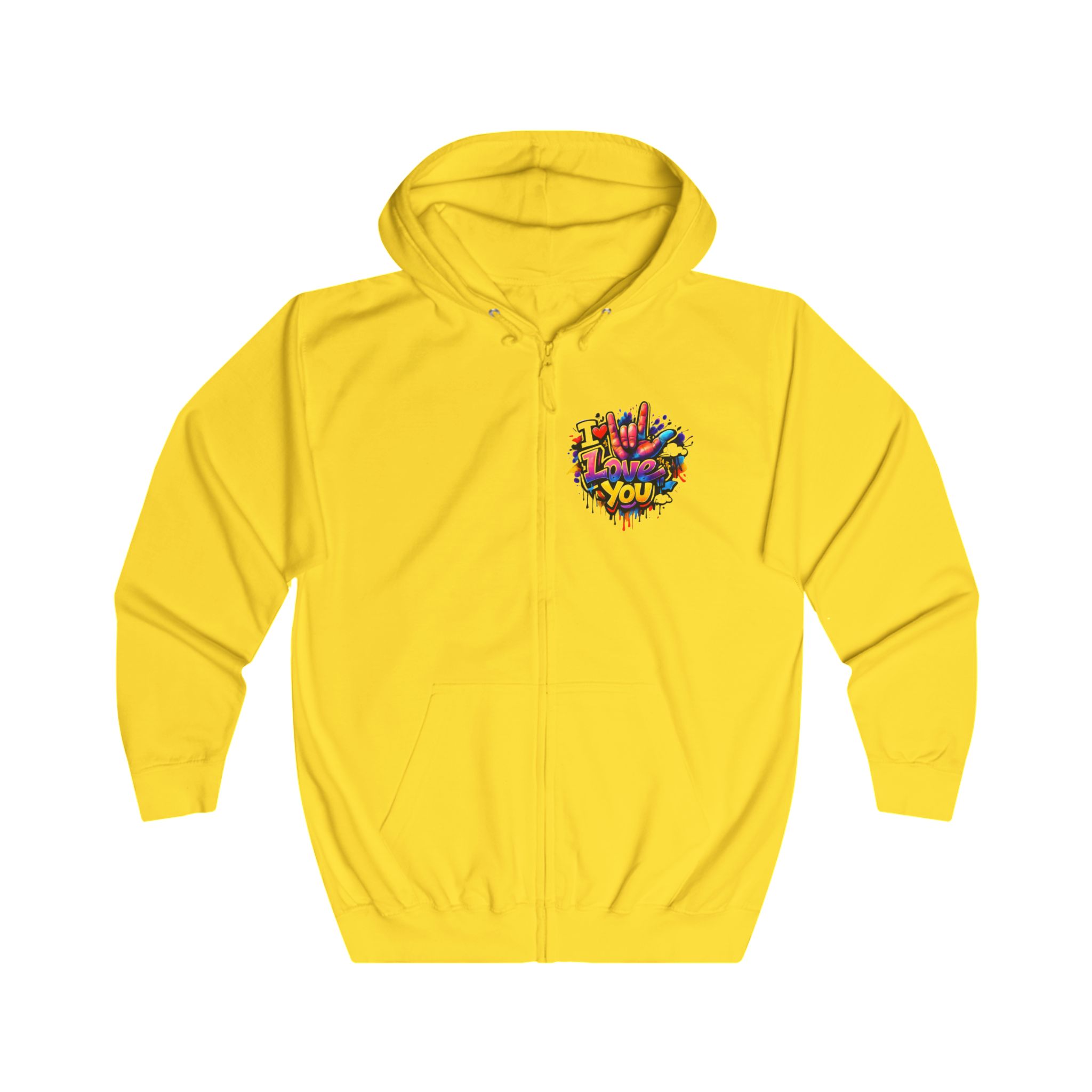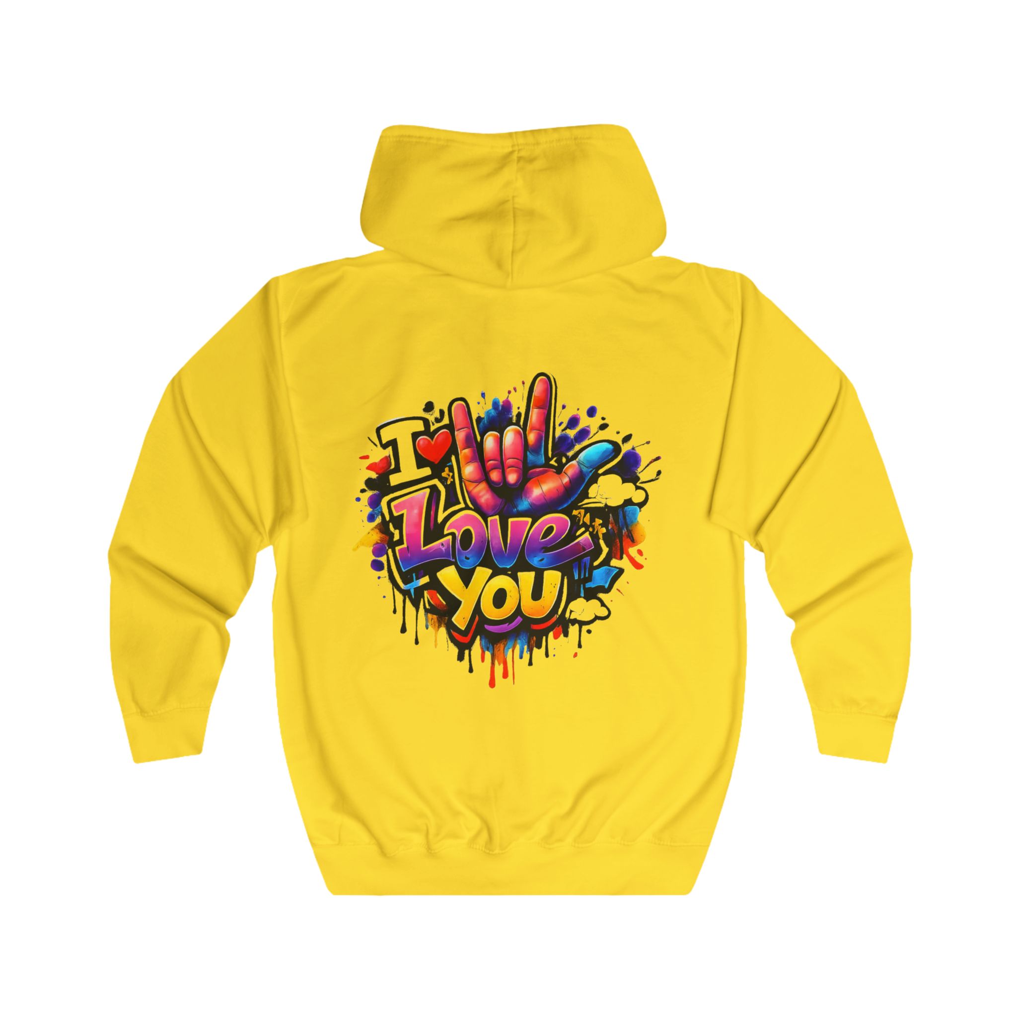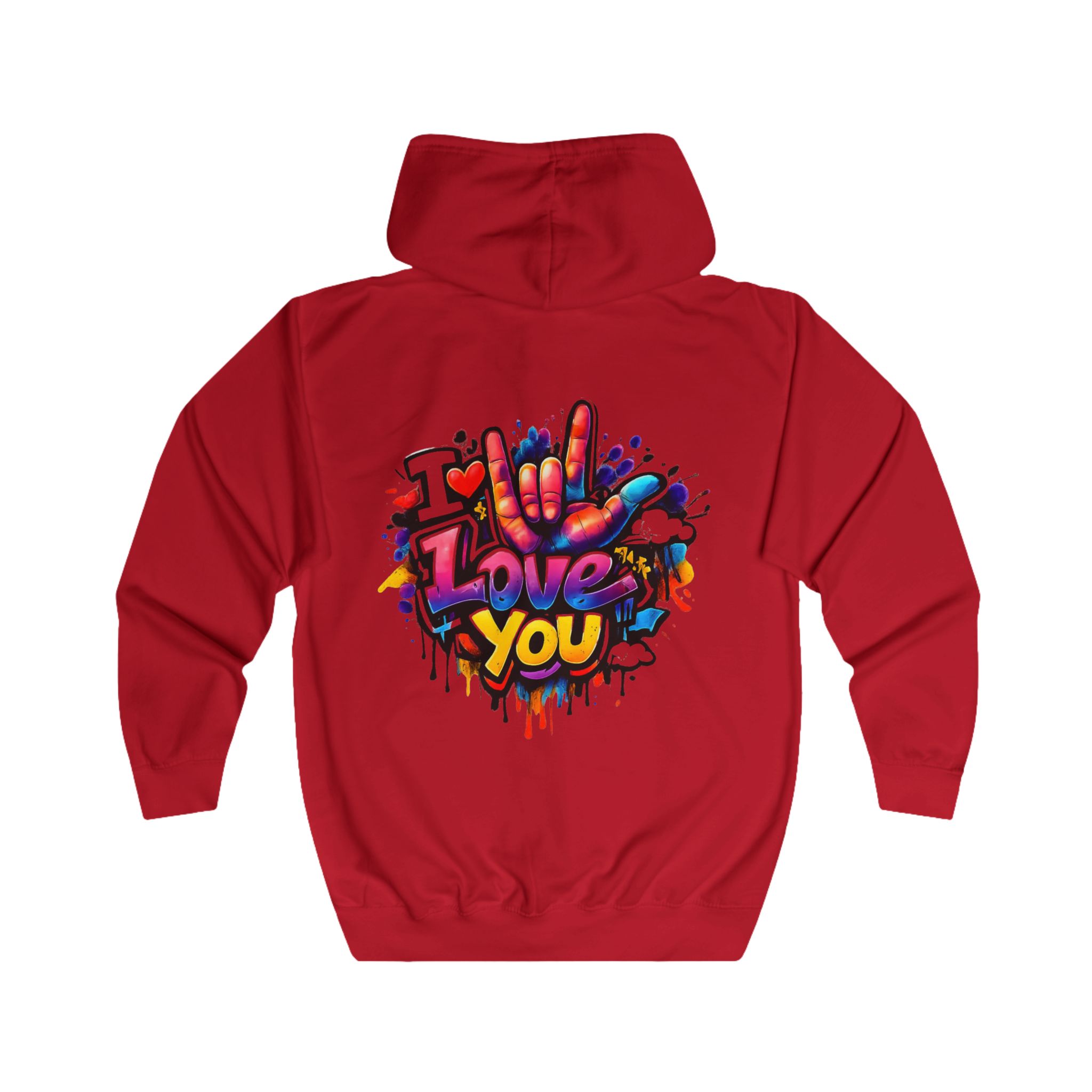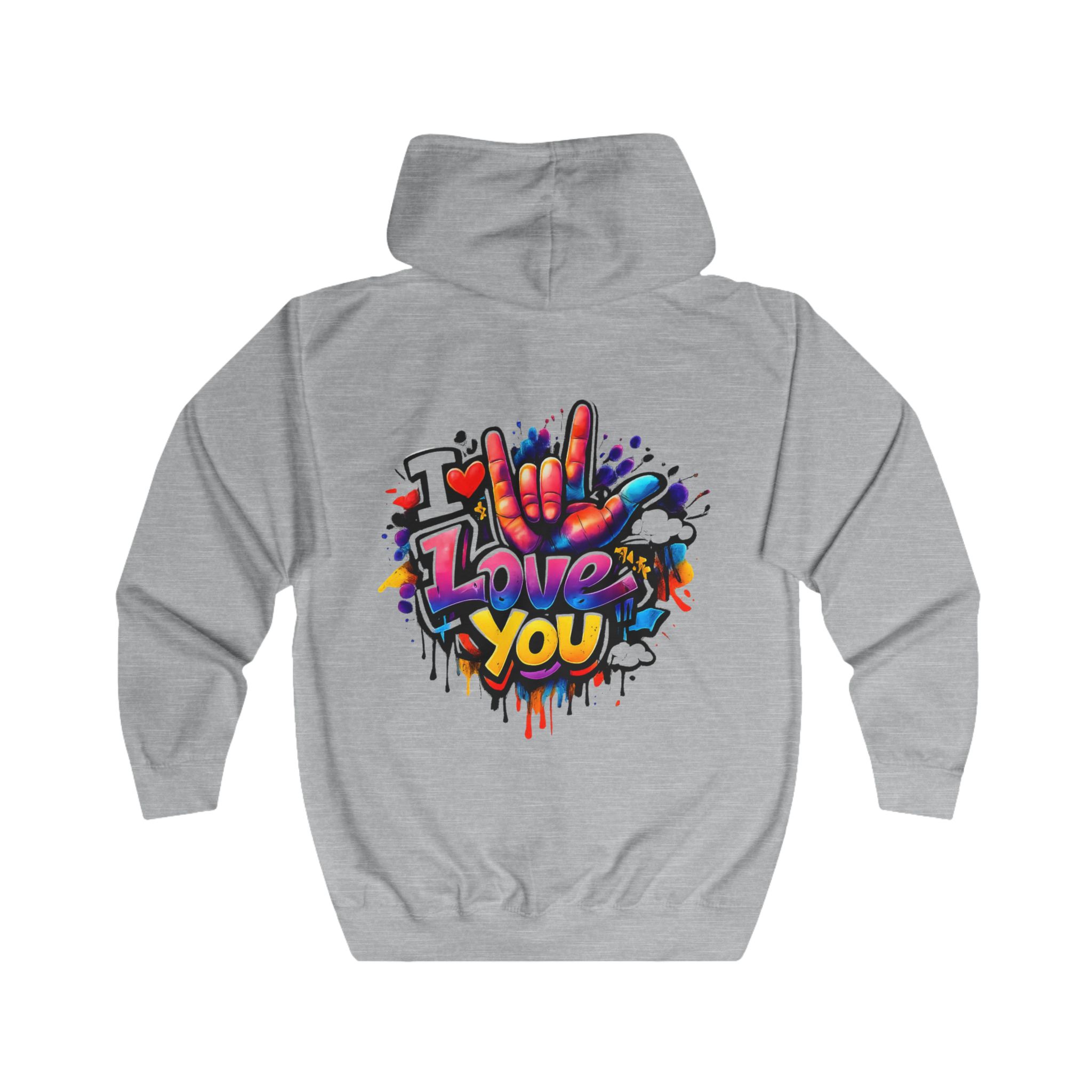 BASIC Street-Art Full-Zip Hoodie – „I Love You“ Graffiti DesignBASIC Street-Art Full-Zip Hoodie – „I Love You“ Graffiti Design
