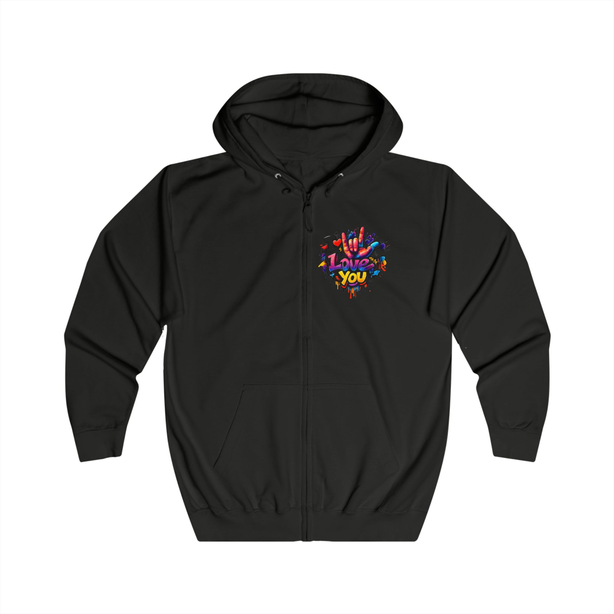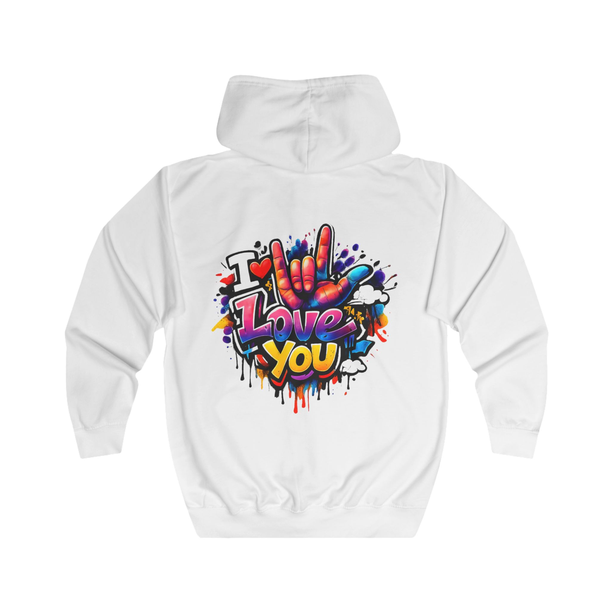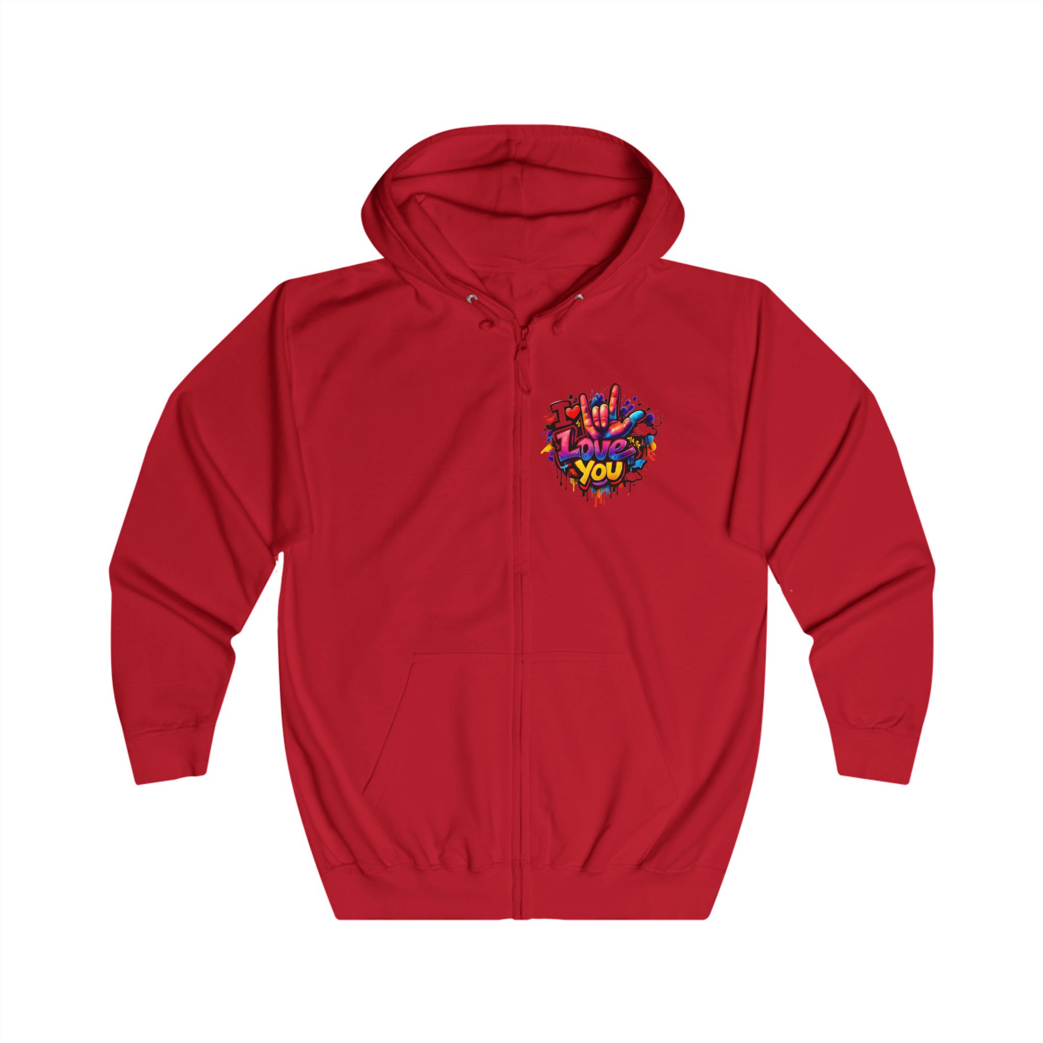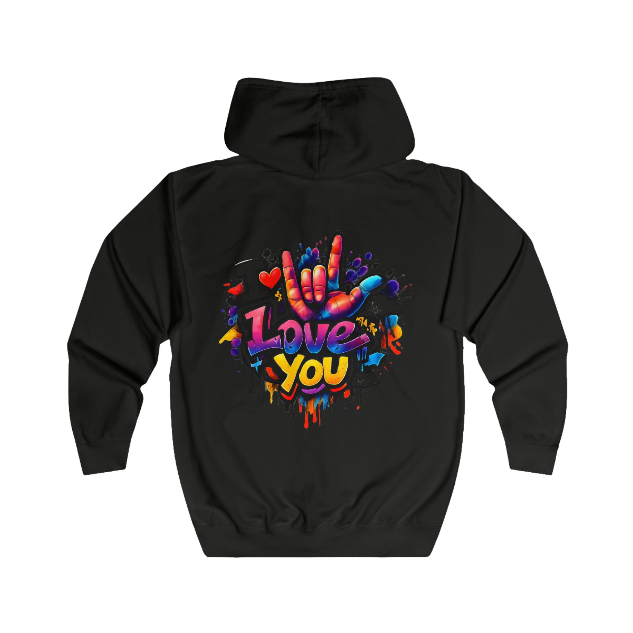 BASIC Street-Art Full-Zip Hoodie – „I Love You“ Graffiti DesignBASIC Street-Art Full-Zip Hoodie – „I Love You“ Graffiti Design