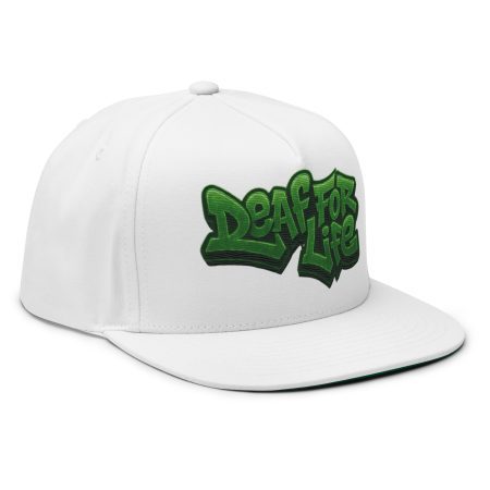 Flat Bill-Cap weiss mit Matrix Style – Deaf for Life – gestrickt