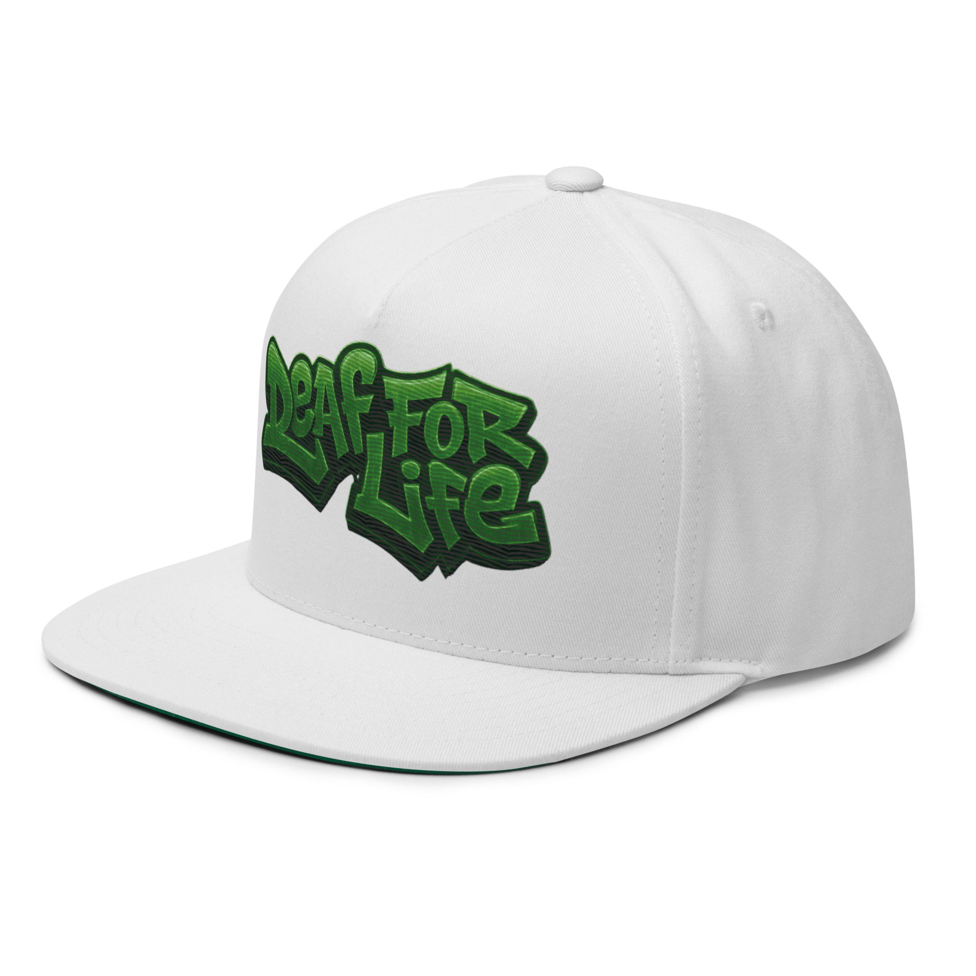 Flat Bill-Cap weiss mit Matrix Style – Deaf for Life – gestrickt