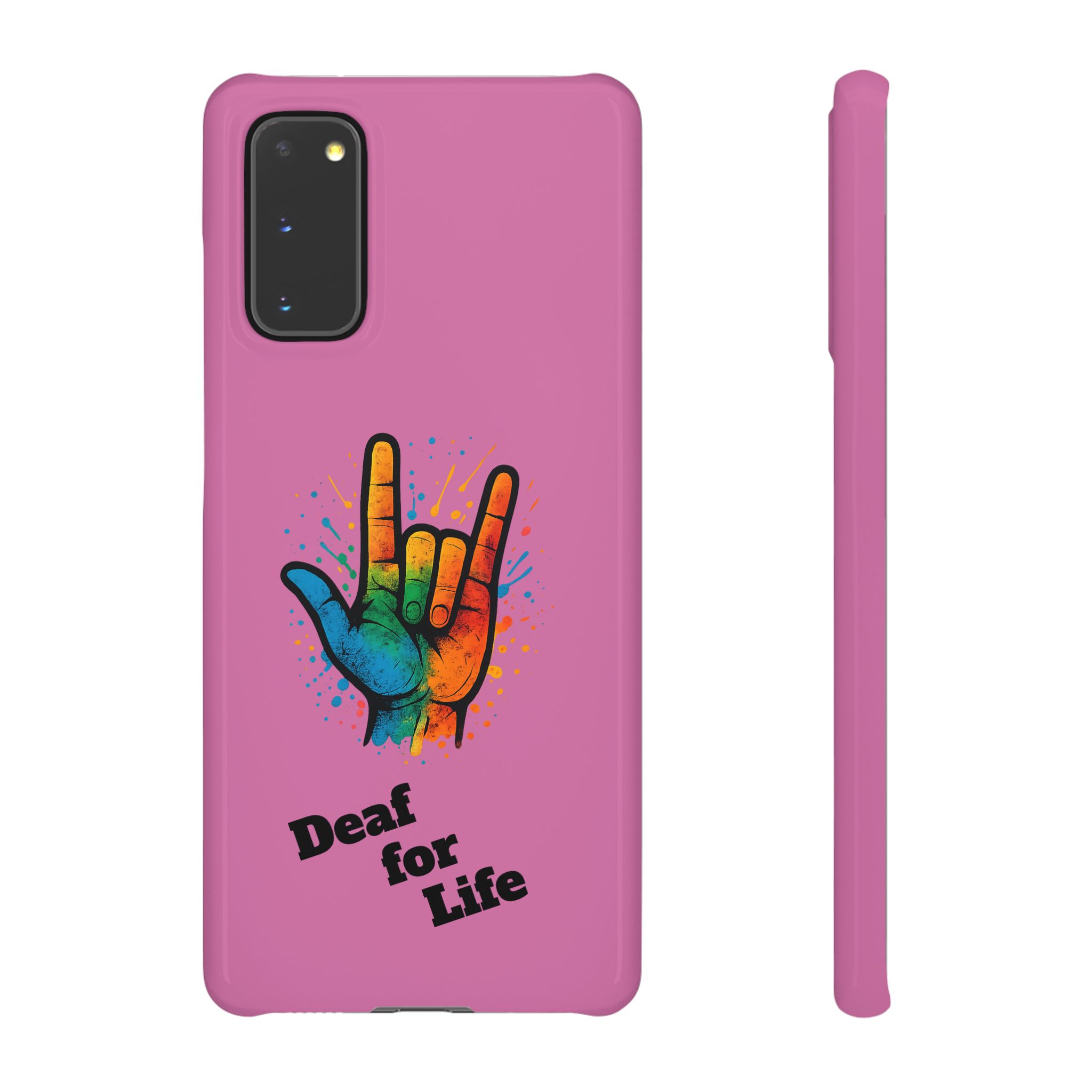 Diese lebendige Snap-Hülle ist eine Hommage an Individualität und Ausdruck, perfekt für alle, die ihre Persönlichkeit zeigen und gleichzeitig ihr Gerät schützen möchten. Diese aus robustem Polycarbonat gefertigte Hülle kombiniert Stärke mit Stil und sorgt dafür, dass Ihr Telefon aus der Masse hervorsticht. Das atemberaubende Design zeigt eine farbenfrohe Hand, die das „Ich liebe dich“-Zeichen in amerikanischer Gebärdensprache symbolisiert und eine einzigartige Botschaft der Liebe und Integration vermittelt. Egal, ob Sie Festivals oder Versammlungen besuchen oder einfach nur den Alltag genießen, dieses Snap Case verleiht Ihrem Alltag einen Hauch von Kreativität. Es ist perfekt für alle, die Wert auf Ausdruck legen, und somit ein ausgezeichnetes Geschenk für Freunde, Familie oder sich selbst, insbesondere zu Anlässen wie Geburtstagen, Feiertagen oder besonderen Feierlichkeiten im Zusammenhang mit der Gehörlosen- und Schwerhörigengemeinschaft. Die fröhliche Ausstrahlung dieser Hülle sorgt für positive Stimmung und regt Gespräche an – eine wunderbare Ergänzung zu Ihrem persönlichen Stil.