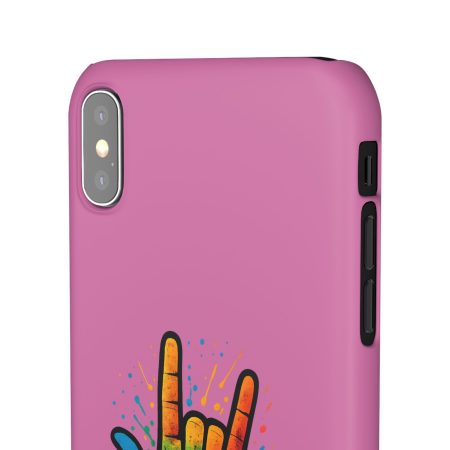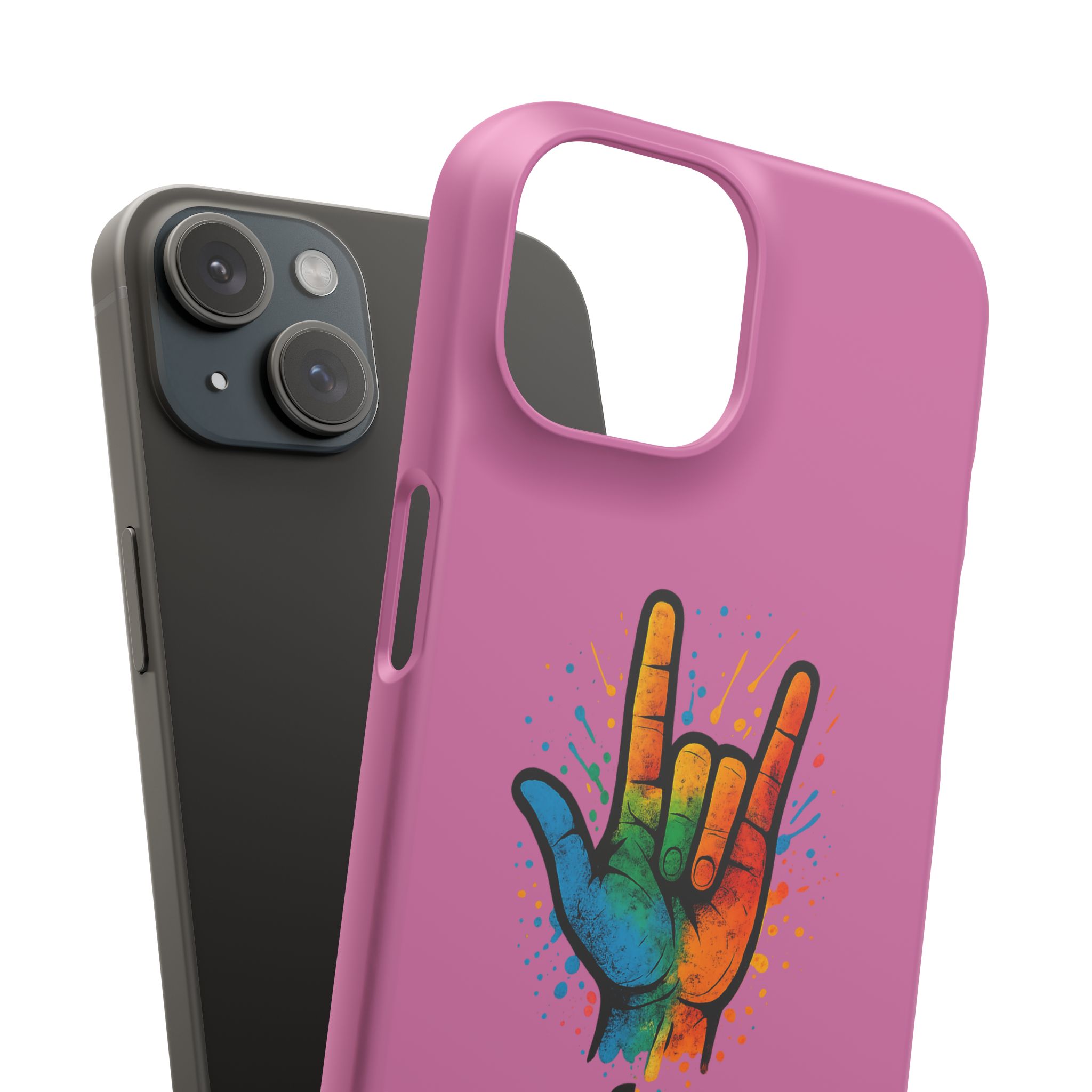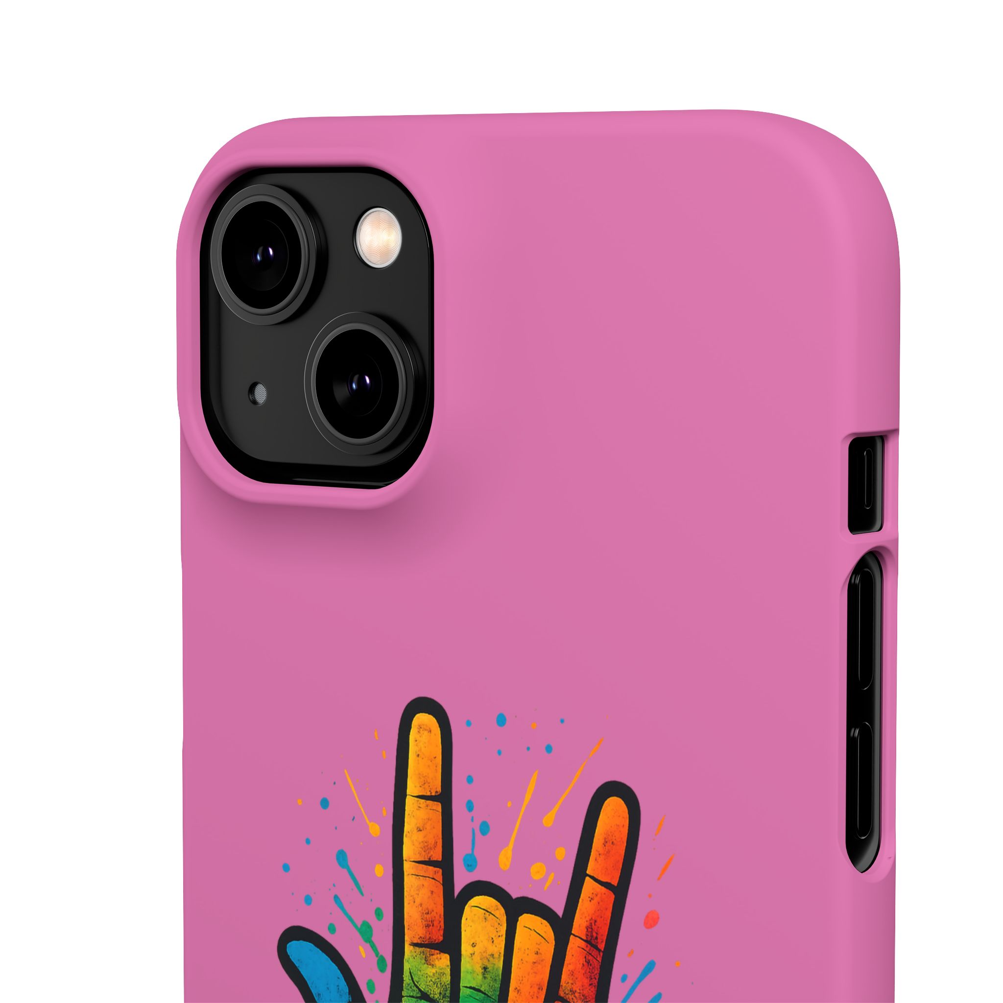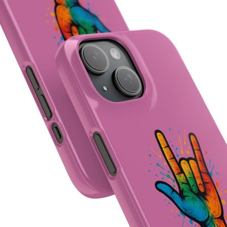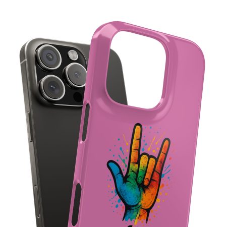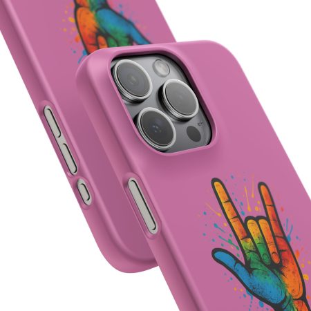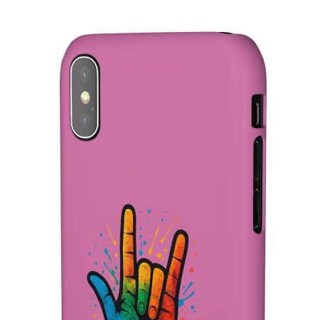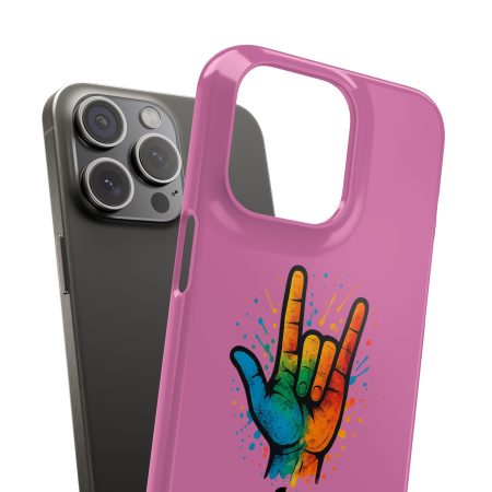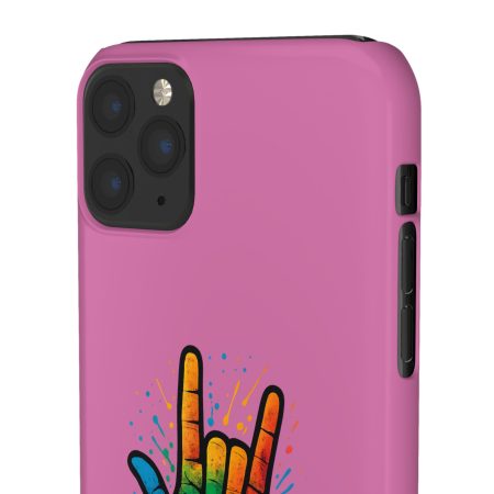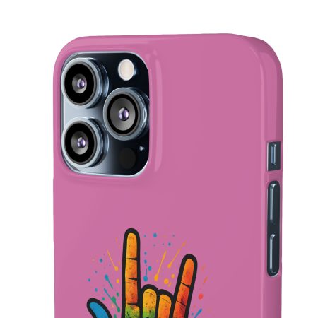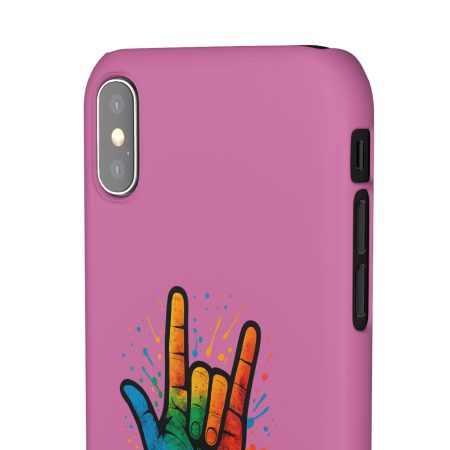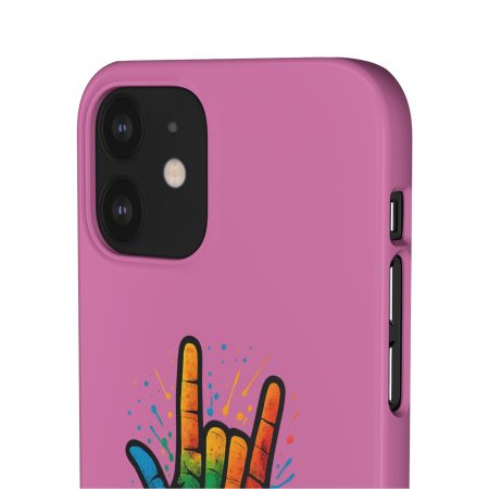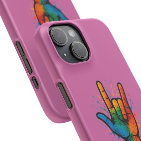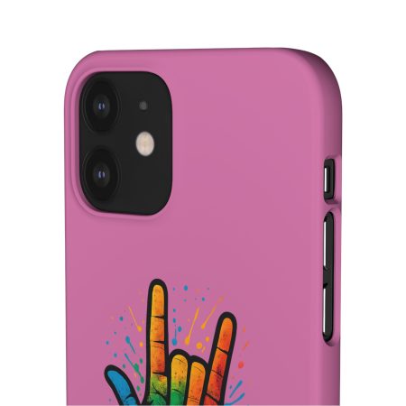 Diese lebendige Snap-Hülle ist eine Hommage an Individualität und Ausdruck, perfekt für alle, die ihre Persönlichkeit zeigen und gleichzeitig ihr Gerät schützen möchten. Diese aus robustem Polycarbonat gefertigte Hülle kombiniert Stärke mit Stil und sorgt dafür, dass Ihr Telefon aus der Masse hervorsticht. Das atemberaubende Design zeigt eine farbenfrohe Hand, die das „Ich liebe dich“-Zeichen in amerikanischer Gebärdensprache symbolisiert und eine einzigartige Botschaft der Liebe und Integration vermittelt. Egal, ob Sie Festivals oder Versammlungen besuchen oder einfach nur den Alltag genießen, dieses Snap Case verleiht Ihrem Alltag einen Hauch von Kreativität. Es ist perfekt für alle, die Wert auf Ausdruck legen, und somit ein ausgezeichnetes Geschenk für Freunde, Familie oder sich selbst, insbesondere zu Anlässen wie Geburtstagen, Feiertagen oder besonderen Feierlichkeiten im Zusammenhang mit der Gehörlosen- und Schwerhörigengemeinschaft. Die fröhliche Ausstrahlung dieser Hülle sorgt für positive Stimmung und regt Gespräche an – eine wunderbare Ergänzung zu Ihrem persönlichen Stil.