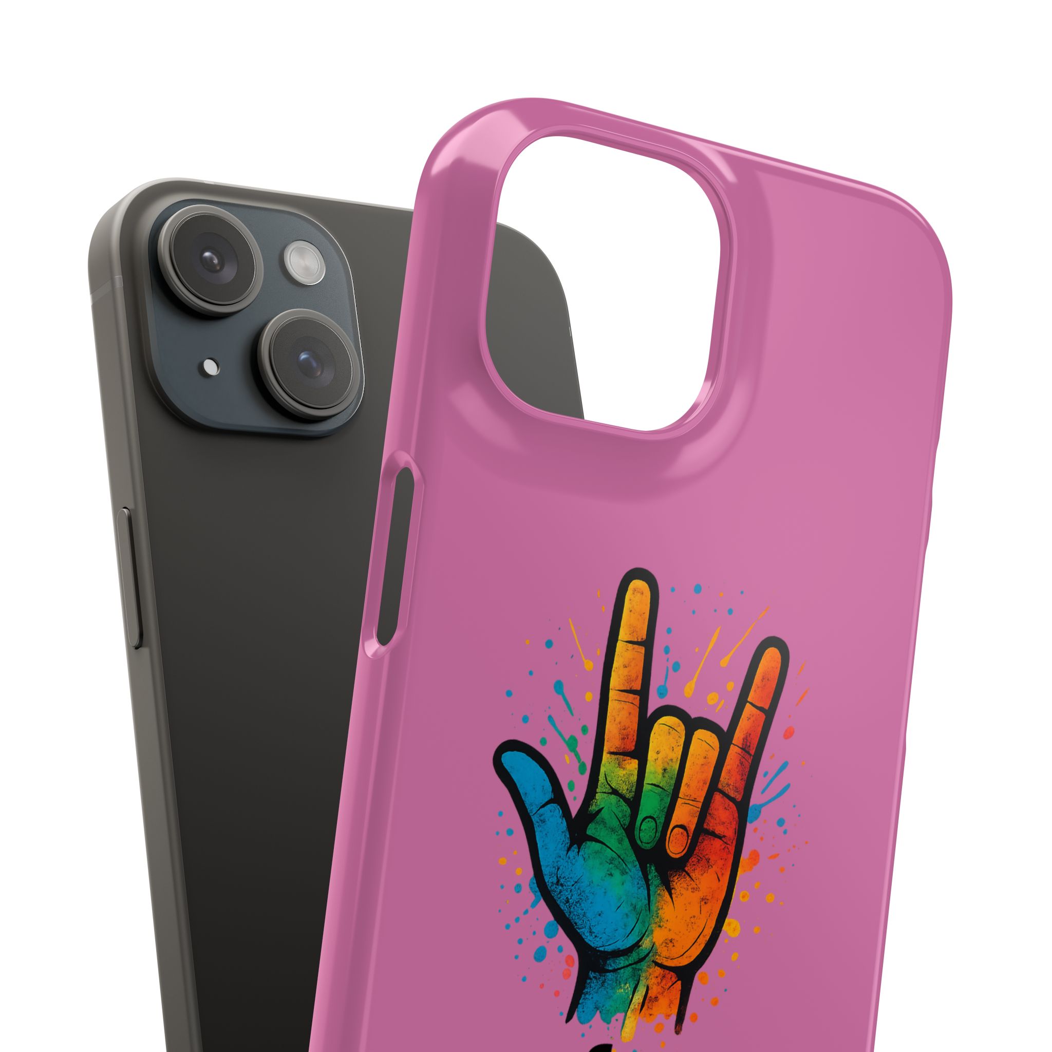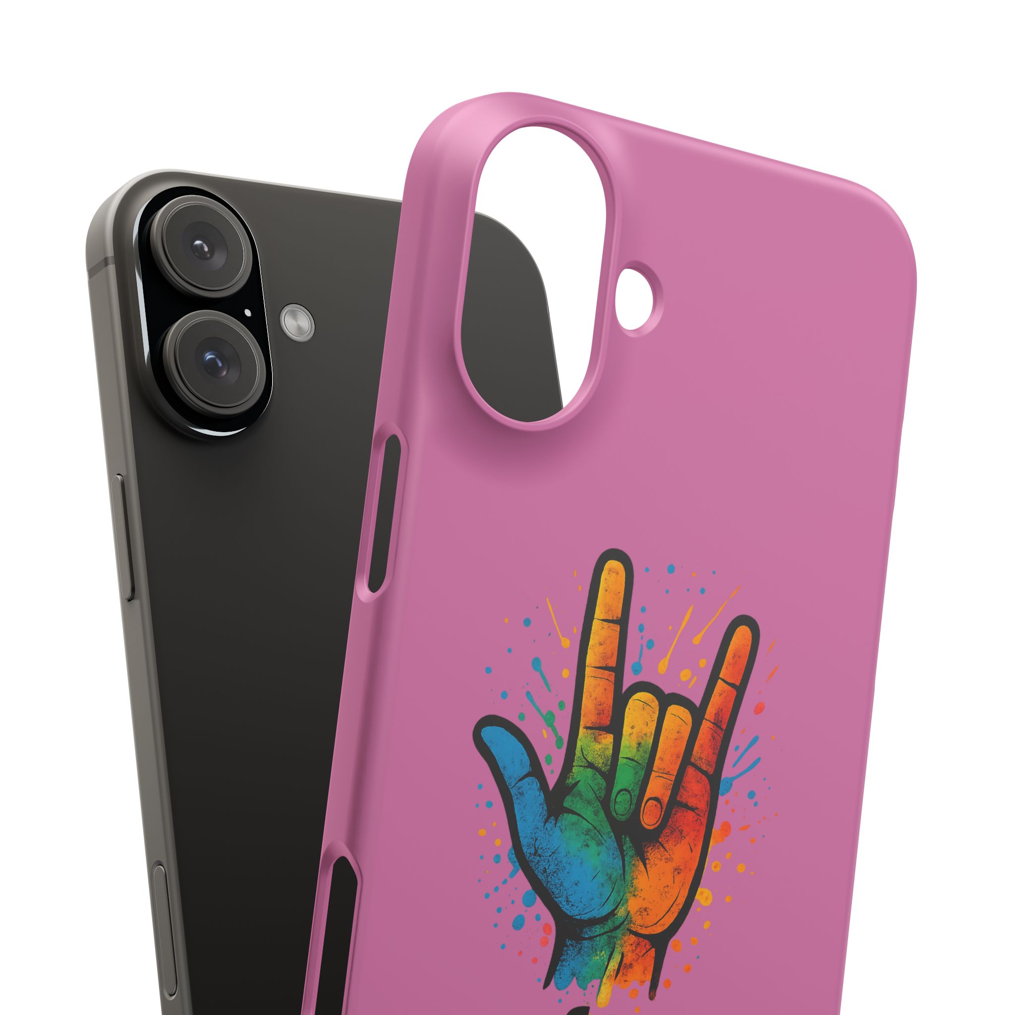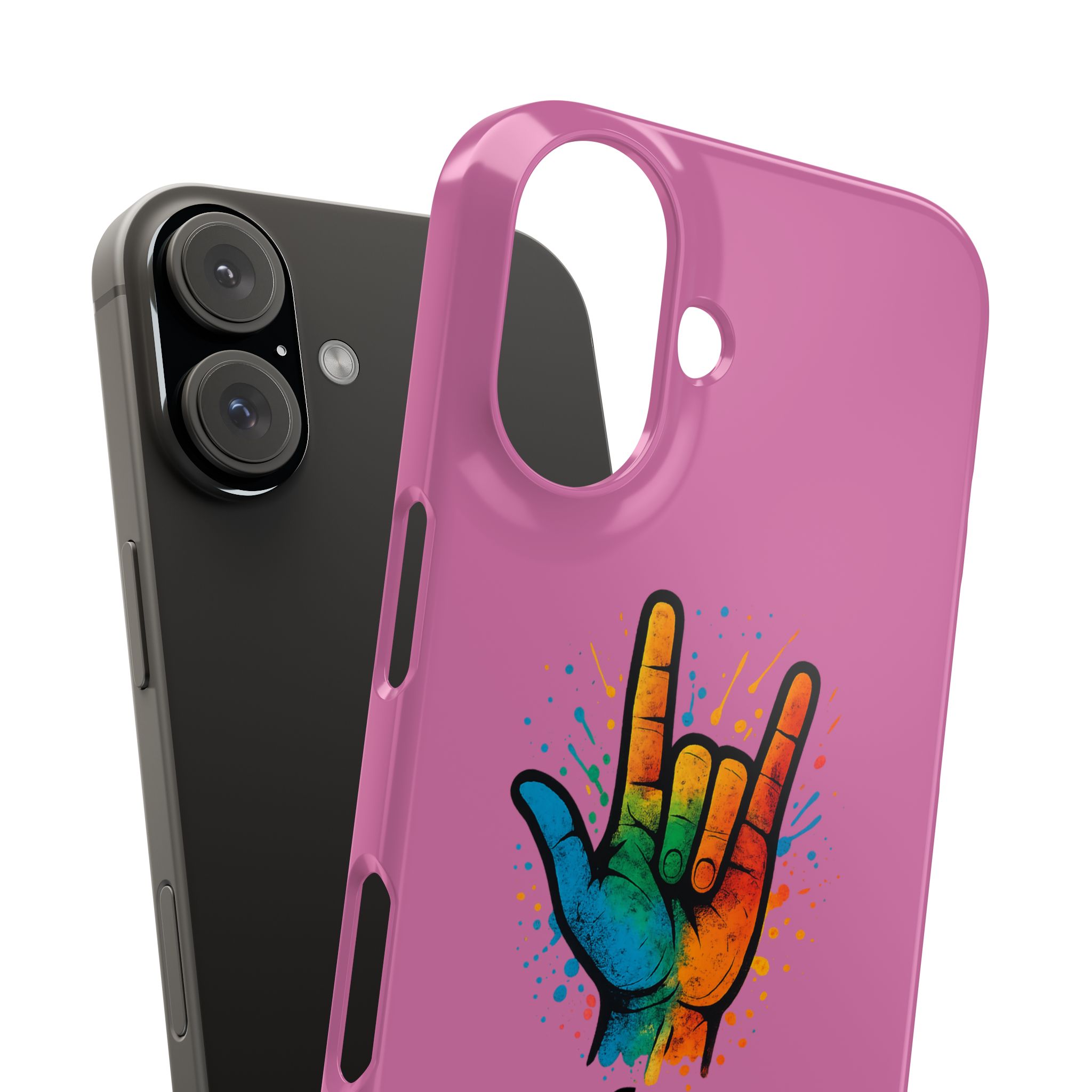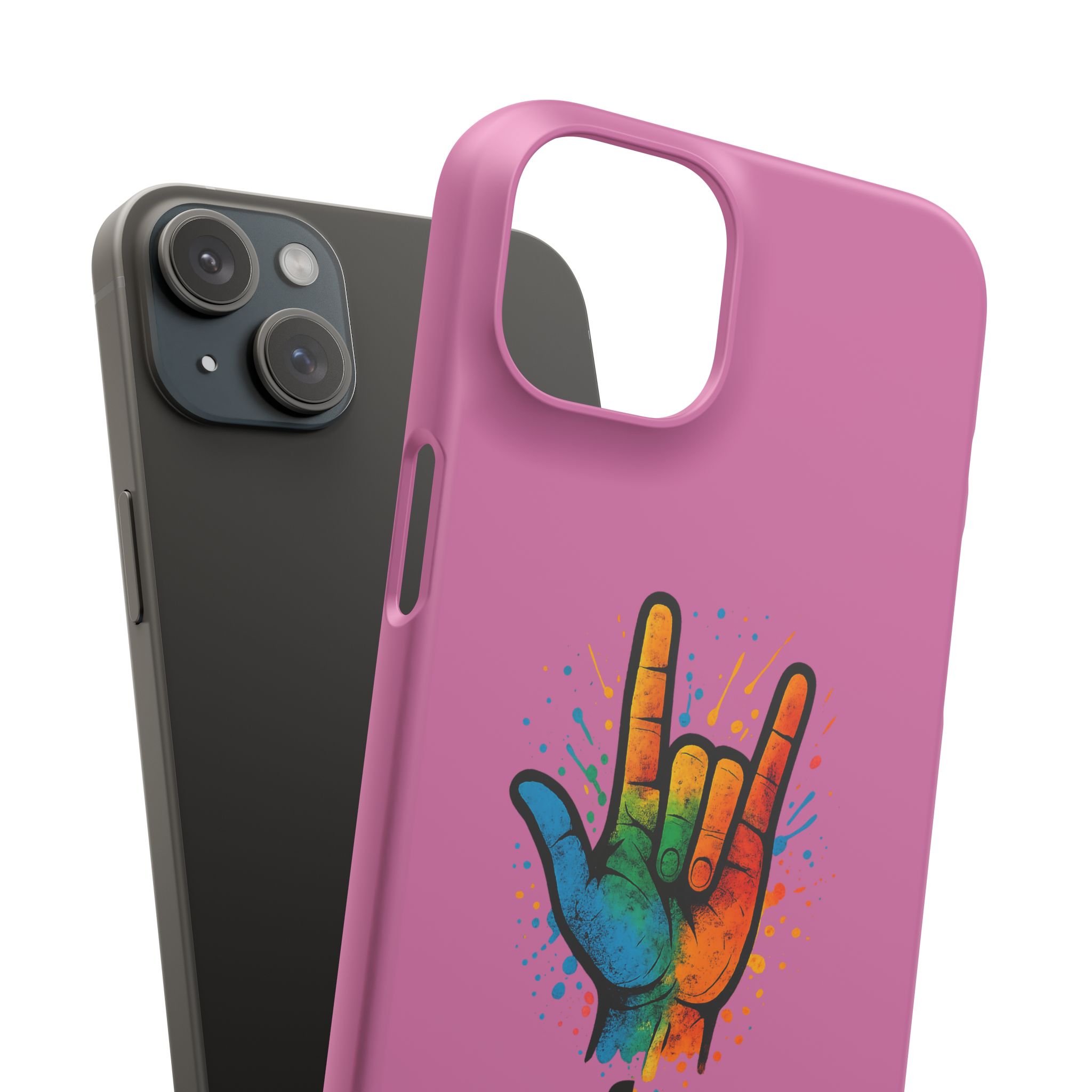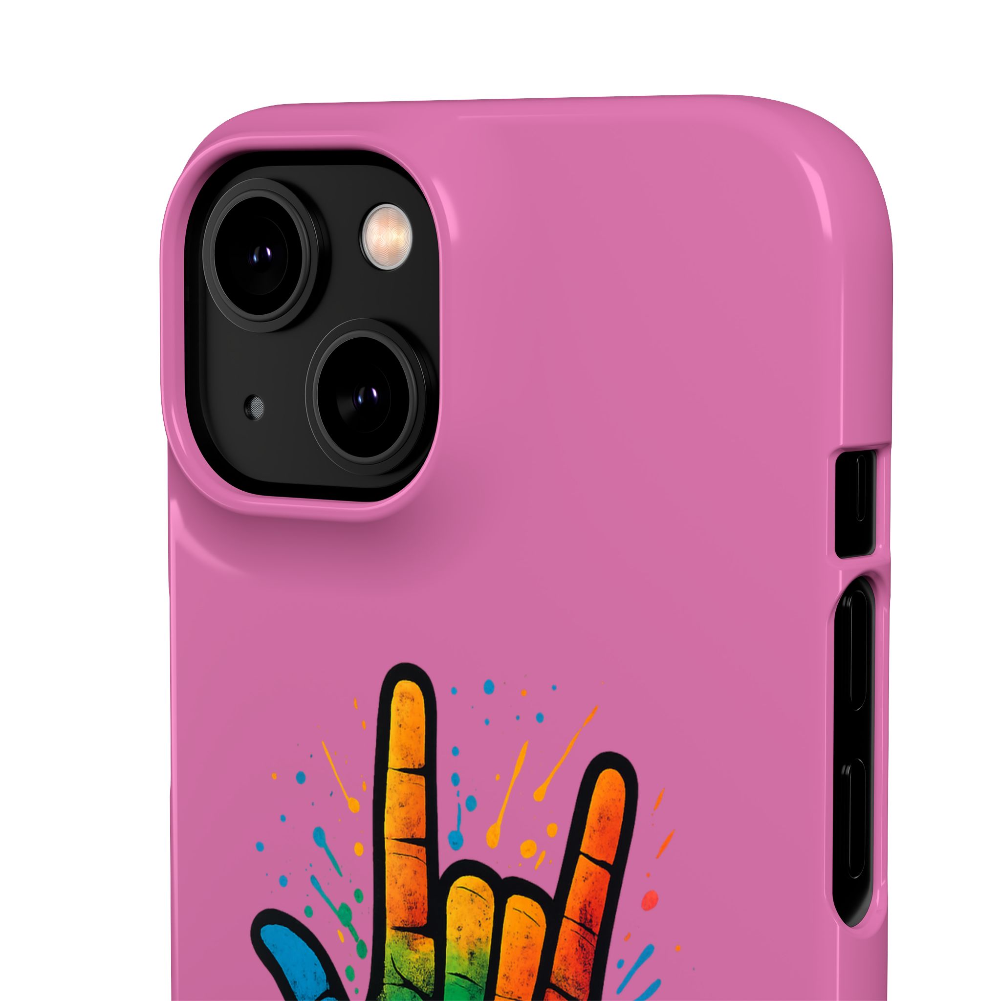 Diese lebendige Snap-Hülle ist eine Hommage an Individualität und Ausdruck, perfekt für alle, die ihre Persönlichkeit zeigen und gleichzeitig ihr Gerät schützen möchten. Diese aus robustem Polycarbonat gefertigte Hülle kombiniert Stärke mit Stil und sorgt dafür, dass Ihr Telefon aus der Masse hervorsticht. Das atemberaubende Design zeigt eine farbenfrohe Hand, die das „Ich liebe dich“-Zeichen in amerikanischer Gebärdensprache symbolisiert und eine einzigartige Botschaft der Liebe und Integration vermittelt. Egal, ob Sie Festivals oder Versammlungen besuchen oder einfach nur den Alltag genießen, dieses Snap Case verleiht Ihrem Alltag einen Hauch von Kreativität. Es ist perfekt für alle, die Wert auf Ausdruck legen, und somit ein ausgezeichnetes Geschenk für Freunde, Familie oder sich selbst, insbesondere zu Anlässen wie Geburtstagen, Feiertagen oder besonderen Feierlichkeiten im Zusammenhang mit der Gehörlosen- und Schwerhörigengemeinschaft. Die fröhliche Ausstrahlung dieser Hülle sorgt für positive Stimmung und regt Gespräche an – eine wunderbare Ergänzung zu Ihrem persönlichen Stil.