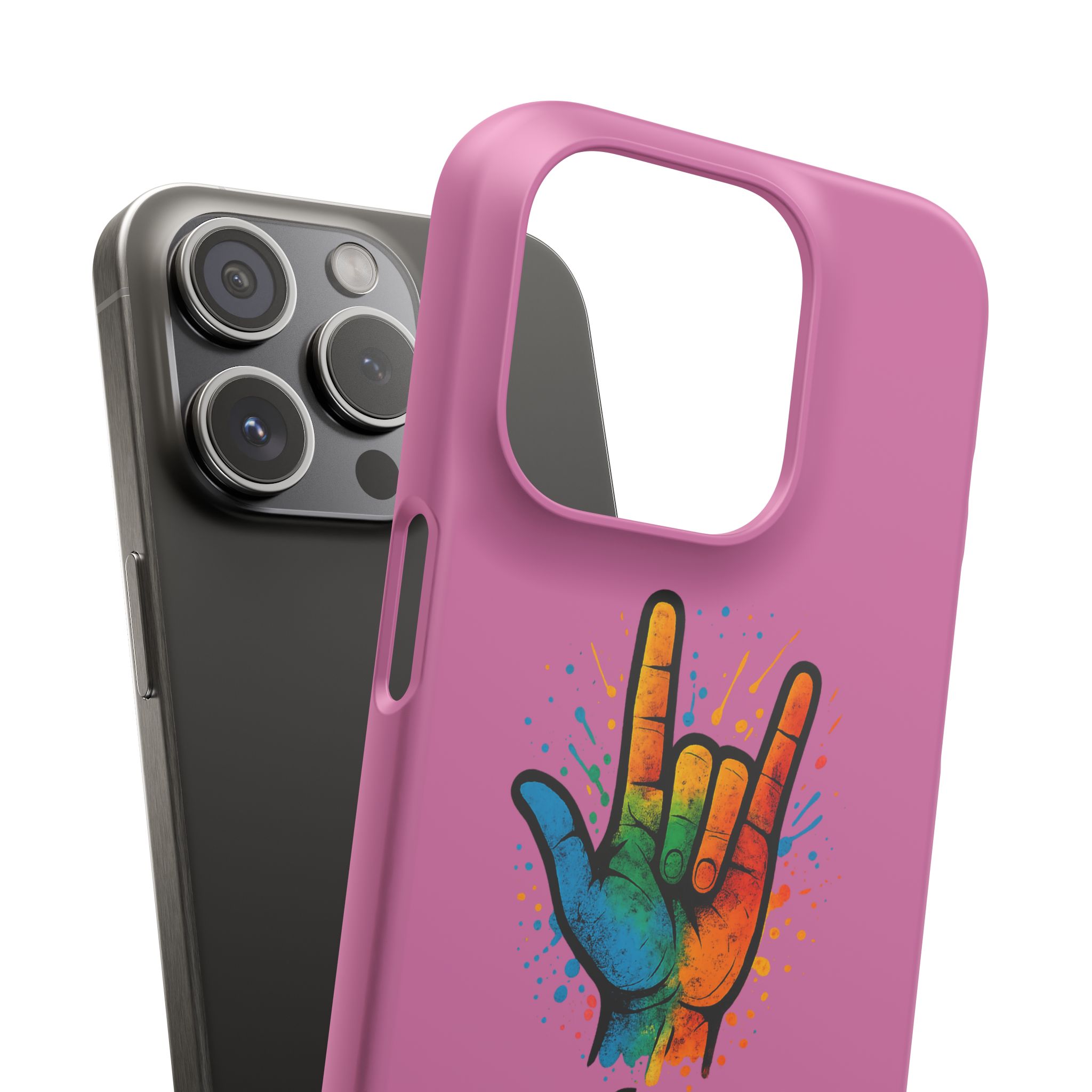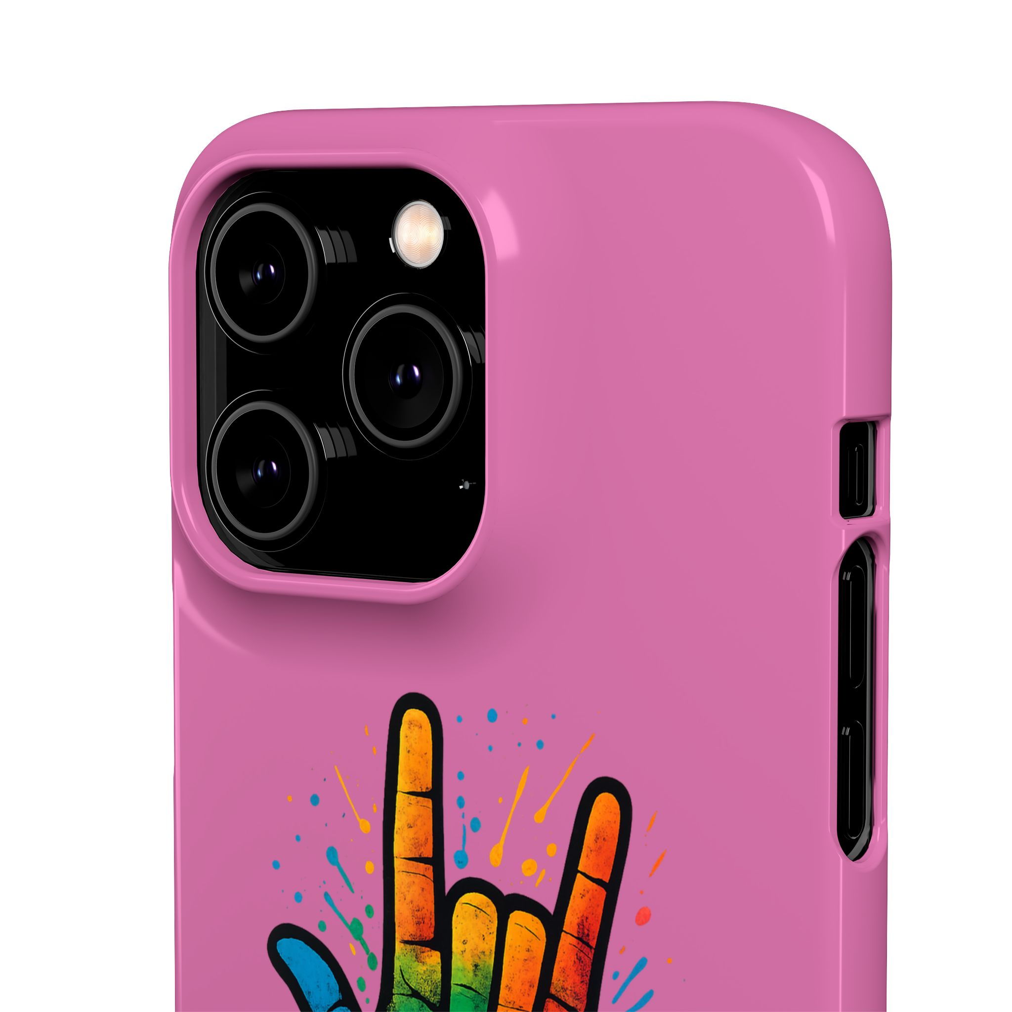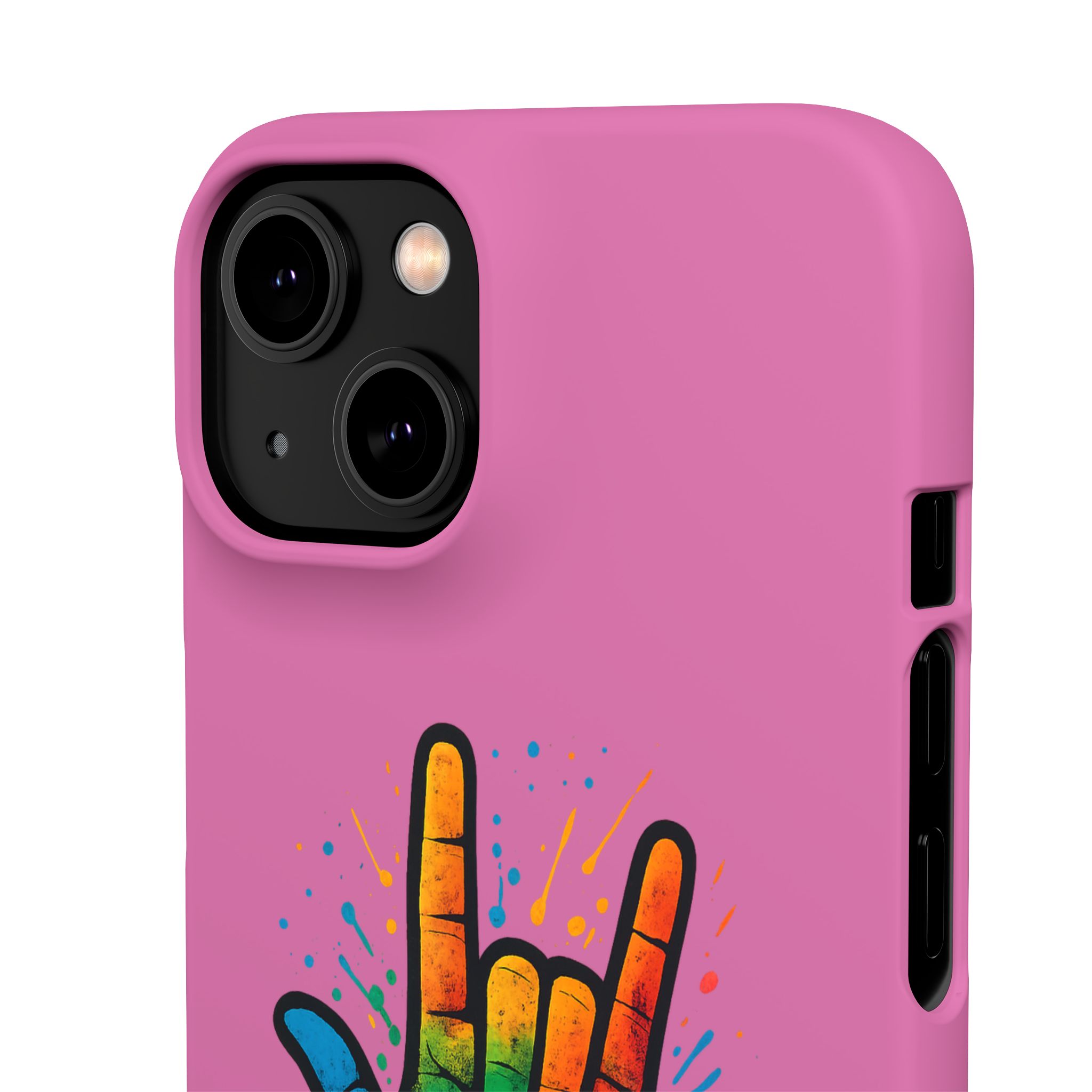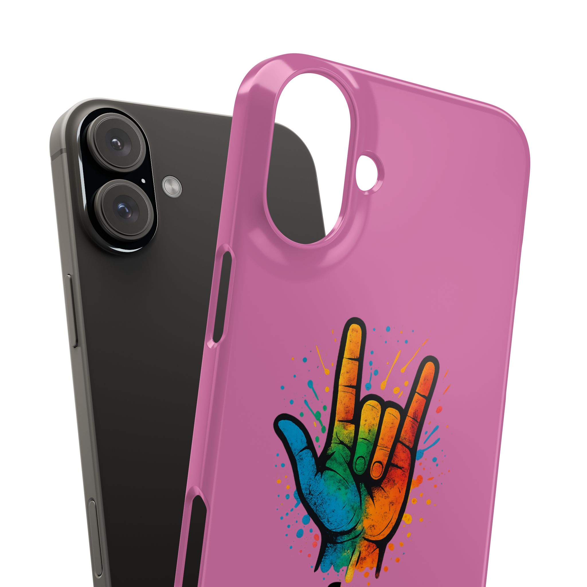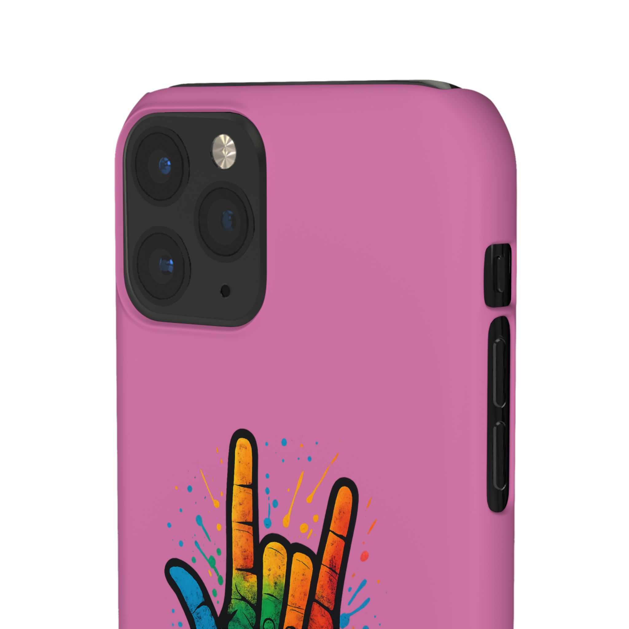 Diese lebendige Snap-Hülle ist eine Hommage an Individualität und Ausdruck, perfekt für alle, die ihre Persönlichkeit zeigen und gleichzeitig ihr Gerät schützen möchten. Diese aus robustem Polycarbonat gefertigte Hülle kombiniert Stärke mit Stil und sorgt dafür, dass Ihr Telefon aus der Masse hervorsticht. Das atemberaubende Design zeigt eine farbenfrohe Hand, die das „Ich liebe dich“-Zeichen in amerikanischer Gebärdensprache symbolisiert und eine einzigartige Botschaft der Liebe und Integration vermittelt. Egal, ob Sie Festivals oder Versammlungen besuchen oder einfach nur den Alltag genießen, dieses Snap Case verleiht Ihrem Alltag einen Hauch von Kreativität. Es ist perfekt für alle, die Wert auf Ausdruck legen, und somit ein ausgezeichnetes Geschenk für Freunde, Familie oder sich selbst, insbesondere zu Anlässen wie Geburtstagen, Feiertagen oder besonderen Feierlichkeiten im Zusammenhang mit der Gehörlosen- und Schwerhörigengemeinschaft. Die fröhliche Ausstrahlung dieser Hülle sorgt für positive Stimmung und regt Gespräche an – eine wunderbare Ergänzung zu Ihrem persönlichen Stil.