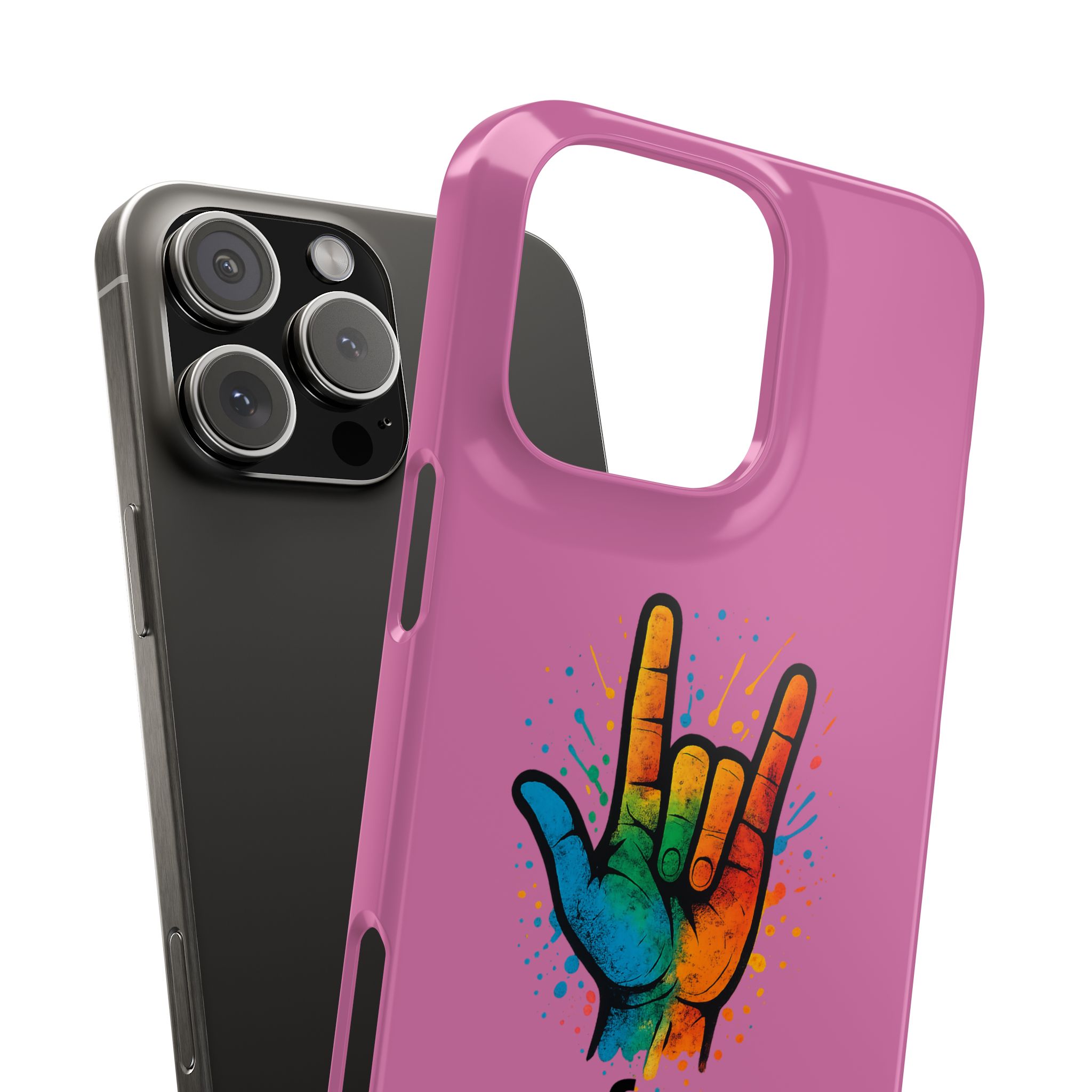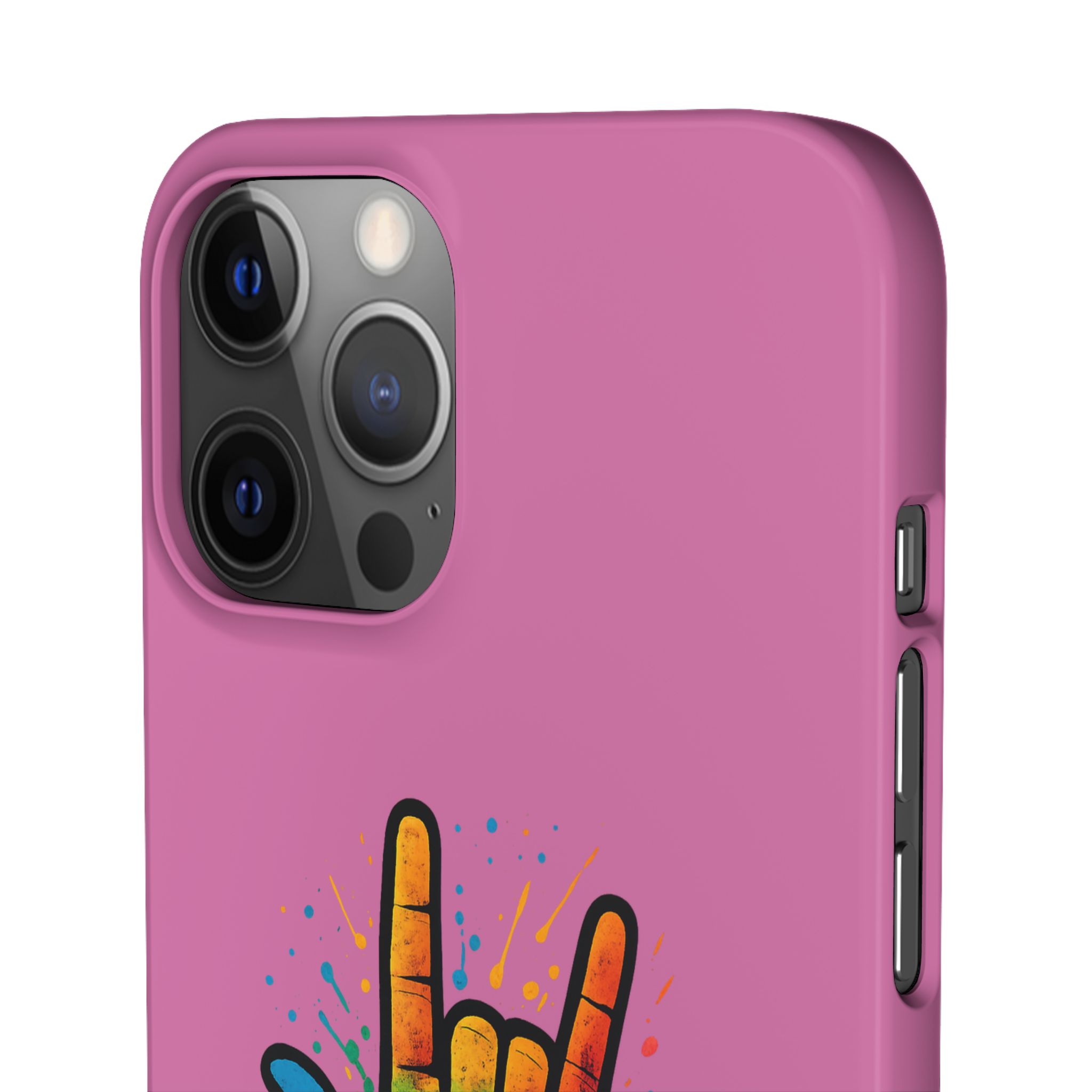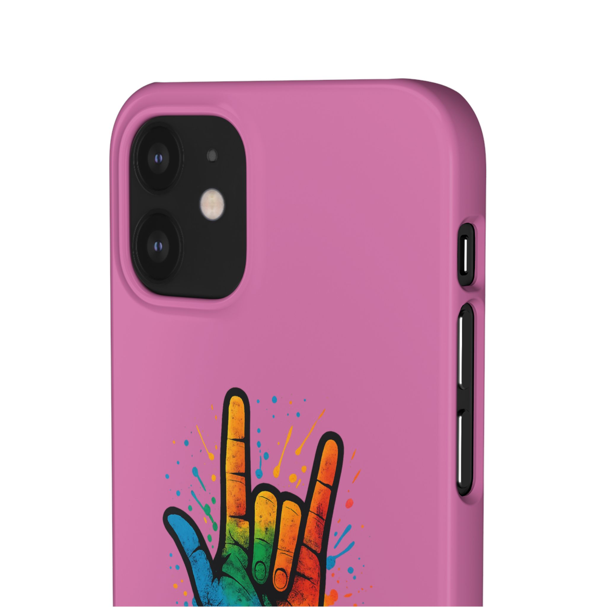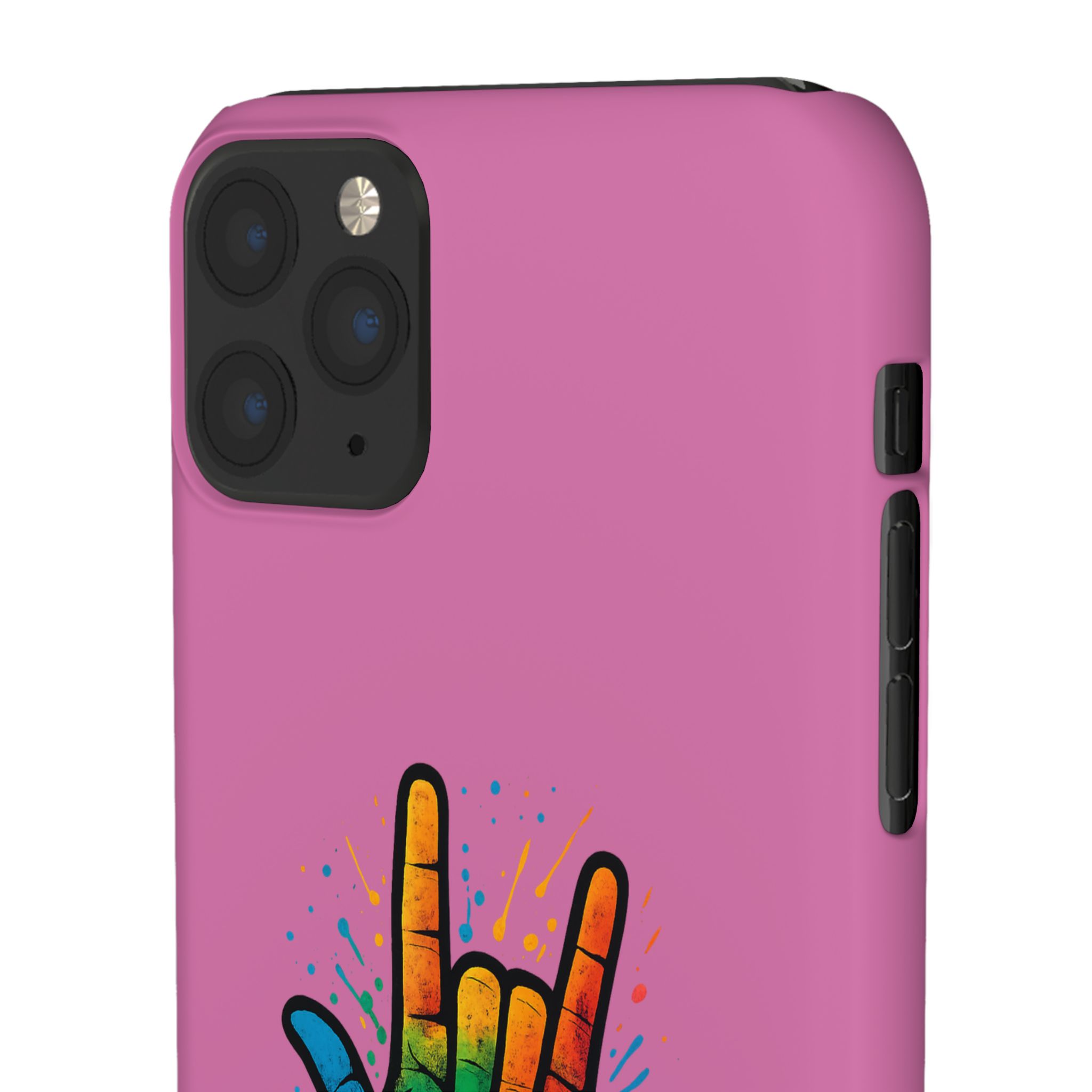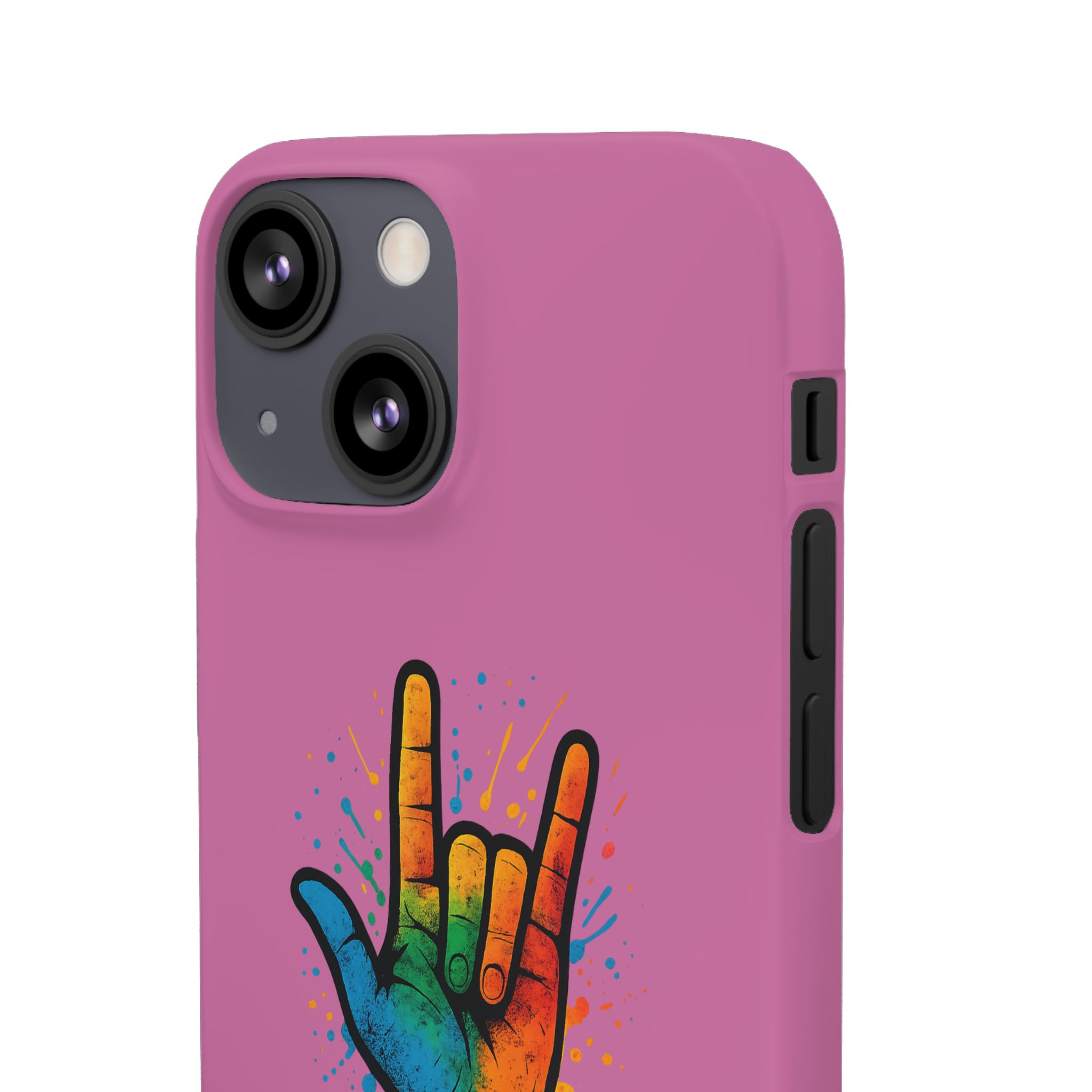 Diese lebendige Snap-Hülle ist eine Hommage an Individualität und Ausdruck, perfekt für alle, die ihre Persönlichkeit zeigen und gleichzeitig ihr Gerät schützen möchten. Diese aus robustem Polycarbonat gefertigte Hülle kombiniert Stärke mit Stil und sorgt dafür, dass Ihr Telefon aus der Masse hervorsticht. Das atemberaubende Design zeigt eine farbenfrohe Hand, die das „Ich liebe dich“-Zeichen in amerikanischer Gebärdensprache symbolisiert und eine einzigartige Botschaft der Liebe und Integration vermittelt. Egal, ob Sie Festivals oder Versammlungen besuchen oder einfach nur den Alltag genießen, dieses Snap Case verleiht Ihrem Alltag einen Hauch von Kreativität. Es ist perfekt für alle, die Wert auf Ausdruck legen, und somit ein ausgezeichnetes Geschenk für Freunde, Familie oder sich selbst, insbesondere zu Anlässen wie Geburtstagen, Feiertagen oder besonderen Feierlichkeiten im Zusammenhang mit der Gehörlosen- und Schwerhörigengemeinschaft. Die fröhliche Ausstrahlung dieser Hülle sorgt für positive Stimmung und regt Gespräche an – eine wunderbare Ergänzung zu Ihrem persönlichen Stil.