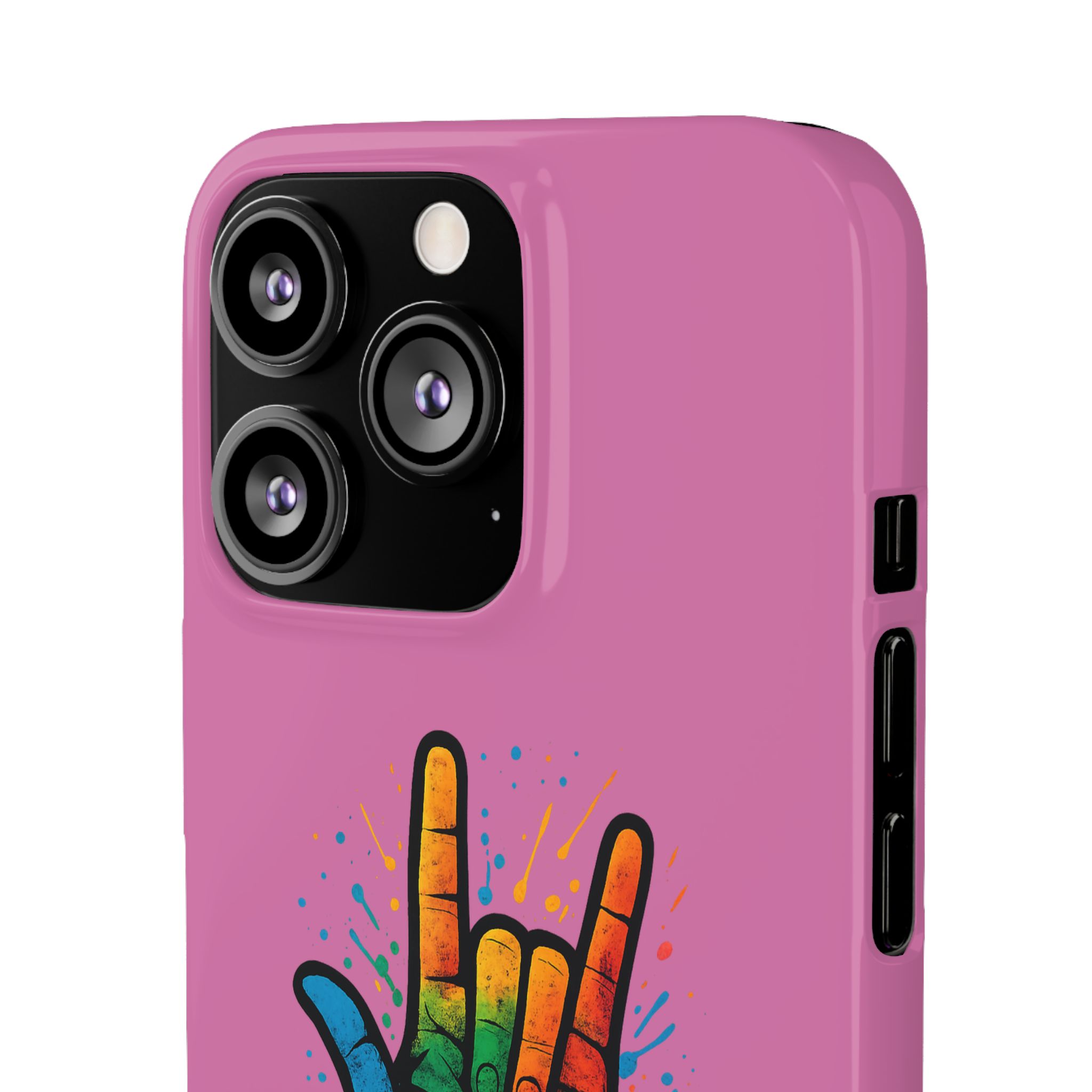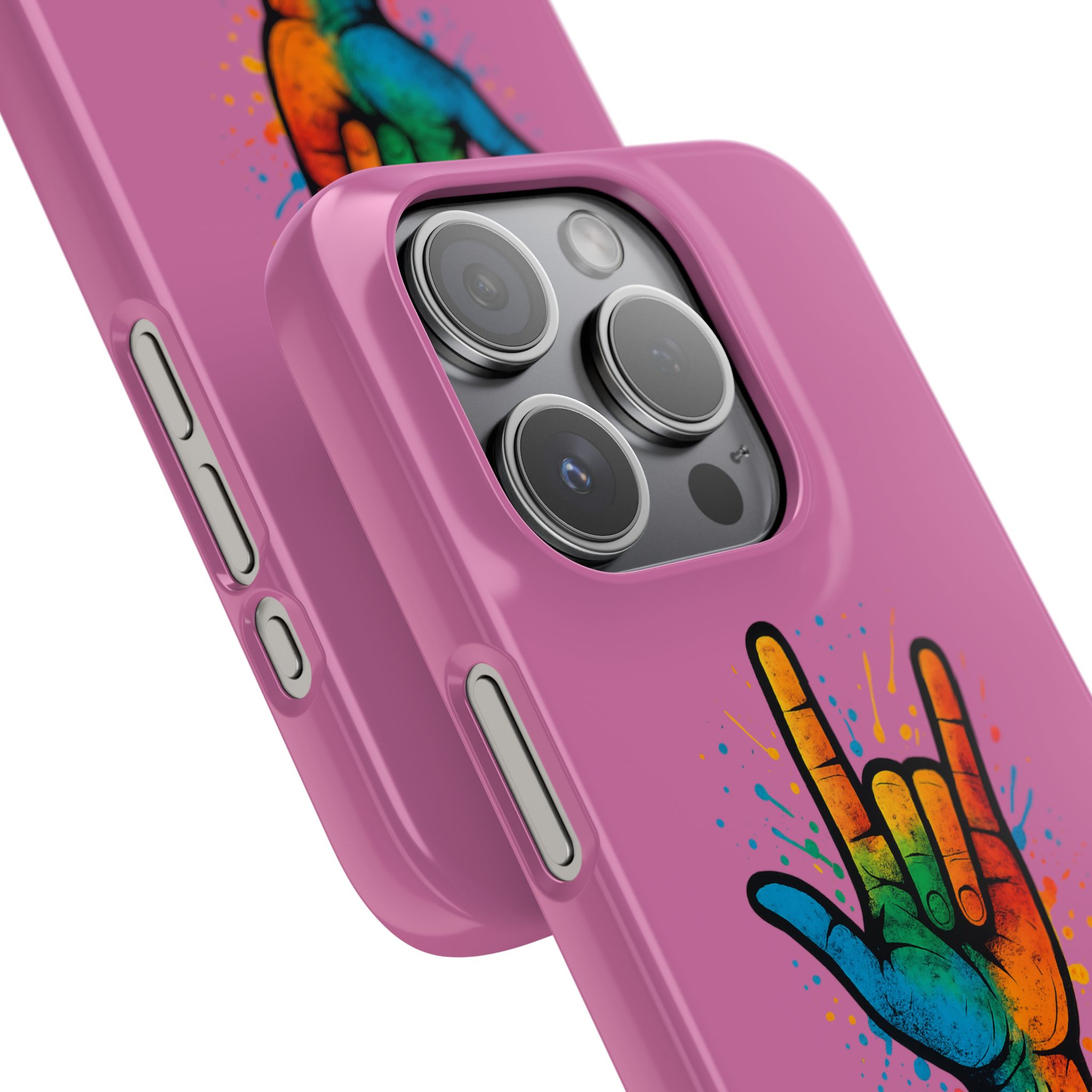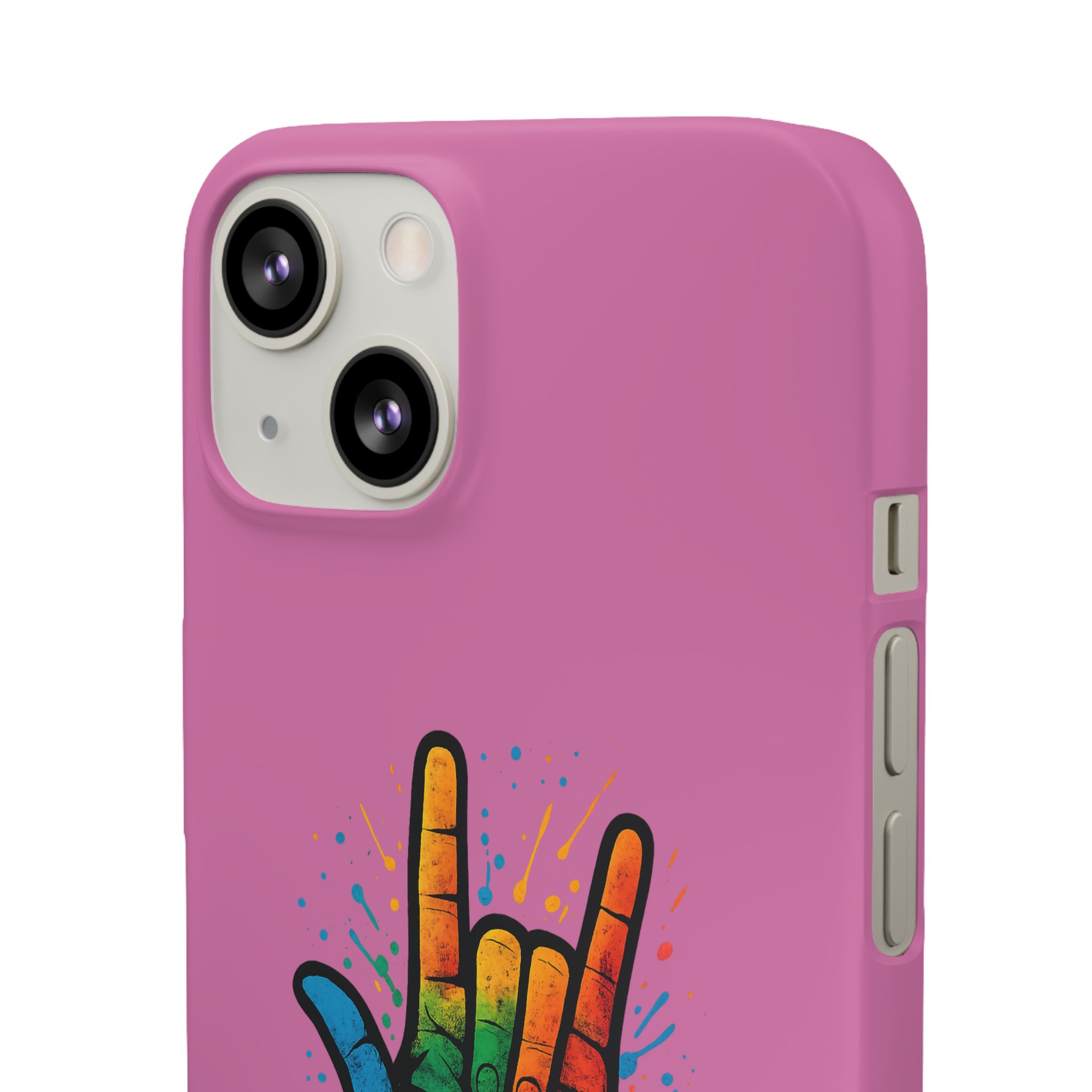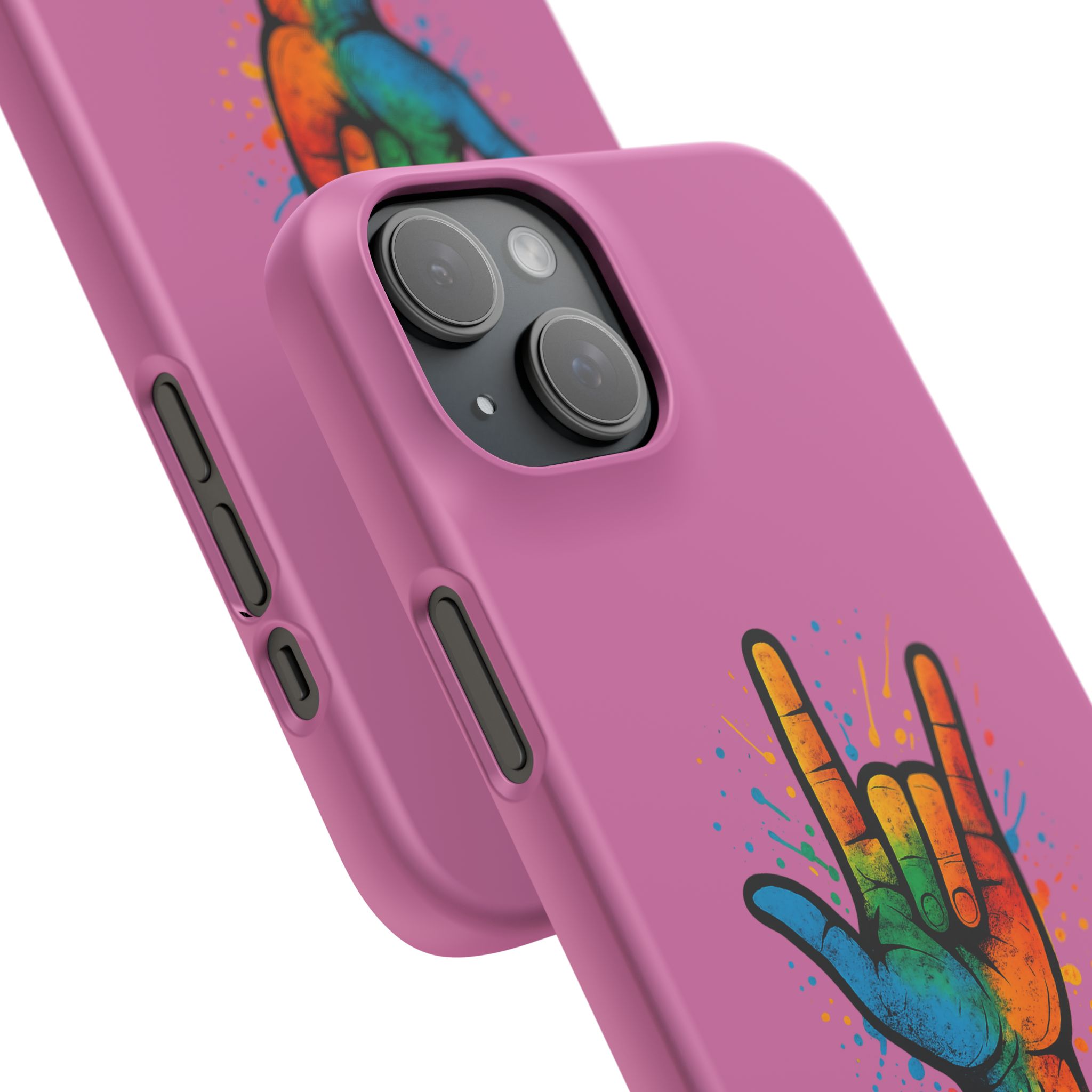 Diese lebendige Snap-Hülle ist eine Hommage an Individualität und Ausdruck, perfekt für alle, die ihre Persönlichkeit zeigen und gleichzeitig ihr Gerät schützen möchten. Diese aus robustem Polycarbonat gefertigte Hülle kombiniert Stärke mit Stil und sorgt dafür, dass Ihr Telefon aus der Masse hervorsticht. Das atemberaubende Design zeigt eine farbenfrohe Hand, die das „Ich liebe dich“-Zeichen in amerikanischer Gebärdensprache symbolisiert und eine einzigartige Botschaft der Liebe und Integration vermittelt. Egal, ob Sie Festivals oder Versammlungen besuchen oder einfach nur den Alltag genießen, dieses Snap Case verleiht Ihrem Alltag einen Hauch von Kreativität. Es ist perfekt für alle, die Wert auf Ausdruck legen, und somit ein ausgezeichnetes Geschenk für Freunde, Familie oder sich selbst, insbesondere zu Anlässen wie Geburtstagen, Feiertagen oder besonderen Feierlichkeiten im Zusammenhang mit der Gehörlosen- und Schwerhörigengemeinschaft. Die fröhliche Ausstrahlung dieser Hülle sorgt für positive Stimmung und regt Gespräche an – eine wunderbare Ergänzung zu Ihrem persönlichen Stil.