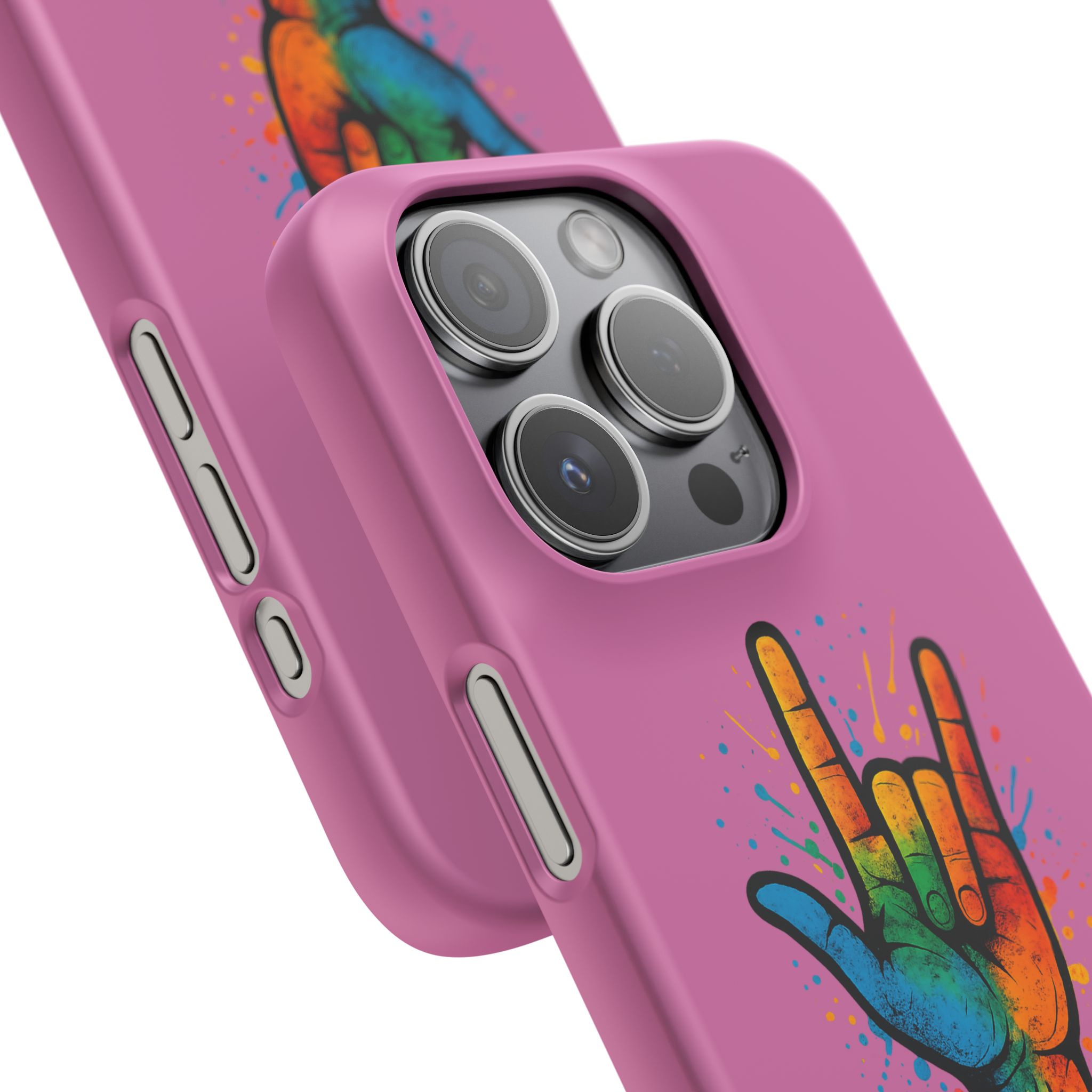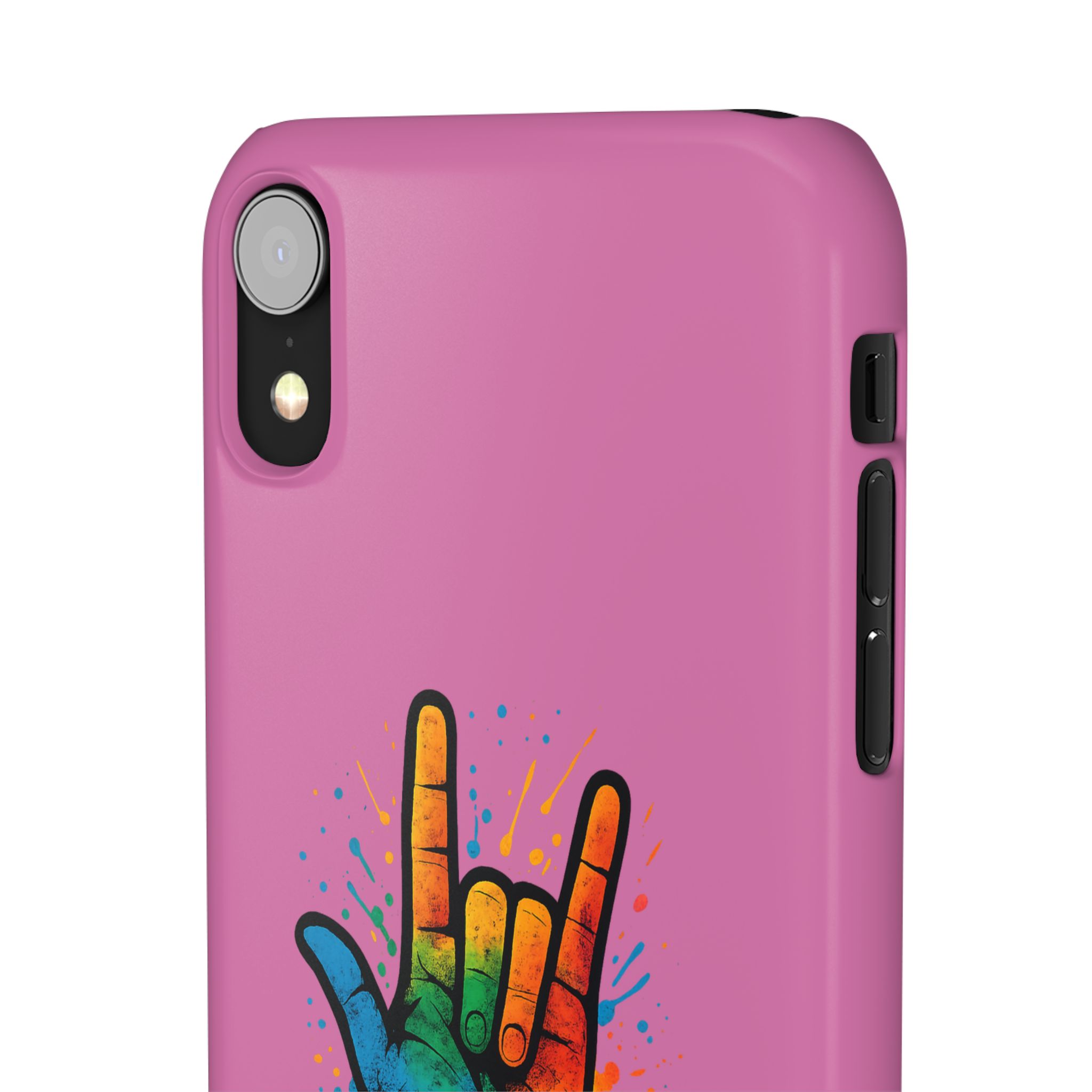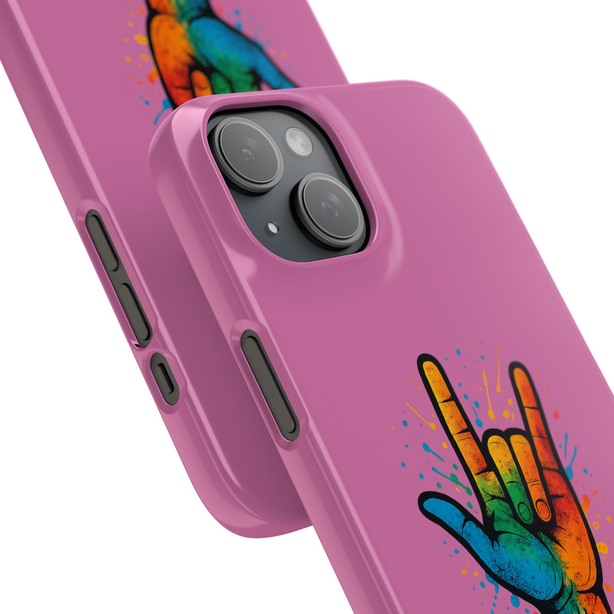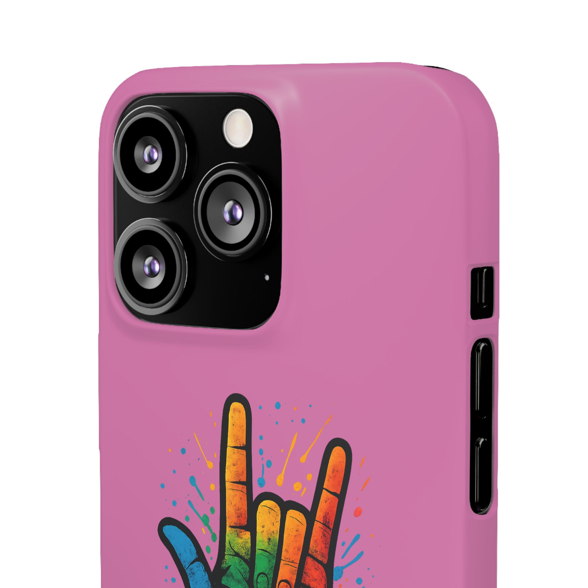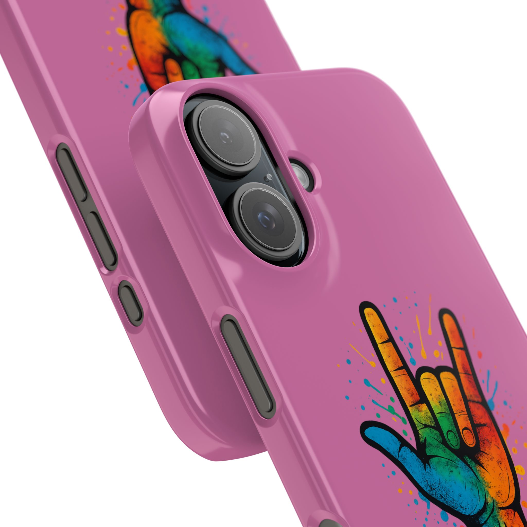 Diese lebendige Snap-Hülle ist eine Hommage an Individualität und Ausdruck, perfekt für alle, die ihre Persönlichkeit zeigen und gleichzeitig ihr Gerät schützen möchten. Diese aus robustem Polycarbonat gefertigte Hülle kombiniert Stärke mit Stil und sorgt dafür, dass Ihr Telefon aus der Masse hervorsticht. Das atemberaubende Design zeigt eine farbenfrohe Hand, die das „Ich liebe dich“-Zeichen in amerikanischer Gebärdensprache symbolisiert und eine einzigartige Botschaft der Liebe und Integration vermittelt. Egal, ob Sie Festivals oder Versammlungen besuchen oder einfach nur den Alltag genießen, dieses Snap Case verleiht Ihrem Alltag einen Hauch von Kreativität. Es ist perfekt für alle, die Wert auf Ausdruck legen, und somit ein ausgezeichnetes Geschenk für Freunde, Familie oder sich selbst, insbesondere zu Anlässen wie Geburtstagen, Feiertagen oder besonderen Feierlichkeiten im Zusammenhang mit der Gehörlosen- und Schwerhörigengemeinschaft. Die fröhliche Ausstrahlung dieser Hülle sorgt für positive Stimmung und regt Gespräche an – eine wunderbare Ergänzung zu Ihrem persönlichen Stil.