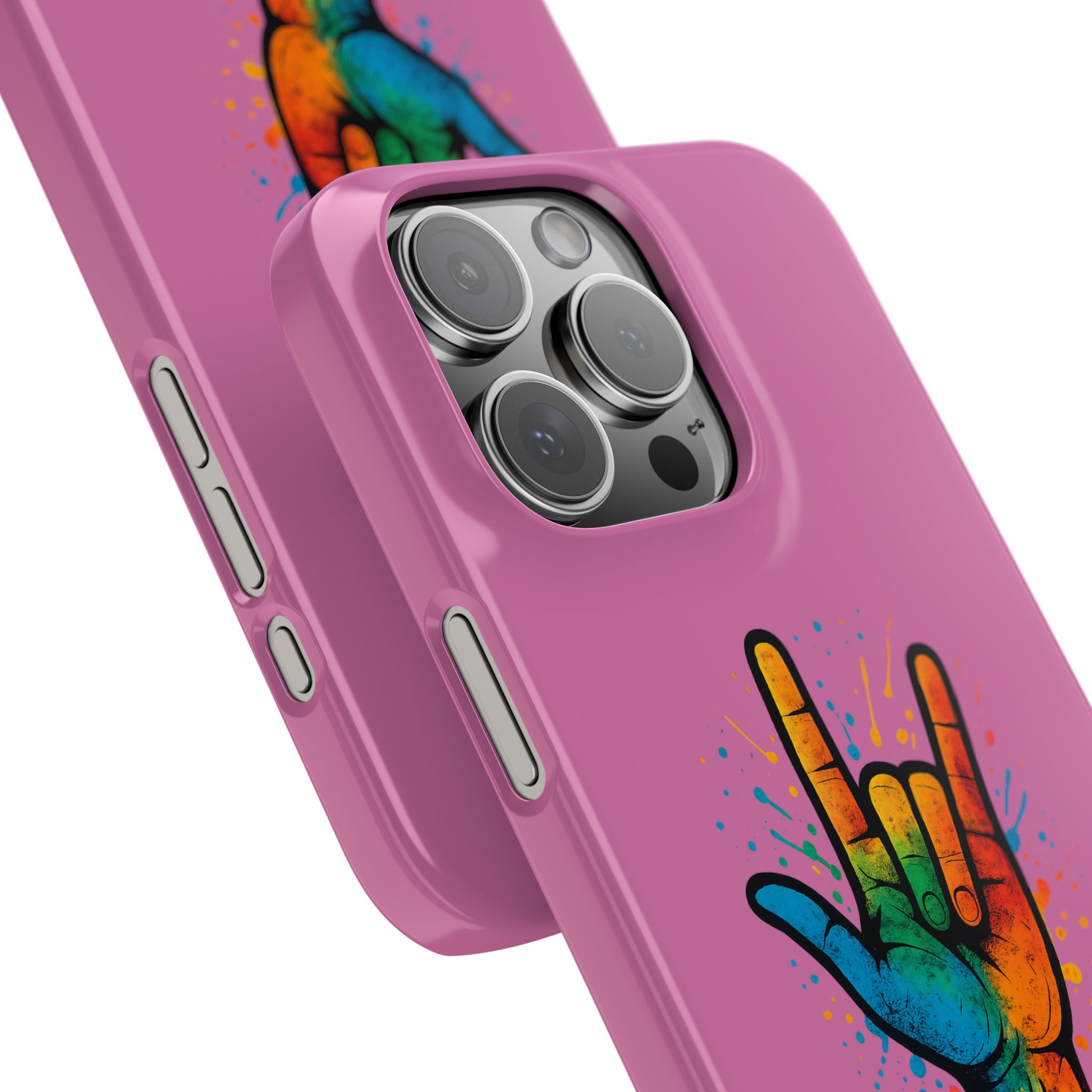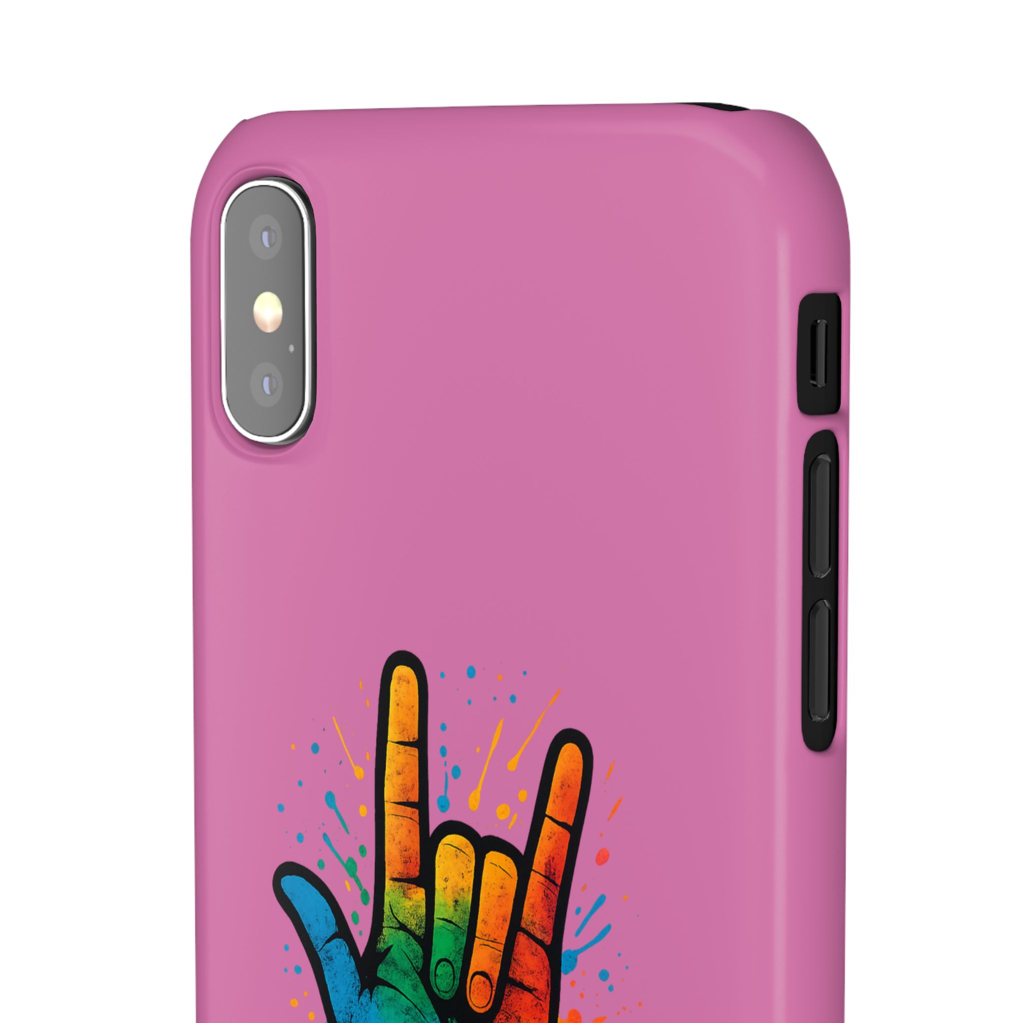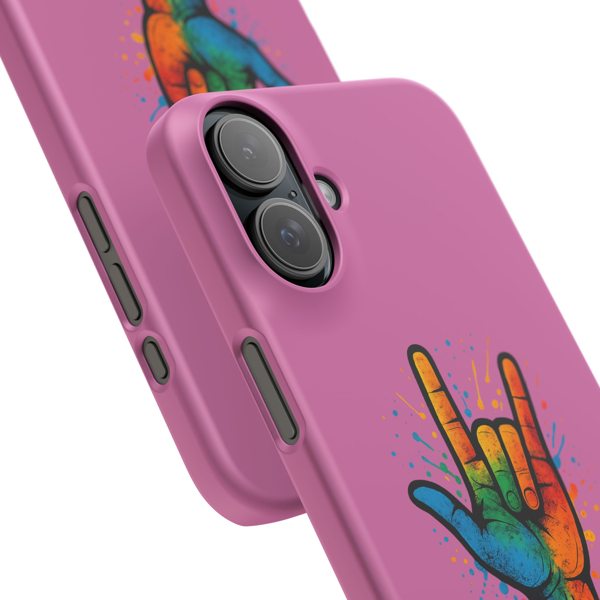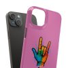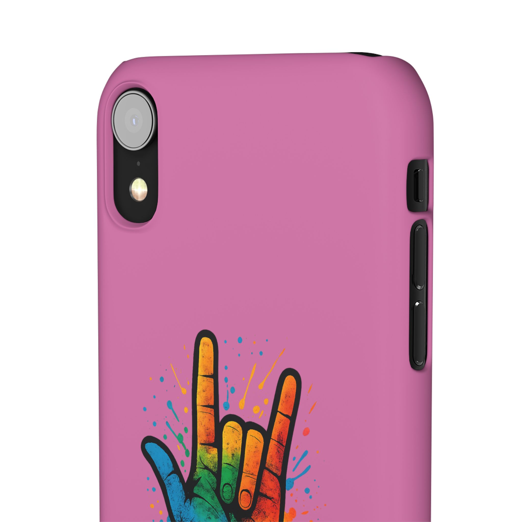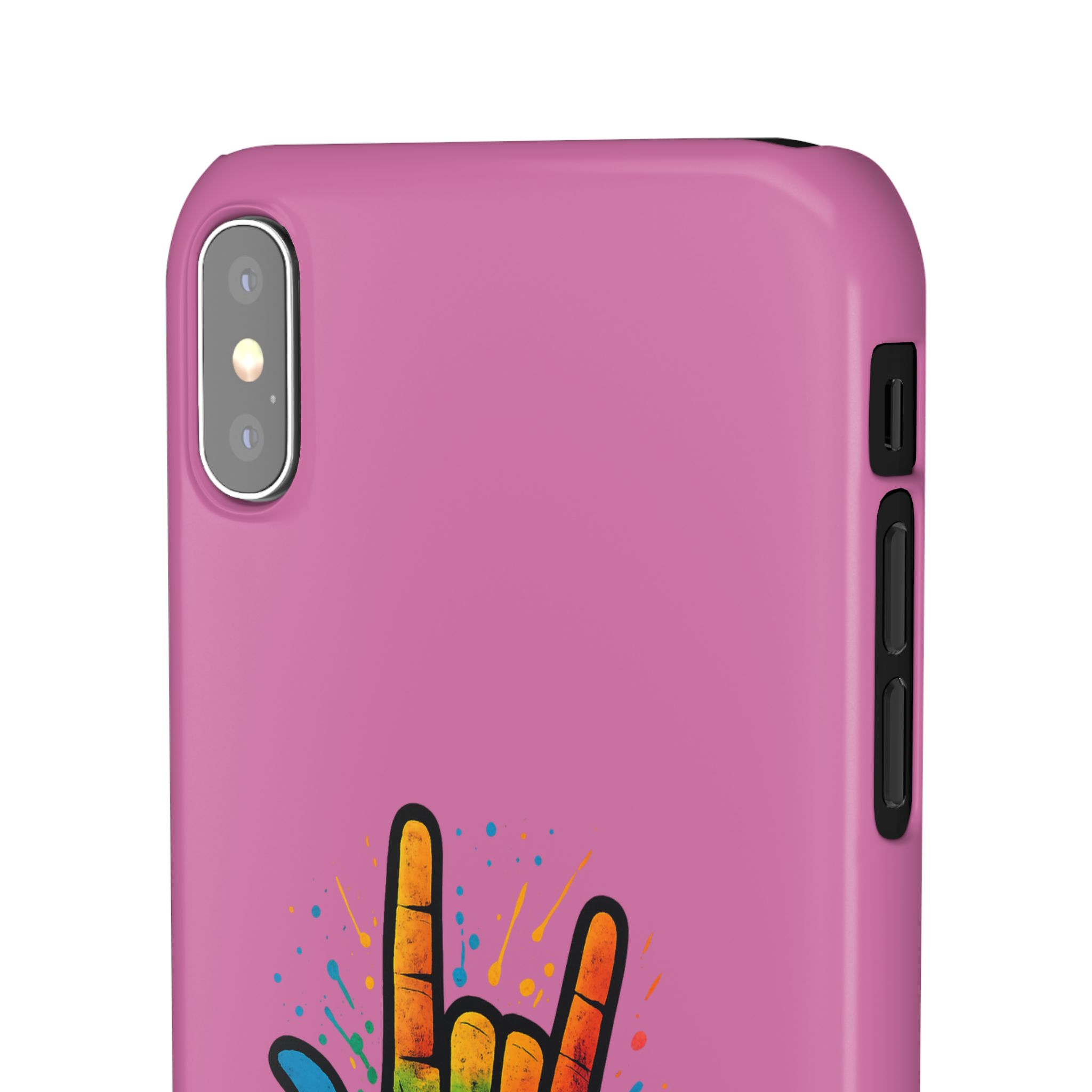 Diese lebendige Snap-Hülle ist eine Hommage an Individualität und Ausdruck, perfekt für alle, die ihre Persönlichkeit zeigen und gleichzeitig ihr Gerät schützen möchten. Diese aus robustem Polycarbonat gefertigte Hülle kombiniert Stärke mit Stil und sorgt dafür, dass Ihr Telefon aus der Masse hervorsticht. Das atemberaubende Design zeigt eine farbenfrohe Hand, die das „Ich liebe dich“-Zeichen in amerikanischer Gebärdensprache symbolisiert und eine einzigartige Botschaft der Liebe und Integration vermittelt. Egal, ob Sie Festivals oder Versammlungen besuchen oder einfach nur den Alltag genießen, dieses Snap Case verleiht Ihrem Alltag einen Hauch von Kreativität. Es ist perfekt für alle, die Wert auf Ausdruck legen, und somit ein ausgezeichnetes Geschenk für Freunde, Familie oder sich selbst, insbesondere zu Anlässen wie Geburtstagen, Feiertagen oder besonderen Feierlichkeiten im Zusammenhang mit der Gehörlosen- und Schwerhörigengemeinschaft. Die fröhliche Ausstrahlung dieser Hülle sorgt für positive Stimmung und regt Gespräche an – eine wunderbare Ergänzung zu Ihrem persönlichen Stil.