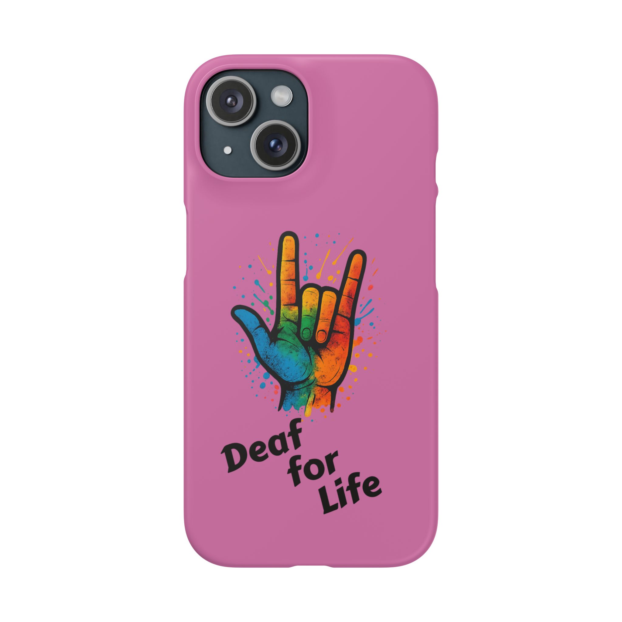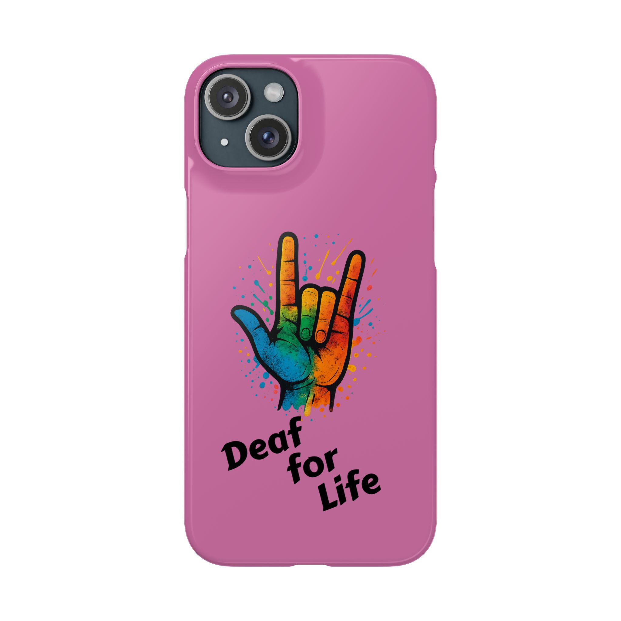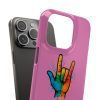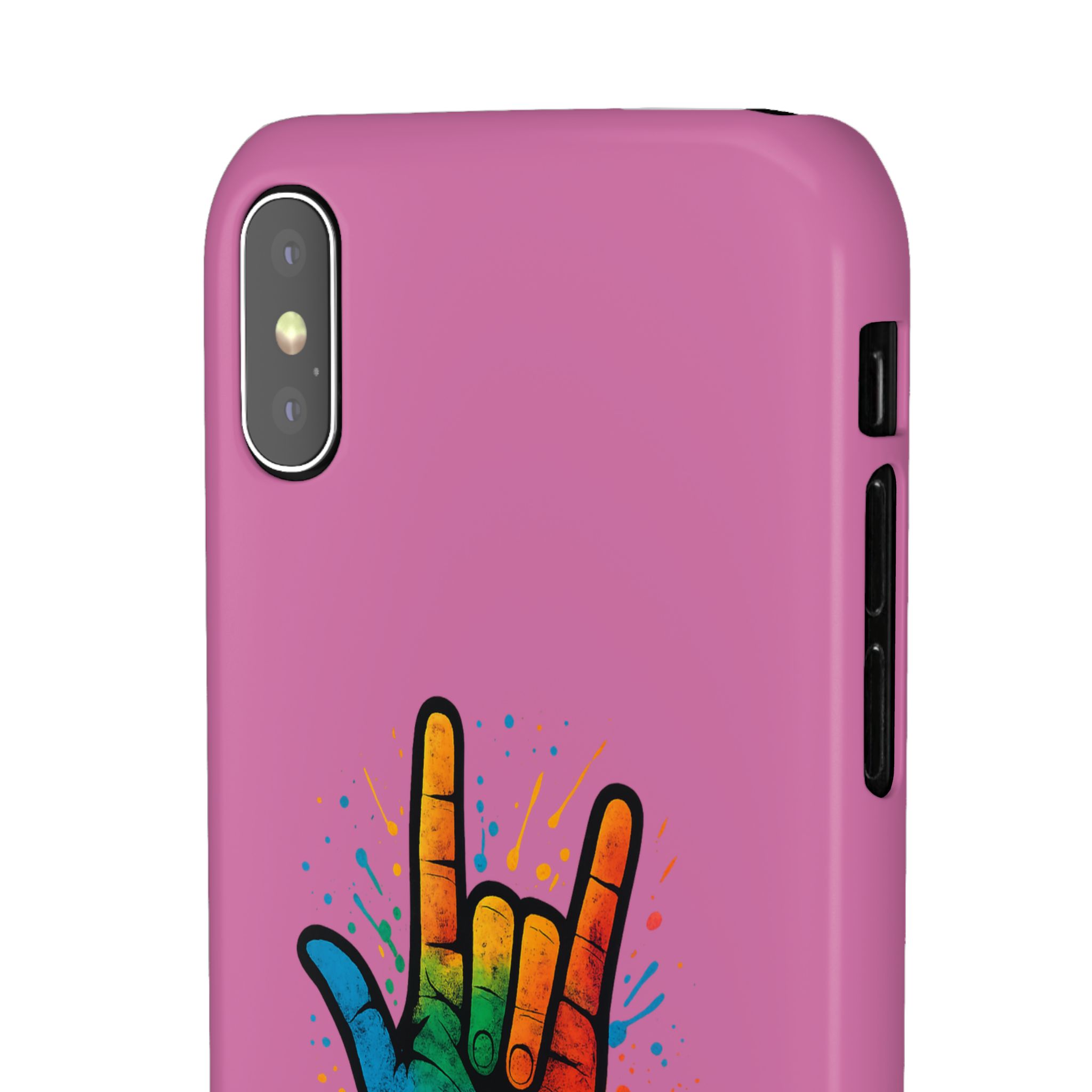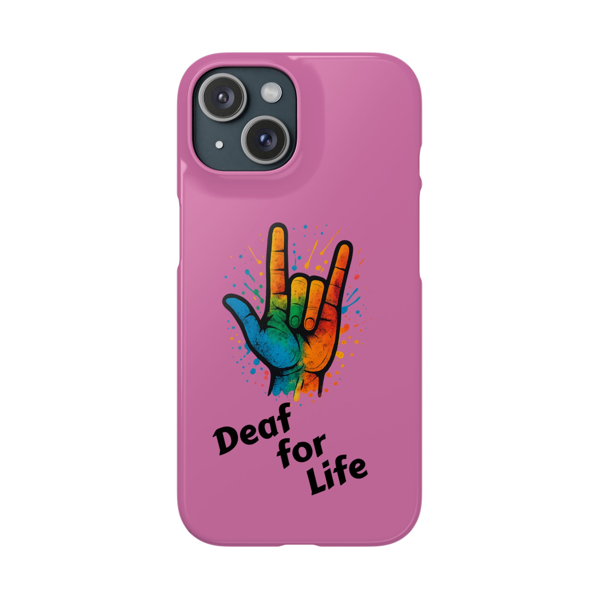 Diese lebendige Snap-Hülle ist eine Hommage an Individualität und Ausdruck, perfekt für alle, die ihre Persönlichkeit zeigen und gleichzeitig ihr Gerät schützen möchten. Diese aus robustem Polycarbonat gefertigte Hülle kombiniert Stärke mit Stil und sorgt dafür, dass Ihr Telefon aus der Masse hervorsticht. Das atemberaubende Design zeigt eine farbenfrohe Hand, die das „Ich liebe dich“-Zeichen in amerikanischer Gebärdensprache symbolisiert und eine einzigartige Botschaft der Liebe und Integration vermittelt. Egal, ob Sie Festivals oder Versammlungen besuchen oder einfach nur den Alltag genießen, dieses Snap Case verleiht Ihrem Alltag einen Hauch von Kreativität. Es ist perfekt für alle, die Wert auf Ausdruck legen, und somit ein ausgezeichnetes Geschenk für Freunde, Familie oder sich selbst, insbesondere zu Anlässen wie Geburtstagen, Feiertagen oder besonderen Feierlichkeiten im Zusammenhang mit der Gehörlosen- und Schwerhörigengemeinschaft. Die fröhliche Ausstrahlung dieser Hülle sorgt für positive Stimmung und regt Gespräche an – eine wunderbare Ergänzung zu Ihrem persönlichen Stil.