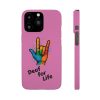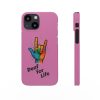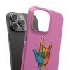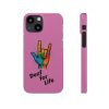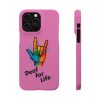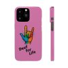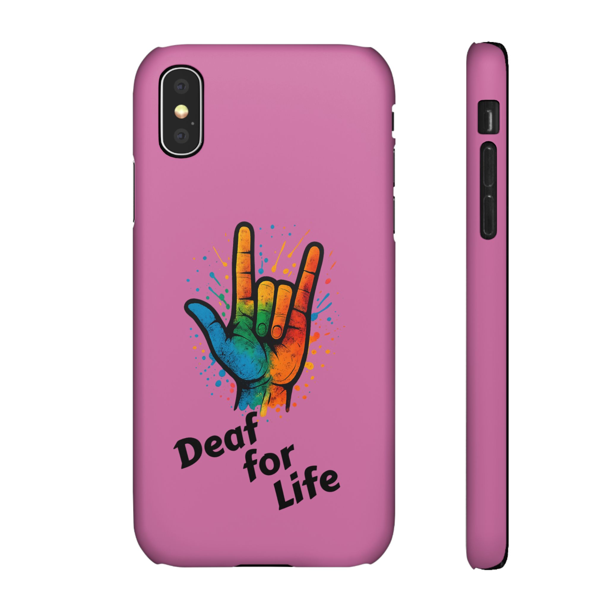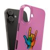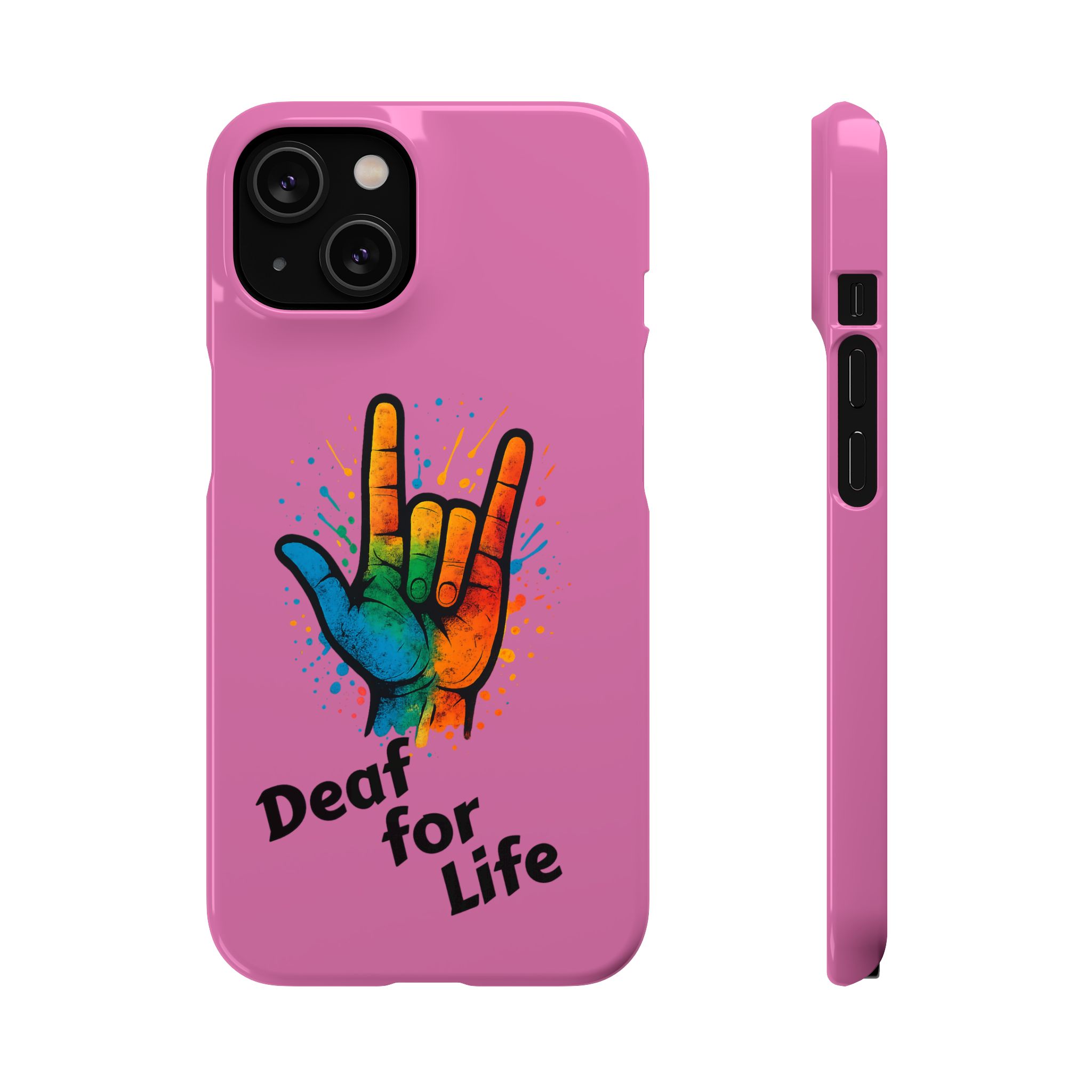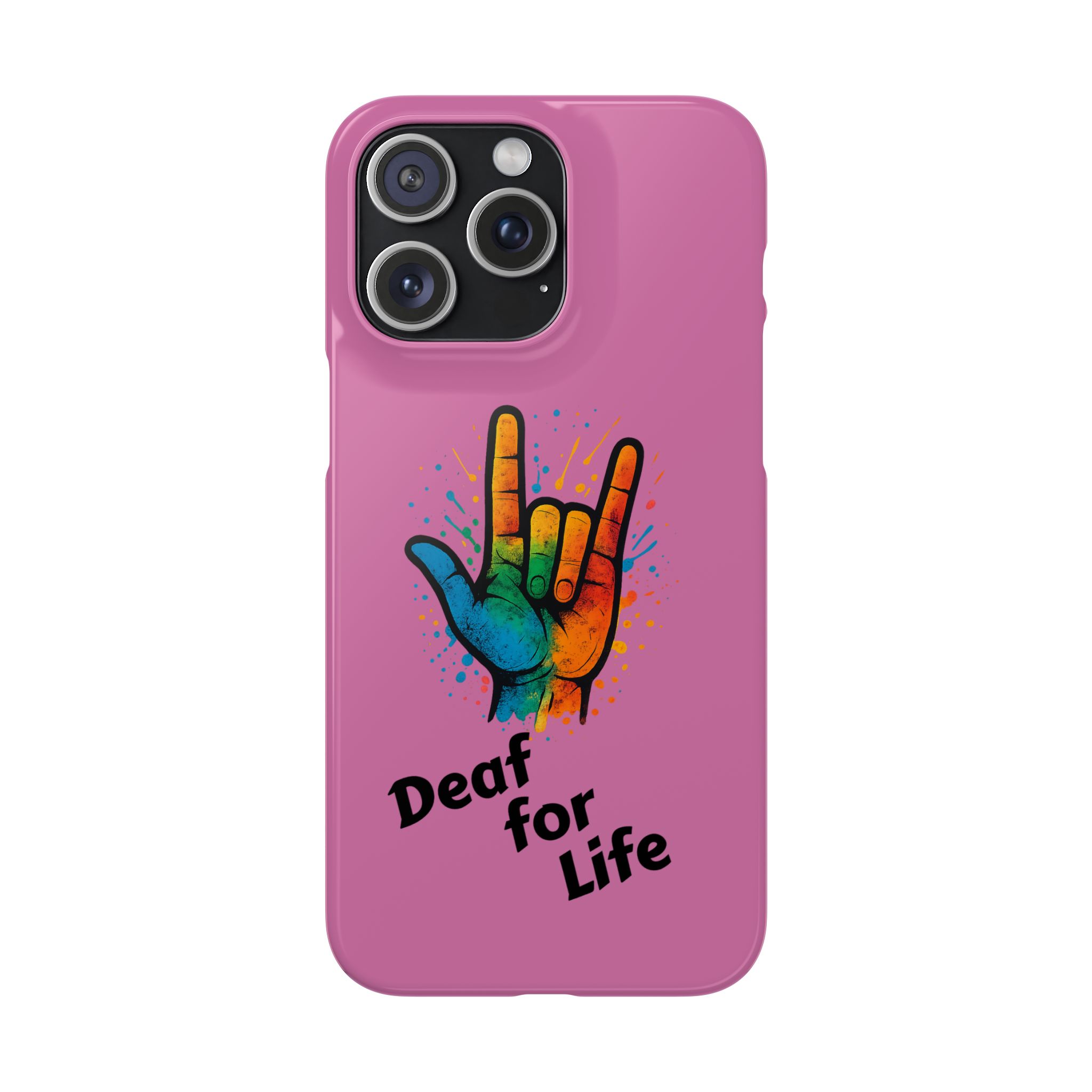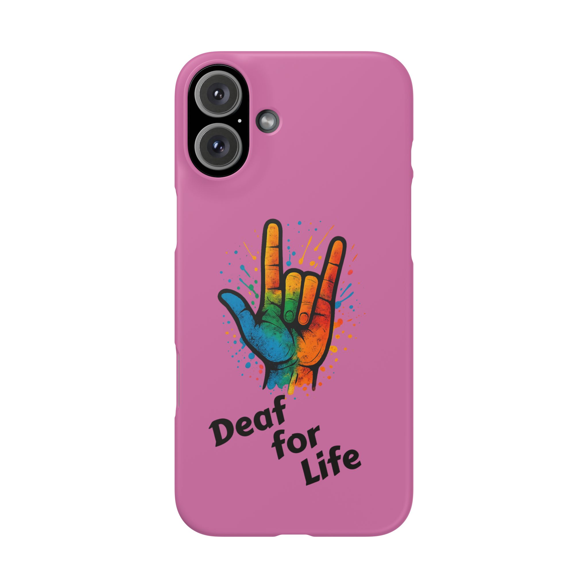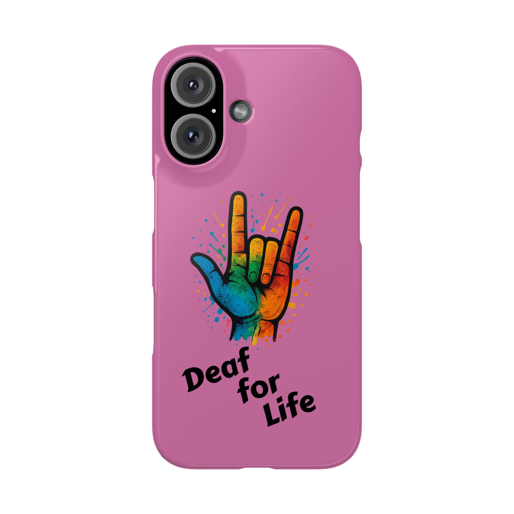 Diese lebendige Snap-Hülle ist eine Hommage an Individualität und Ausdruck, perfekt für alle, die ihre Persönlichkeit zeigen und gleichzeitig ihr Gerät schützen möchten. Diese aus robustem Polycarbonat gefertigte Hülle kombiniert Stärke mit Stil und sorgt dafür, dass Ihr Telefon aus der Masse hervorsticht. Das atemberaubende Design zeigt eine farbenfrohe Hand, die das „Ich liebe dich“-Zeichen in amerikanischer Gebärdensprache symbolisiert und eine einzigartige Botschaft der Liebe und Integration vermittelt. Egal, ob Sie Festivals oder Versammlungen besuchen oder einfach nur den Alltag genießen, dieses Snap Case verleiht Ihrem Alltag einen Hauch von Kreativität. Es ist perfekt für alle, die Wert auf Ausdruck legen, und somit ein ausgezeichnetes Geschenk für Freunde, Familie oder sich selbst, insbesondere zu Anlässen wie Geburtstagen, Feiertagen oder besonderen Feierlichkeiten im Zusammenhang mit der Gehörlosen- und Schwerhörigengemeinschaft. Die fröhliche Ausstrahlung dieser Hülle sorgt für positive Stimmung und regt Gespräche an – eine wunderbare Ergänzung zu Ihrem persönlichen Stil.