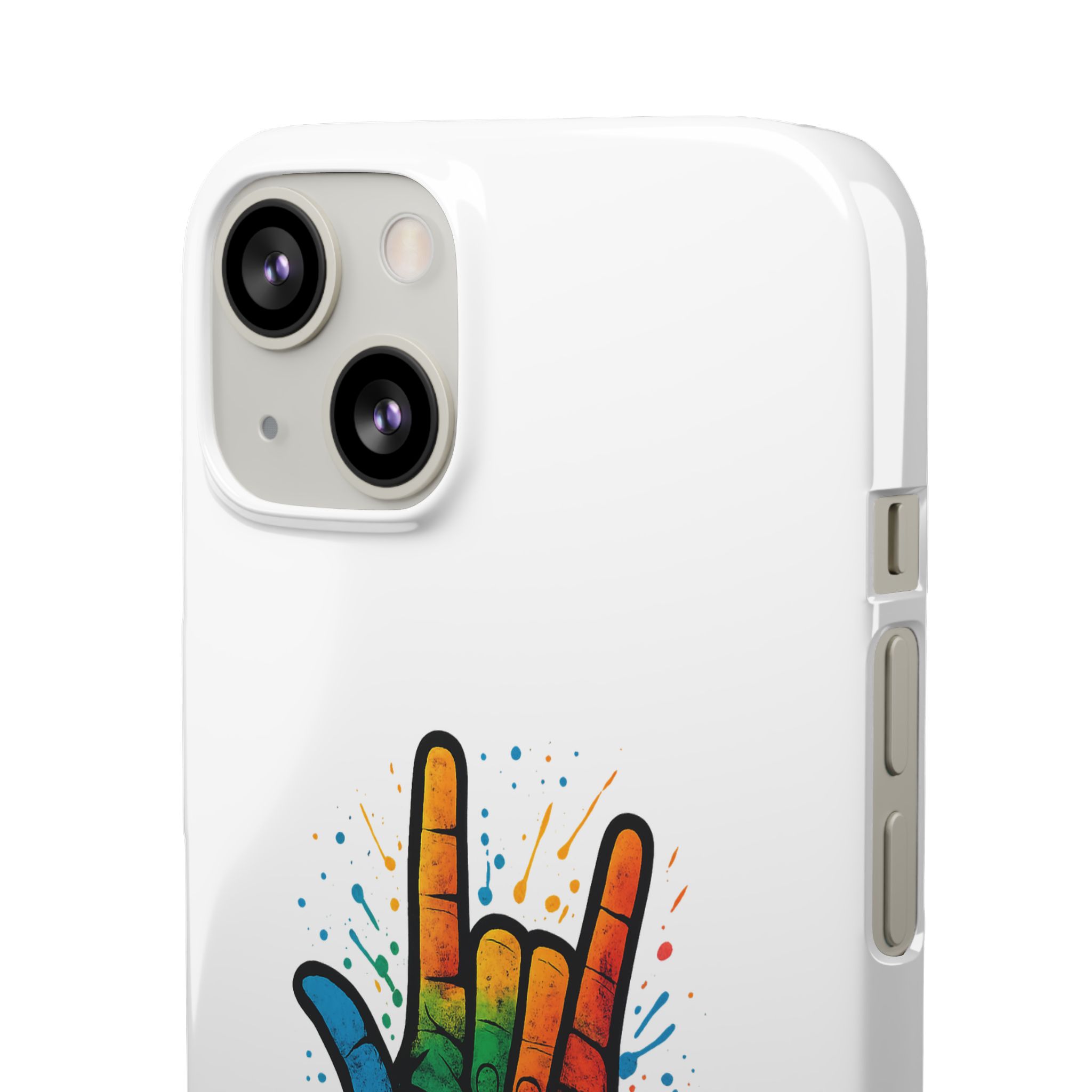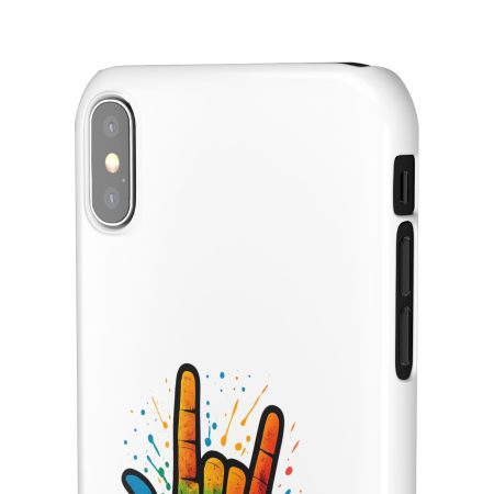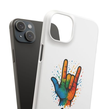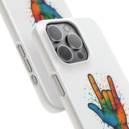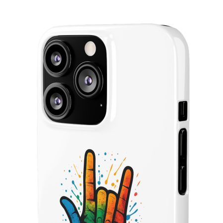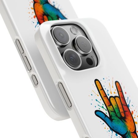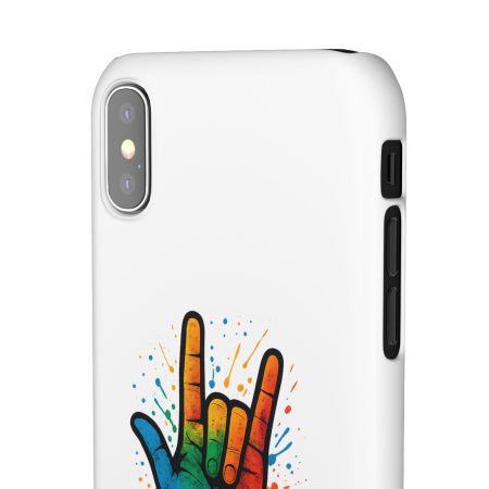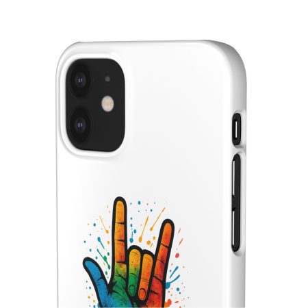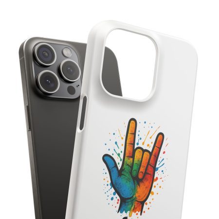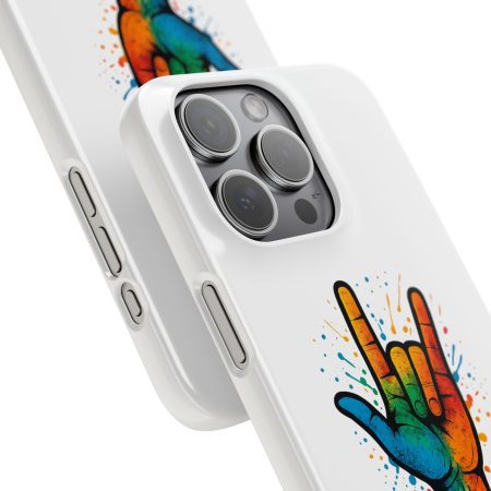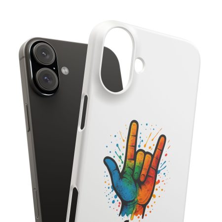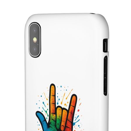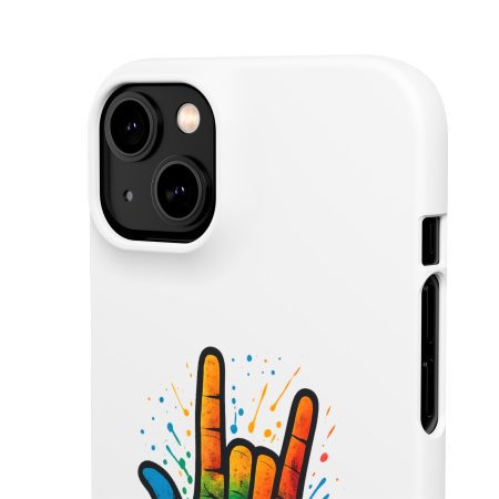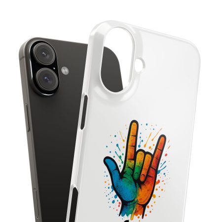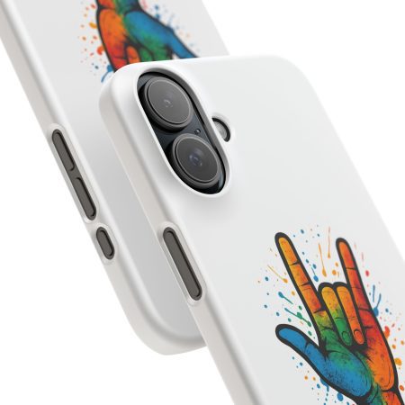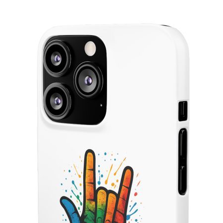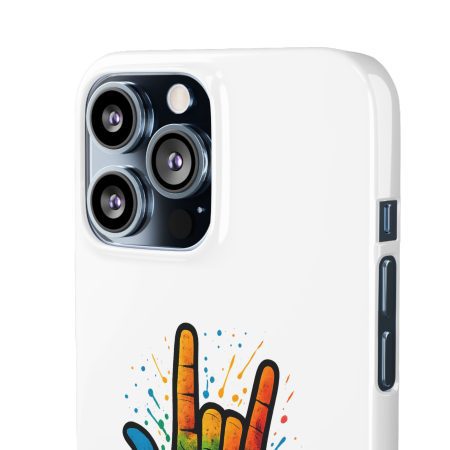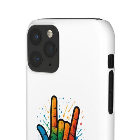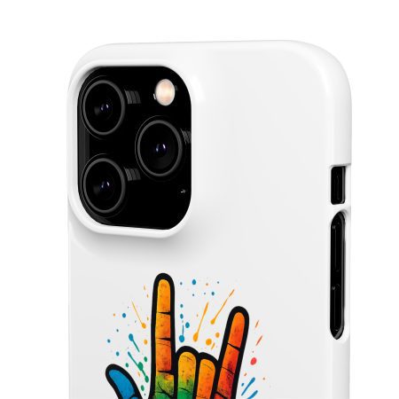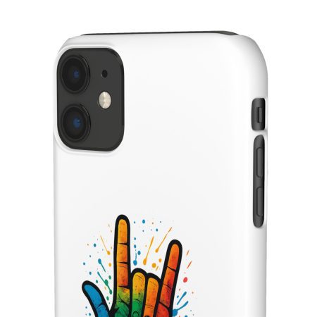 Diese lebendige Snap-Hülle ist eine Hommage an Individualität und Ausdruck, perfekt für alle, die ihre Persönlichkeit zeigen und gleichzeitig ihr Gerät schützen möchten. Diese aus robustem Polycarbonat gefertigte Hülle kombiniert Stärke mit Stil und sorgt dafür, dass Ihr Telefon aus der Masse hervorsticht. Das atemberaubende Design zeigt eine farbenfrohe Hand, die das „Ich liebe dich“-Zeichen in amerikanischer Gebärdensprache symbolisiert und eine einzigartige Botschaft der Liebe und Integration vermittelt. Egal, ob Sie Festivals oder Versammlungen besuchen oder einfach nur den Alltag genießen, dieses Snap Case verleiht Ihrem Alltag einen Hauch von Kreativität. Es ist perfekt für alle, die Wert auf Ausdruck legen, und somit ein ausgezeichnetes Geschenk für Freunde, Familie oder sich selbst, insbesondere zu Anlässen wie Geburtstagen, Feiertagen oder besonderen Feierlichkeiten im Zusammenhang mit der Gehörlosen- und Schwerhörigengemeinschaft. Die fröhliche Ausstrahlung dieser Hülle sorgt für positive Stimmung und regt Gespräche an – eine wunderbare Ergänzung zu Ihrem persönlichen Stil.
