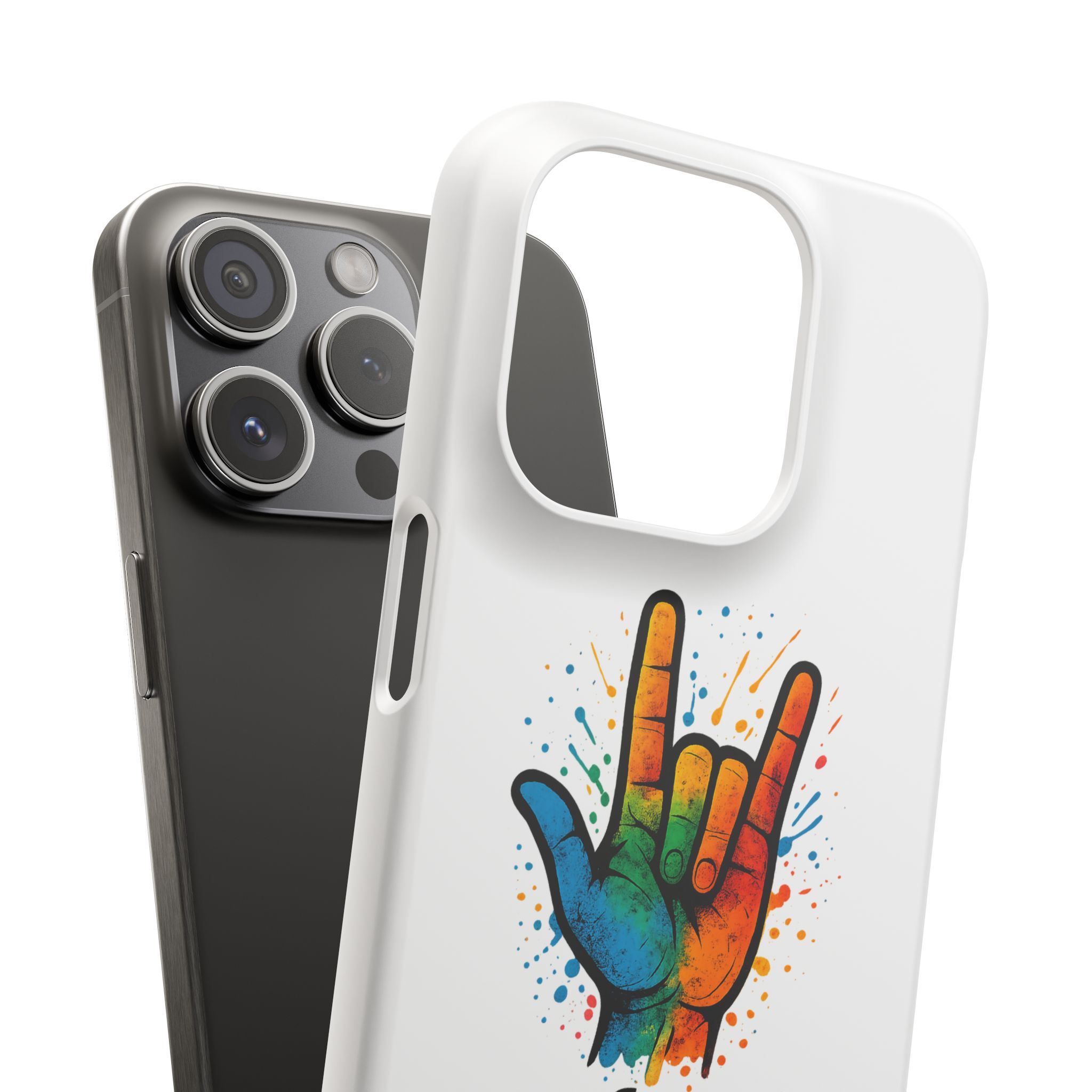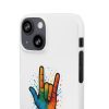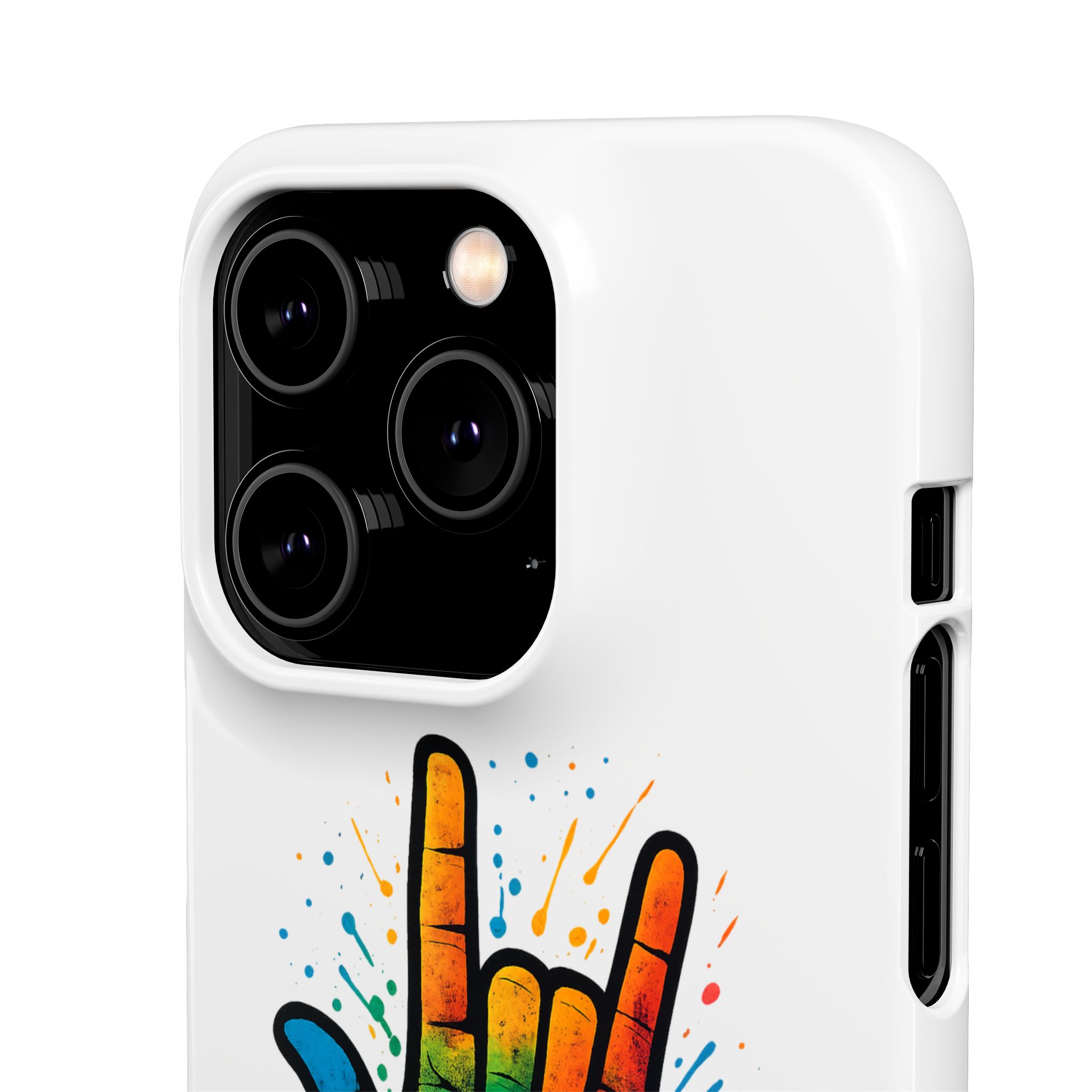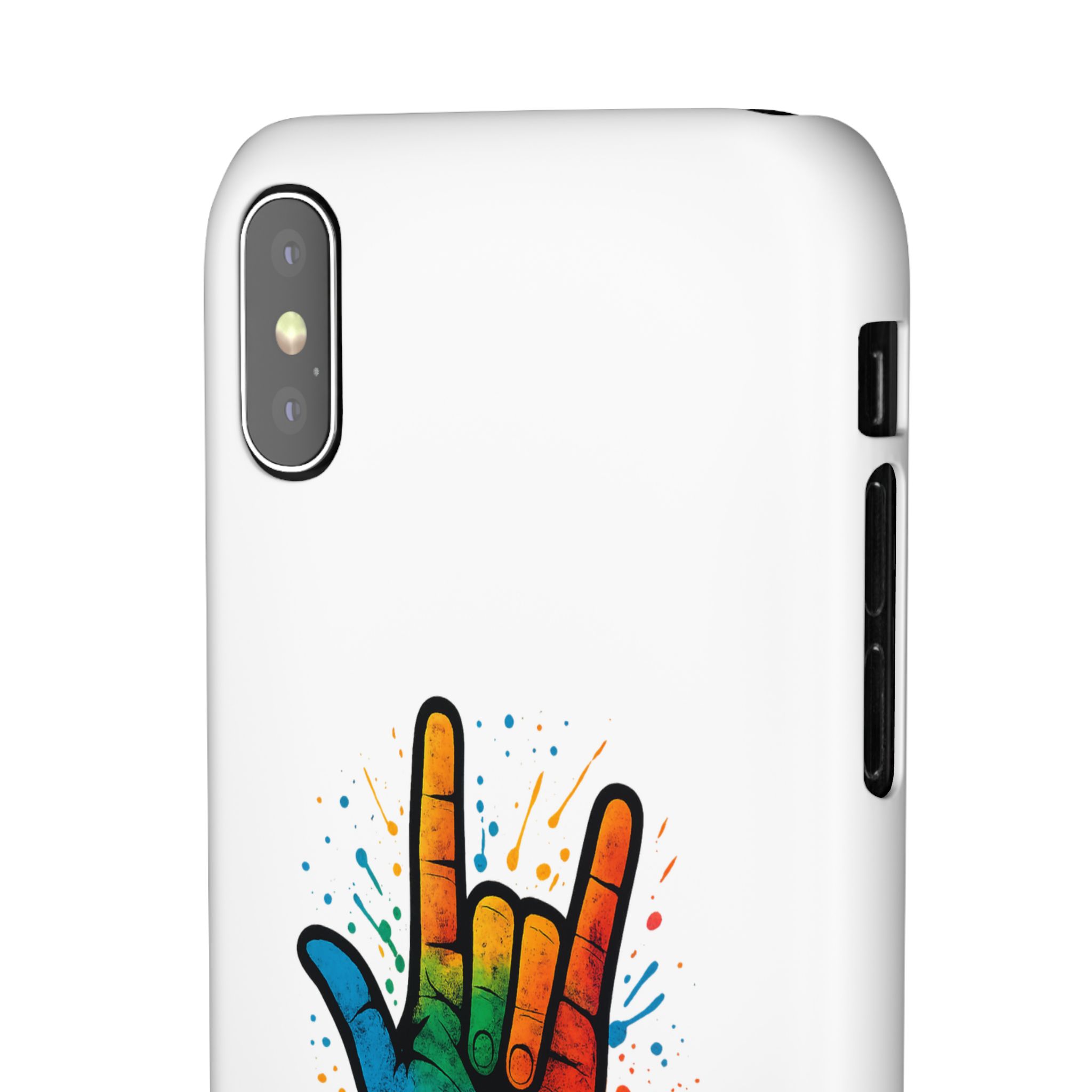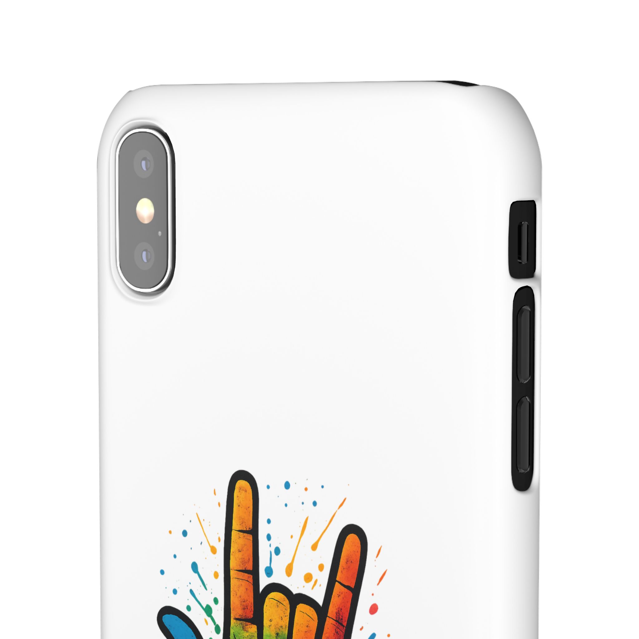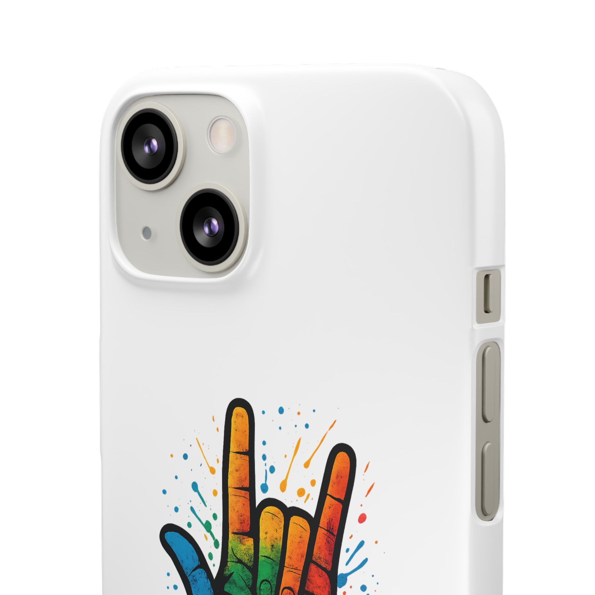 Diese lebendige Snap-Hülle ist eine Hommage an Individualität und Ausdruck, perfekt für alle, die ihre Persönlichkeit zeigen und gleichzeitig ihr Gerät schützen möchten. Diese aus robustem Polycarbonat gefertigte Hülle kombiniert Stärke mit Stil und sorgt dafür, dass Ihr Telefon aus der Masse hervorsticht. Das atemberaubende Design zeigt eine farbenfrohe Hand, die das „Ich liebe dich“-Zeichen in amerikanischer Gebärdensprache symbolisiert und eine einzigartige Botschaft der Liebe und Integration vermittelt. Egal, ob Sie Festivals oder Versammlungen besuchen oder einfach nur den Alltag genießen, dieses Snap Case verleiht Ihrem Alltag einen Hauch von Kreativität. Es ist perfekt für alle, die Wert auf Ausdruck legen, und somit ein ausgezeichnetes Geschenk für Freunde, Familie oder sich selbst, insbesondere zu Anlässen wie Geburtstagen, Feiertagen oder besonderen Feierlichkeiten im Zusammenhang mit der Gehörlosen- und Schwerhörigengemeinschaft. Die fröhliche Ausstrahlung dieser Hülle sorgt für positive Stimmung und regt Gespräche an – eine wunderbare Ergänzung zu Ihrem persönlichen Stil.