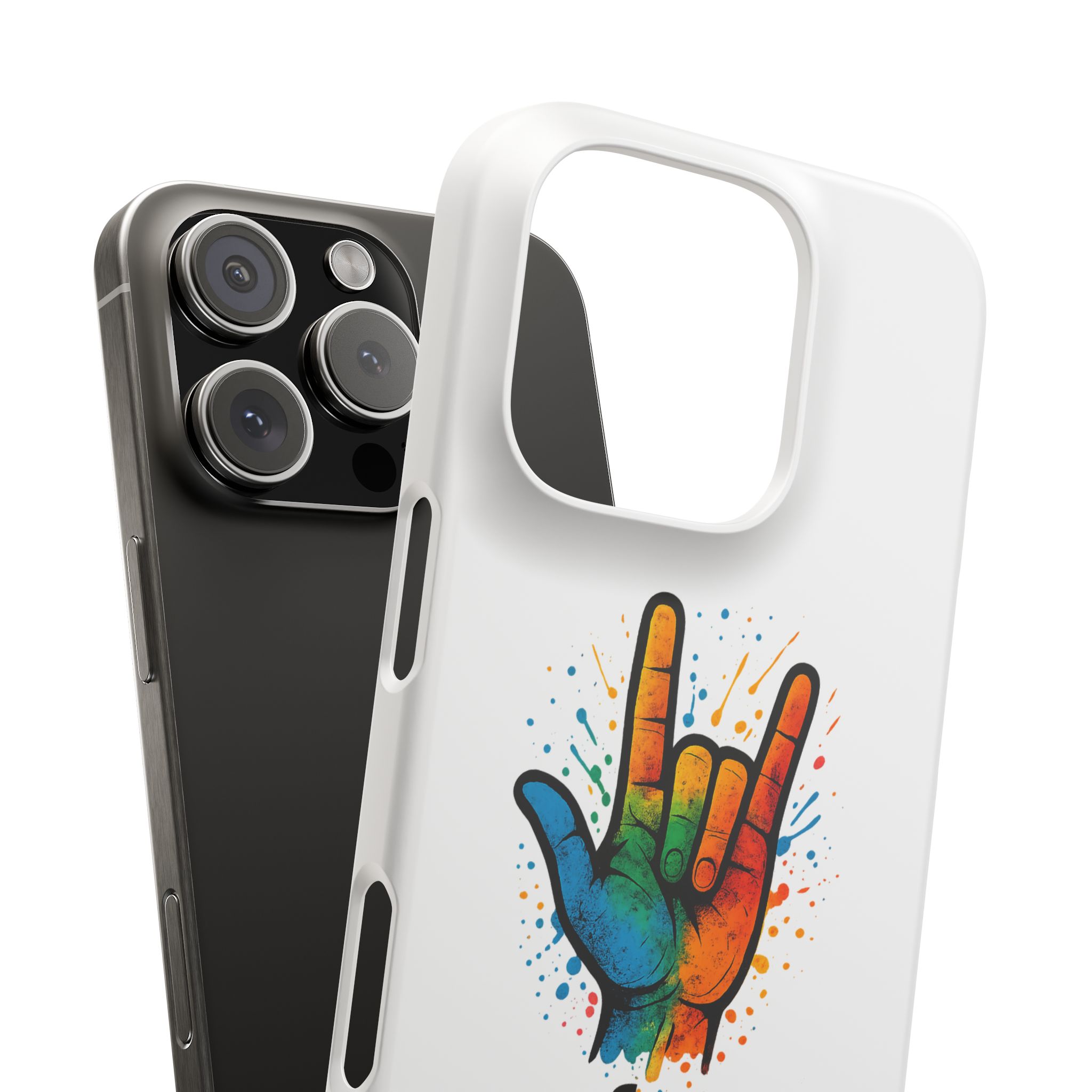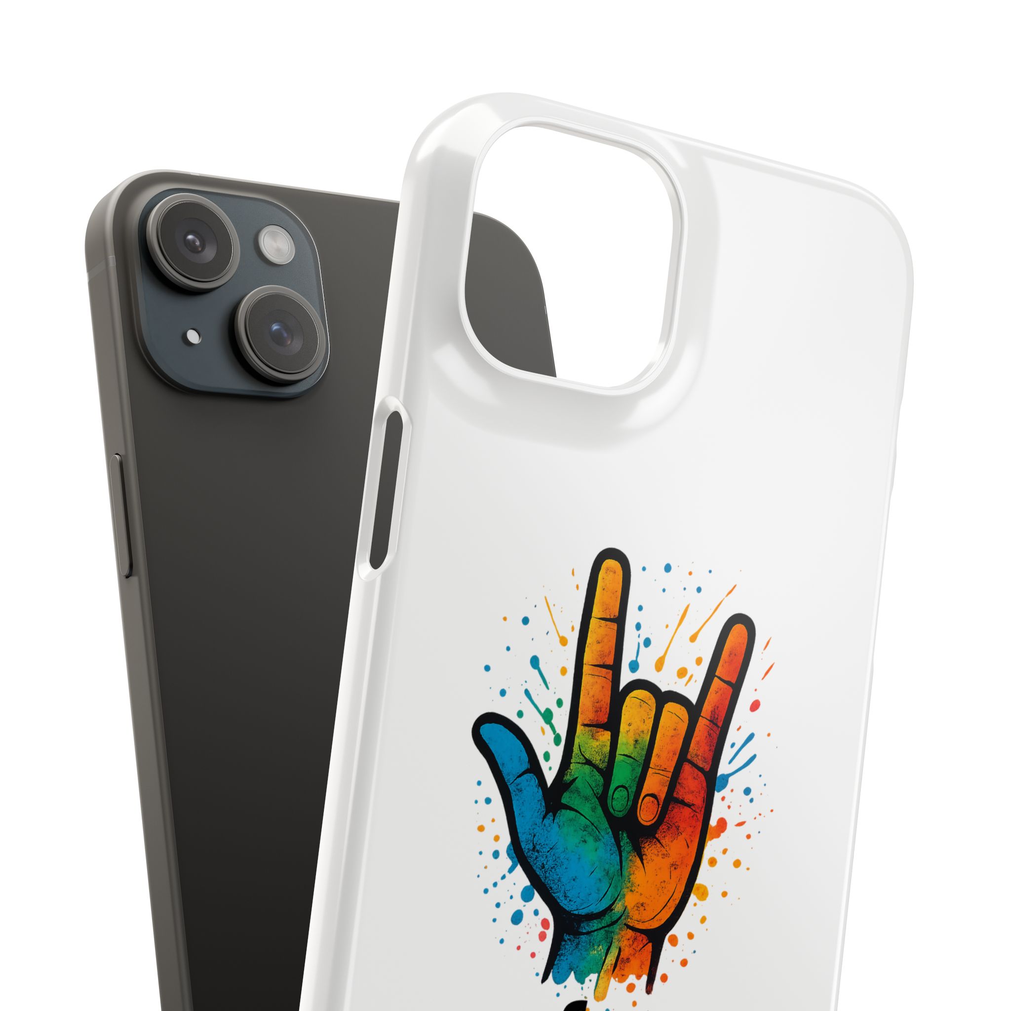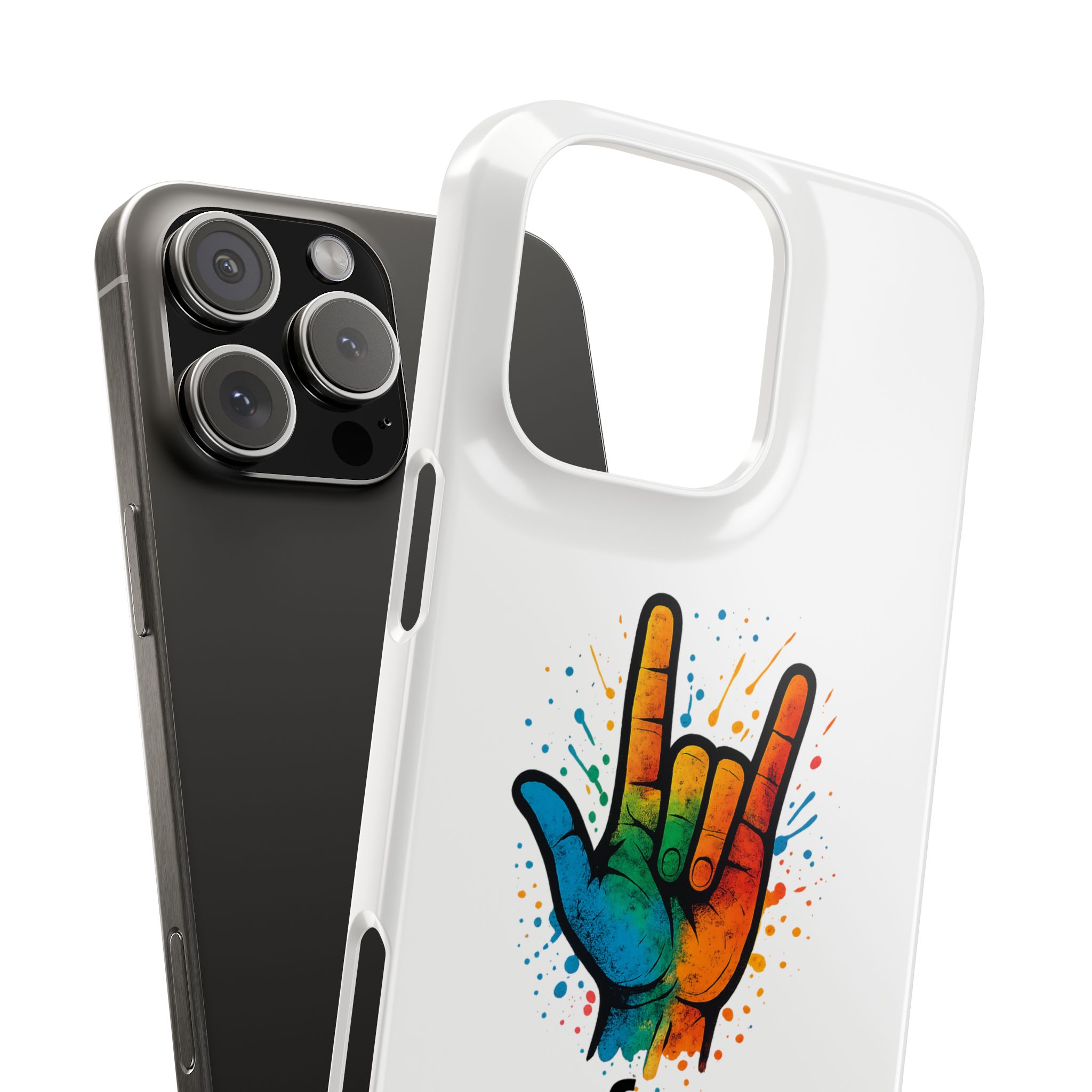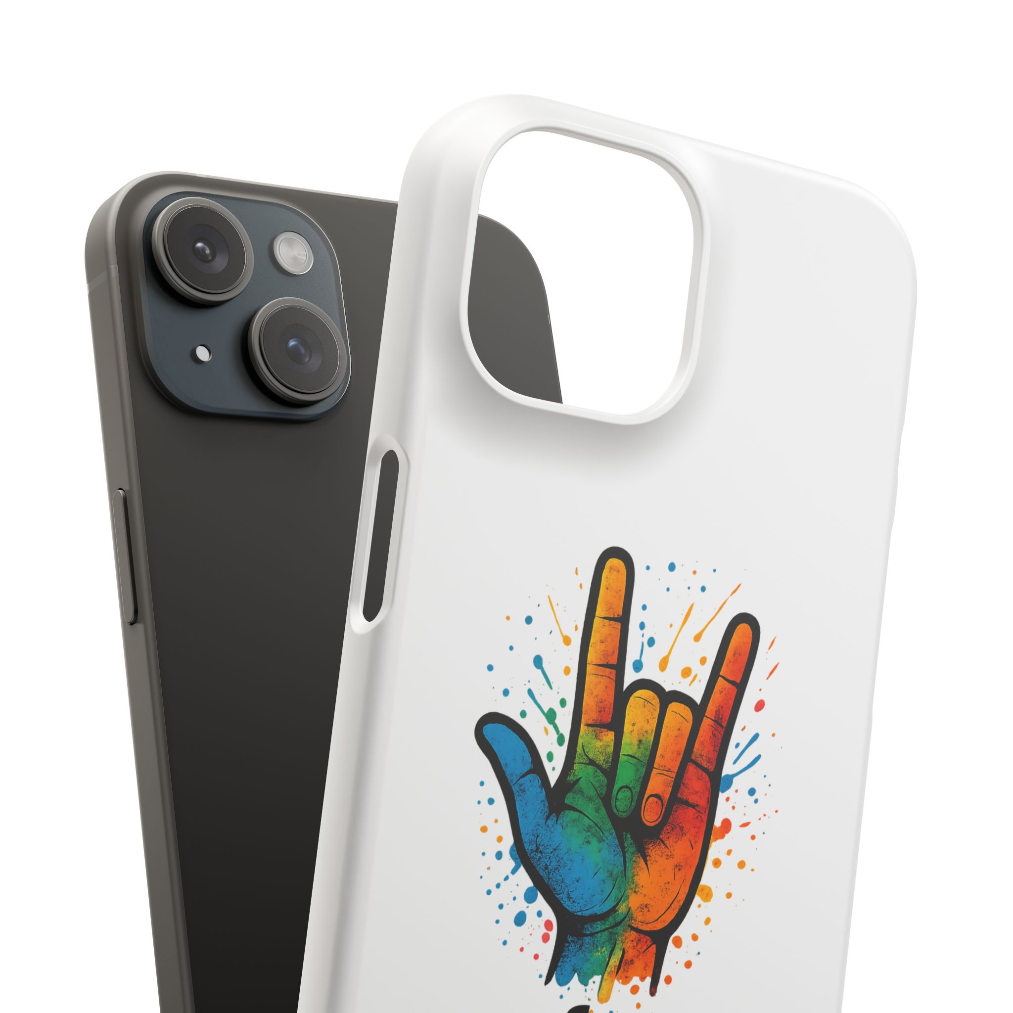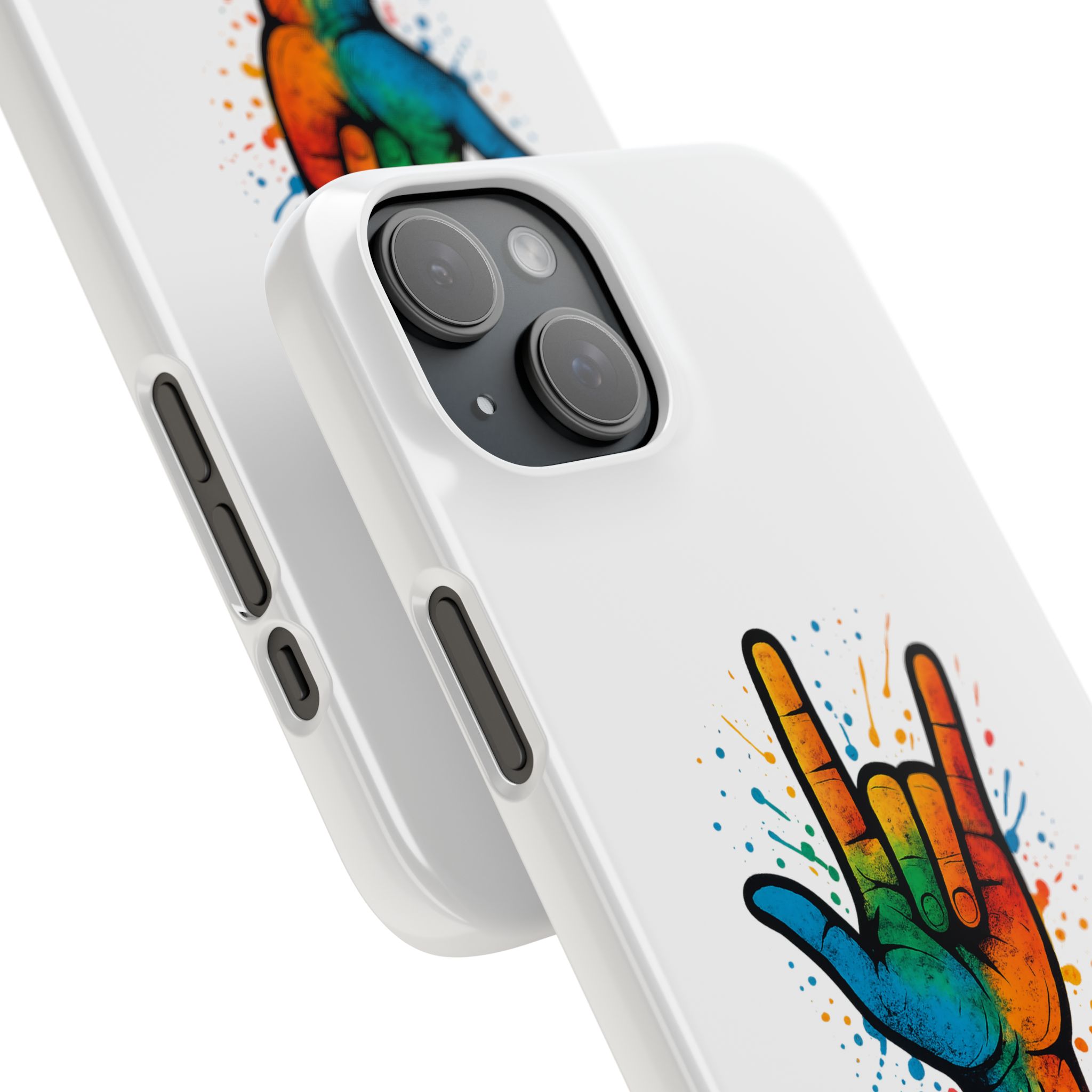 Diese lebendige Snap-Hülle ist eine Hommage an Individualität und Ausdruck, perfekt für alle, die ihre Persönlichkeit zeigen und gleichzeitig ihr Gerät schützen möchten. Diese aus robustem Polycarbonat gefertigte Hülle kombiniert Stärke mit Stil und sorgt dafür, dass Ihr Telefon aus der Masse hervorsticht. Das atemberaubende Design zeigt eine farbenfrohe Hand, die das „Ich liebe dich“-Zeichen in amerikanischer Gebärdensprache symbolisiert und eine einzigartige Botschaft der Liebe und Integration vermittelt. Egal, ob Sie Festivals oder Versammlungen besuchen oder einfach nur den Alltag genießen, dieses Snap Case verleiht Ihrem Alltag einen Hauch von Kreativität. Es ist perfekt für alle, die Wert auf Ausdruck legen, und somit ein ausgezeichnetes Geschenk für Freunde, Familie oder sich selbst, insbesondere zu Anlässen wie Geburtstagen, Feiertagen oder besonderen Feierlichkeiten im Zusammenhang mit der Gehörlosen- und Schwerhörigengemeinschaft. Die fröhliche Ausstrahlung dieser Hülle sorgt für positive Stimmung und regt Gespräche an – eine wunderbare Ergänzung zu Ihrem persönlichen Stil.