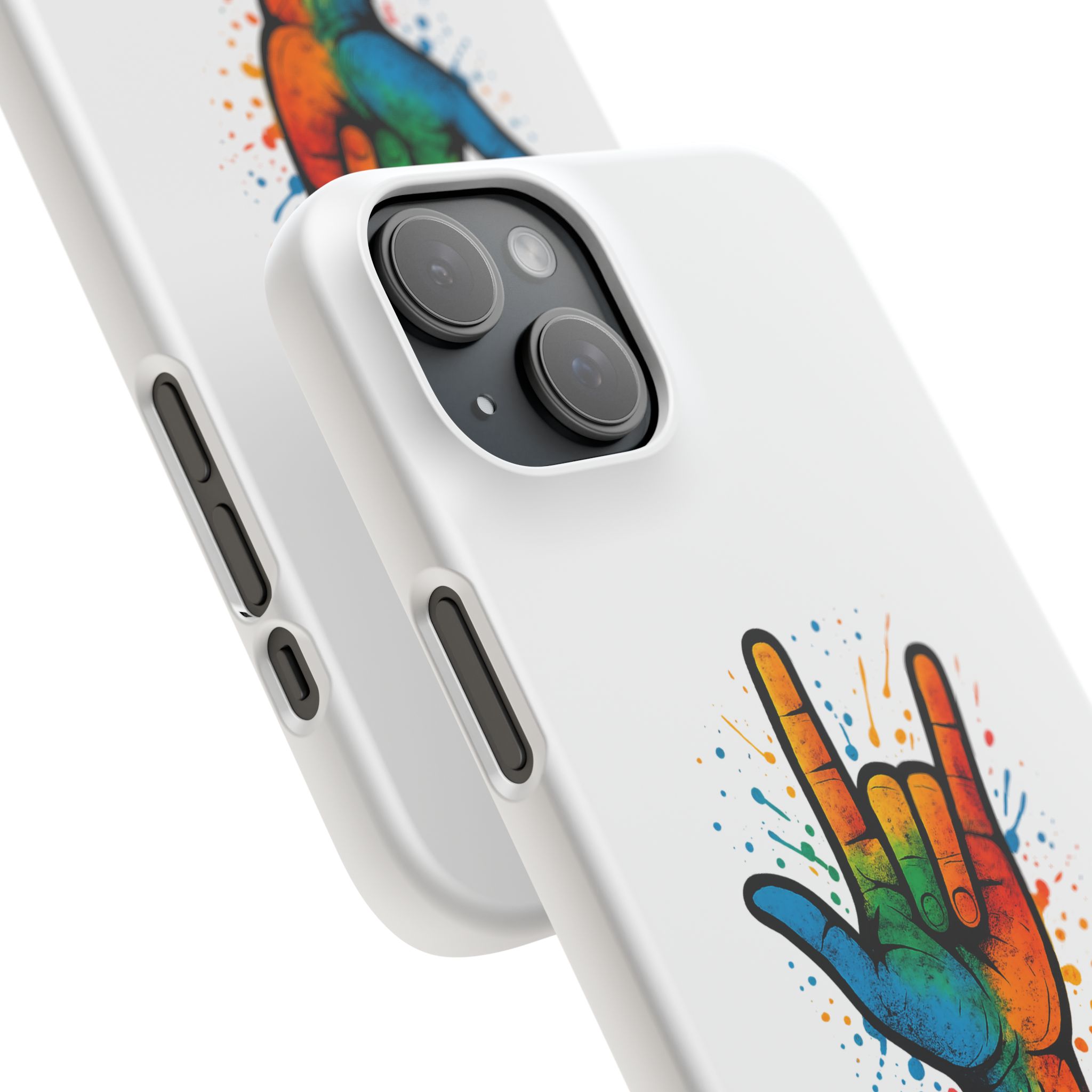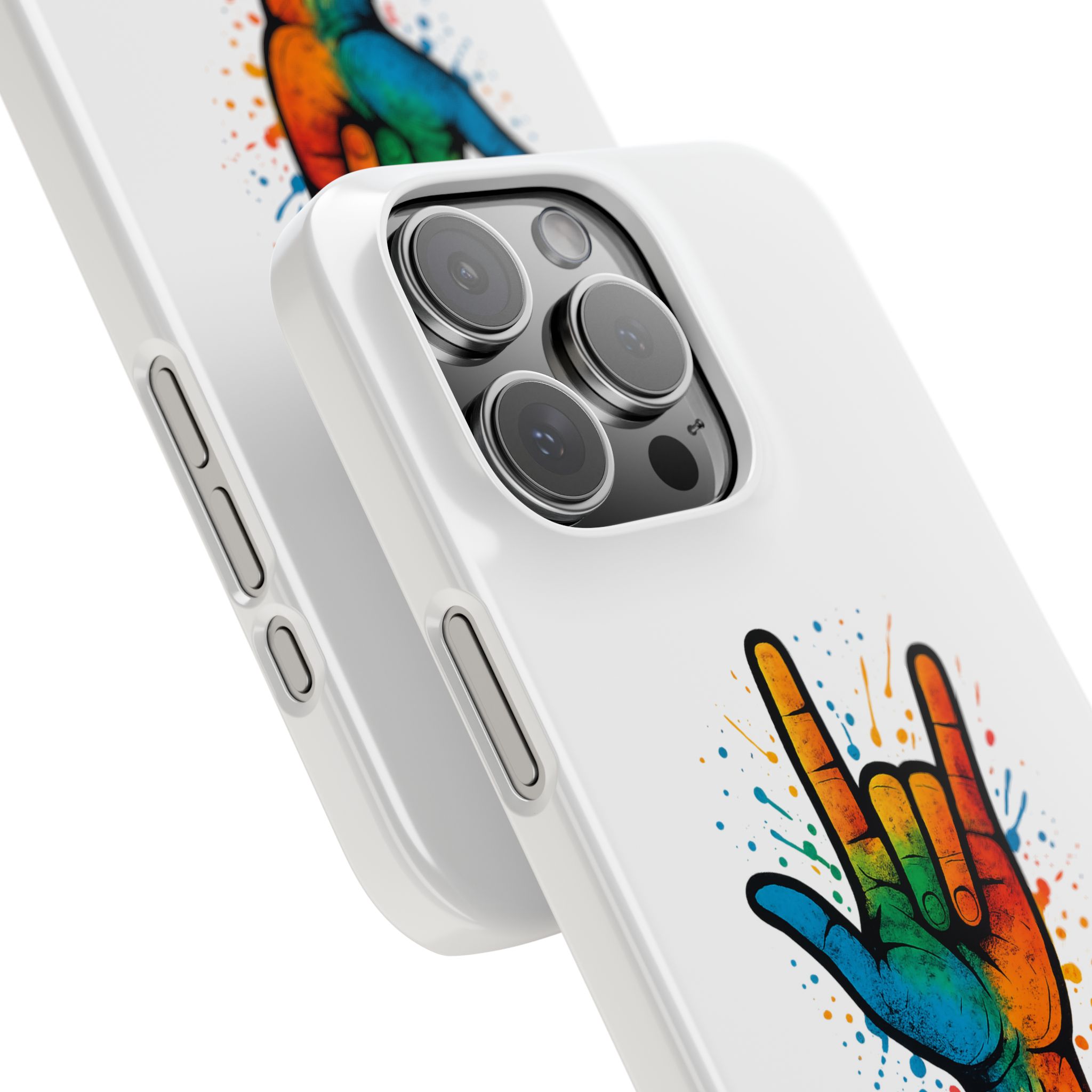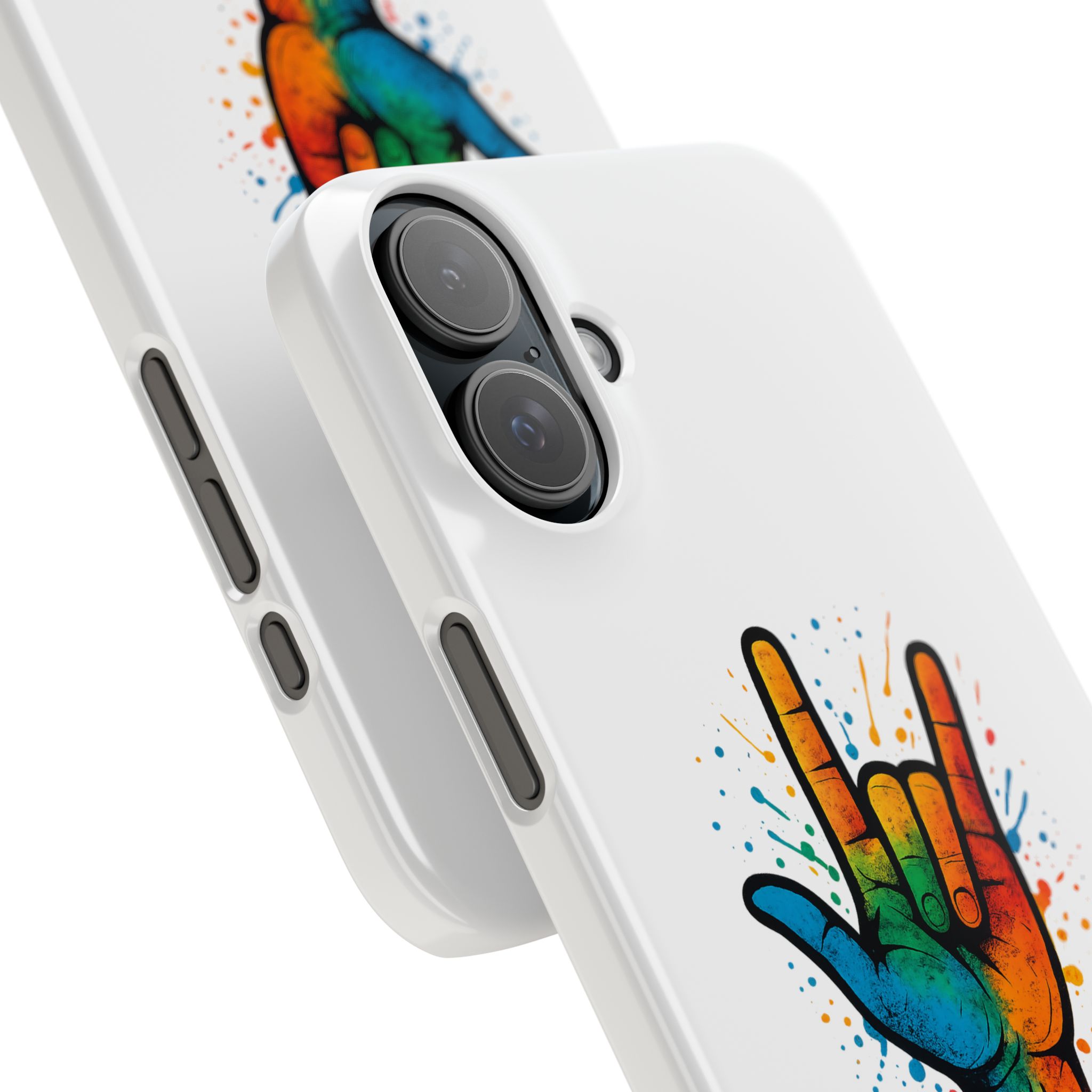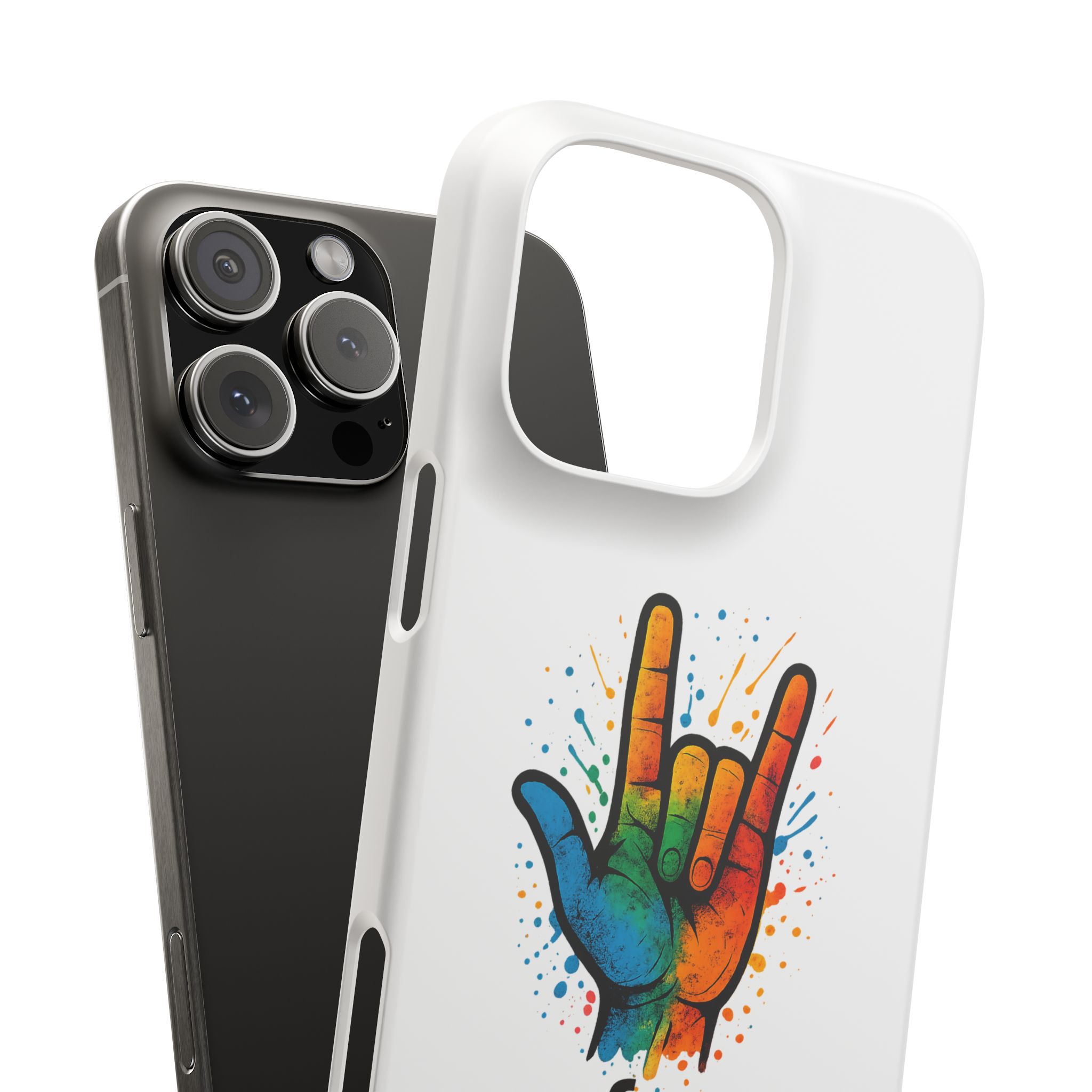 Diese lebendige Snap-Hülle ist eine Hommage an Individualität und Ausdruck, perfekt für alle, die ihre Persönlichkeit zeigen und gleichzeitig ihr Gerät schützen möchten. Diese aus robustem Polycarbonat gefertigte Hülle kombiniert Stärke mit Stil und sorgt dafür, dass Ihr Telefon aus der Masse hervorsticht. Das atemberaubende Design zeigt eine farbenfrohe Hand, die das „Ich liebe dich“-Zeichen in amerikanischer Gebärdensprache symbolisiert und eine einzigartige Botschaft der Liebe und Integration vermittelt. Egal, ob Sie Festivals oder Versammlungen besuchen oder einfach nur den Alltag genießen, dieses Snap Case verleiht Ihrem Alltag einen Hauch von Kreativität. Es ist perfekt für alle, die Wert auf Ausdruck legen, und somit ein ausgezeichnetes Geschenk für Freunde, Familie oder sich selbst, insbesondere zu Anlässen wie Geburtstagen, Feiertagen oder besonderen Feierlichkeiten im Zusammenhang mit der Gehörlosen- und Schwerhörigengemeinschaft. Die fröhliche Ausstrahlung dieser Hülle sorgt für positive Stimmung und regt Gespräche an – eine wunderbare Ergänzung zu Ihrem persönlichen Stil.