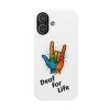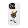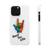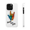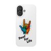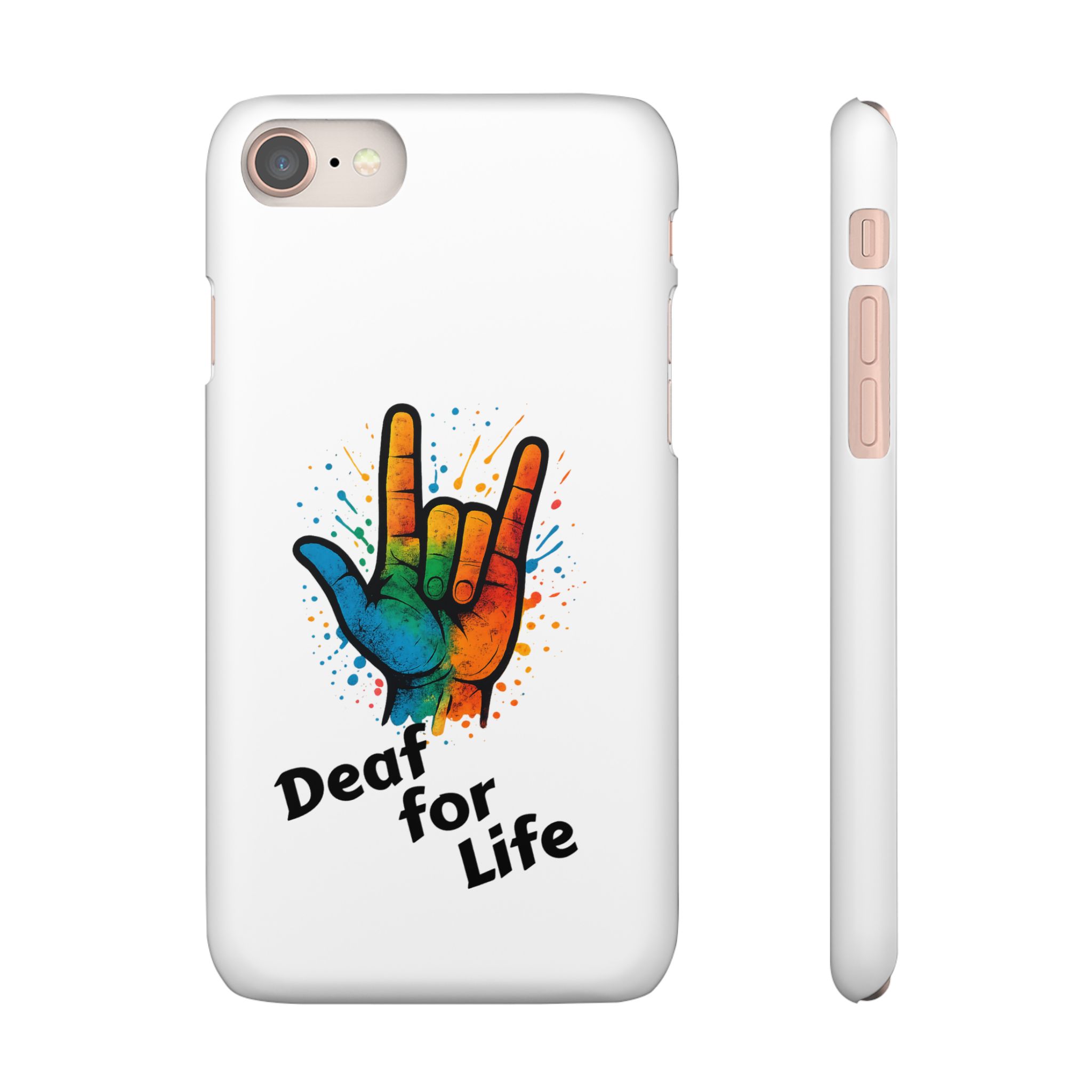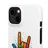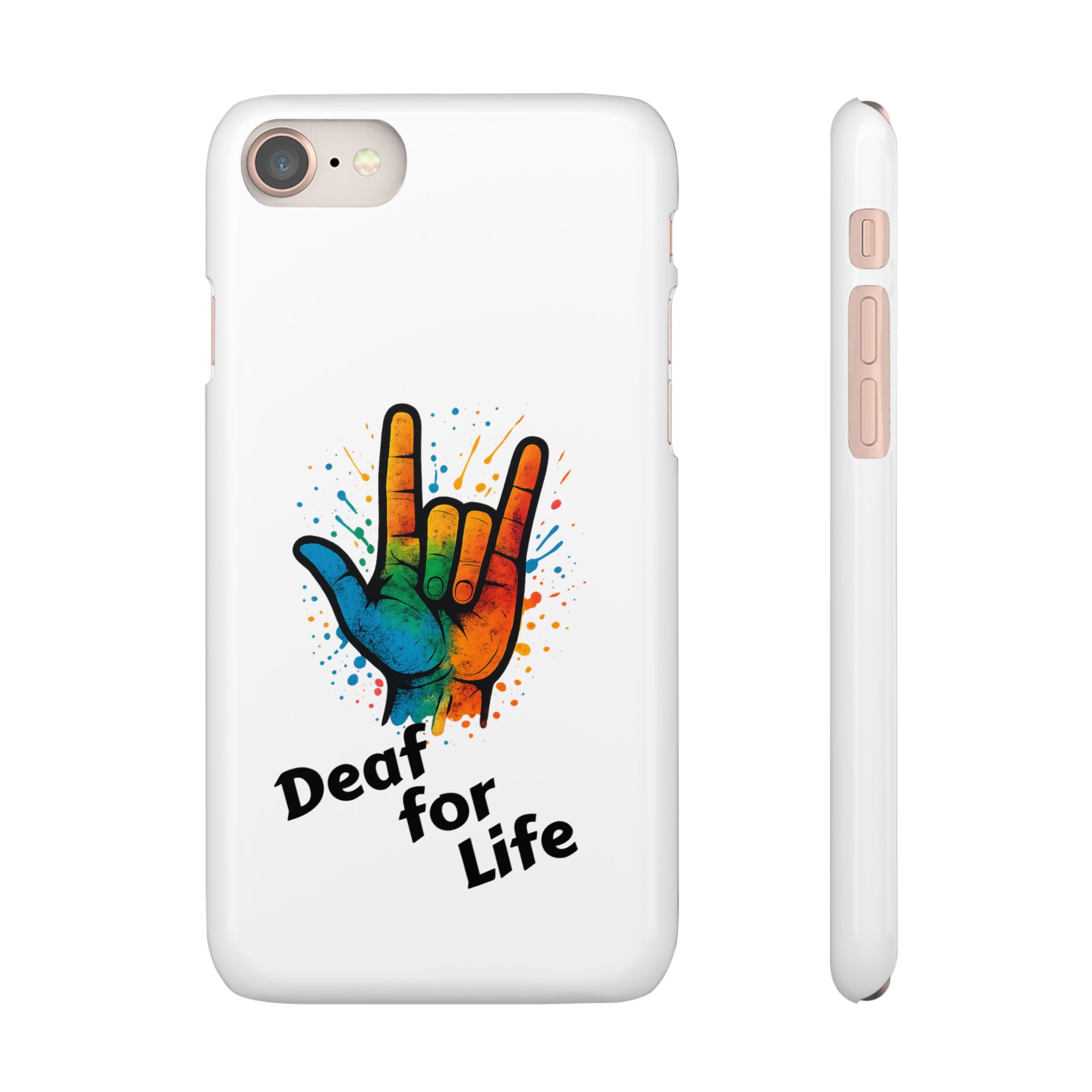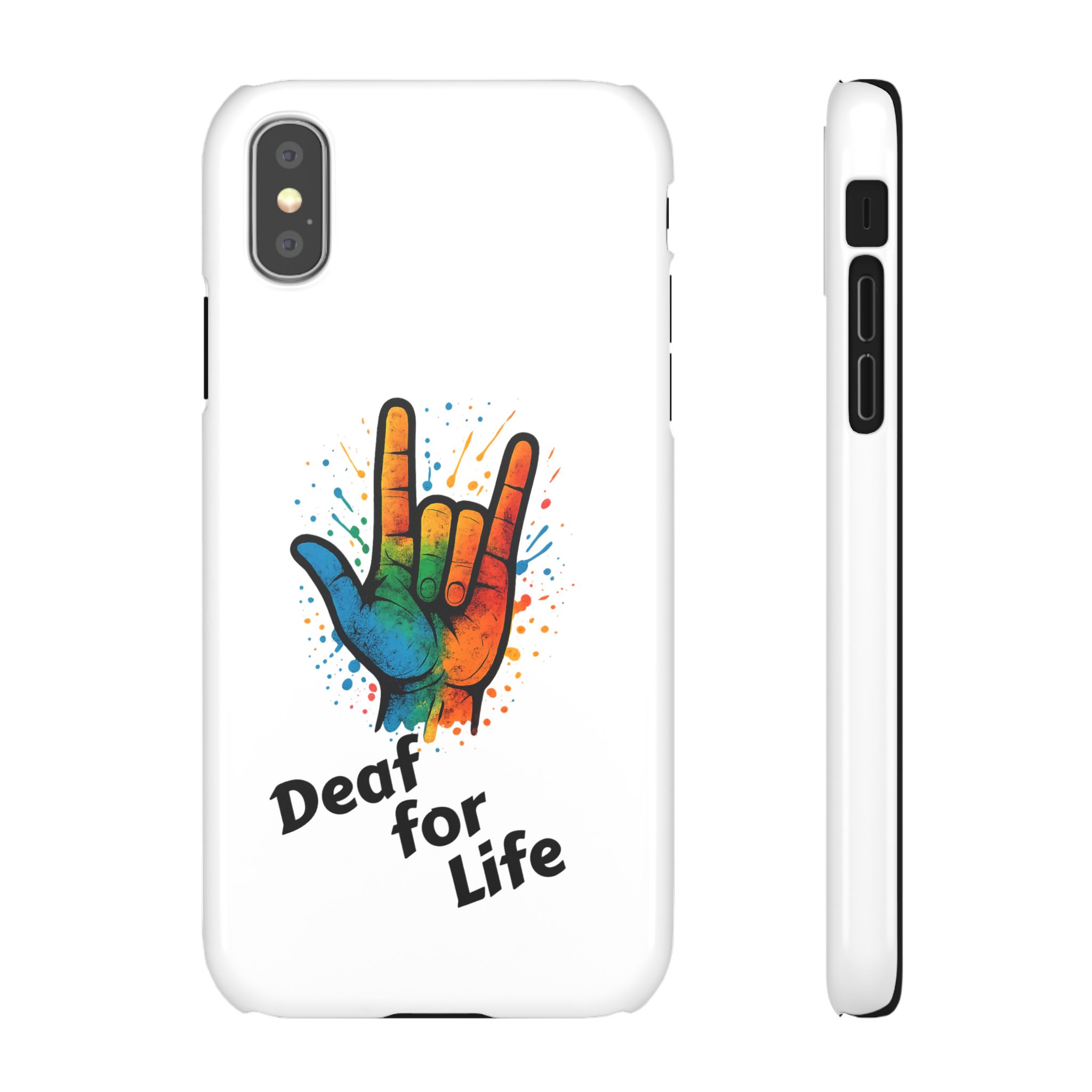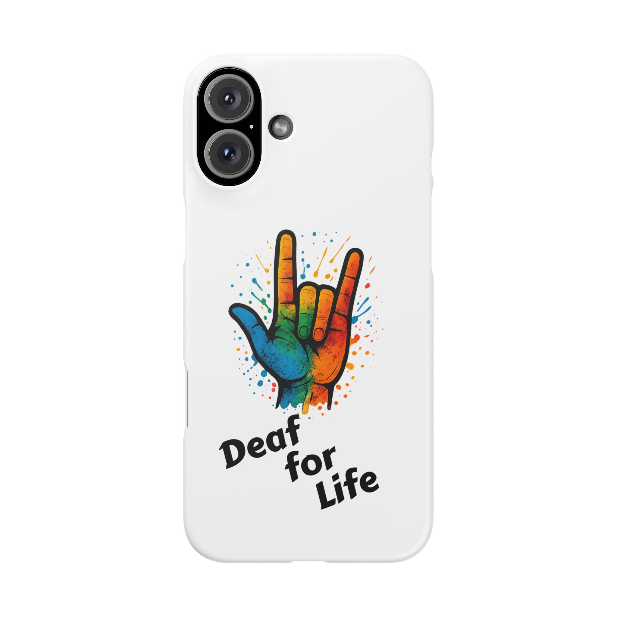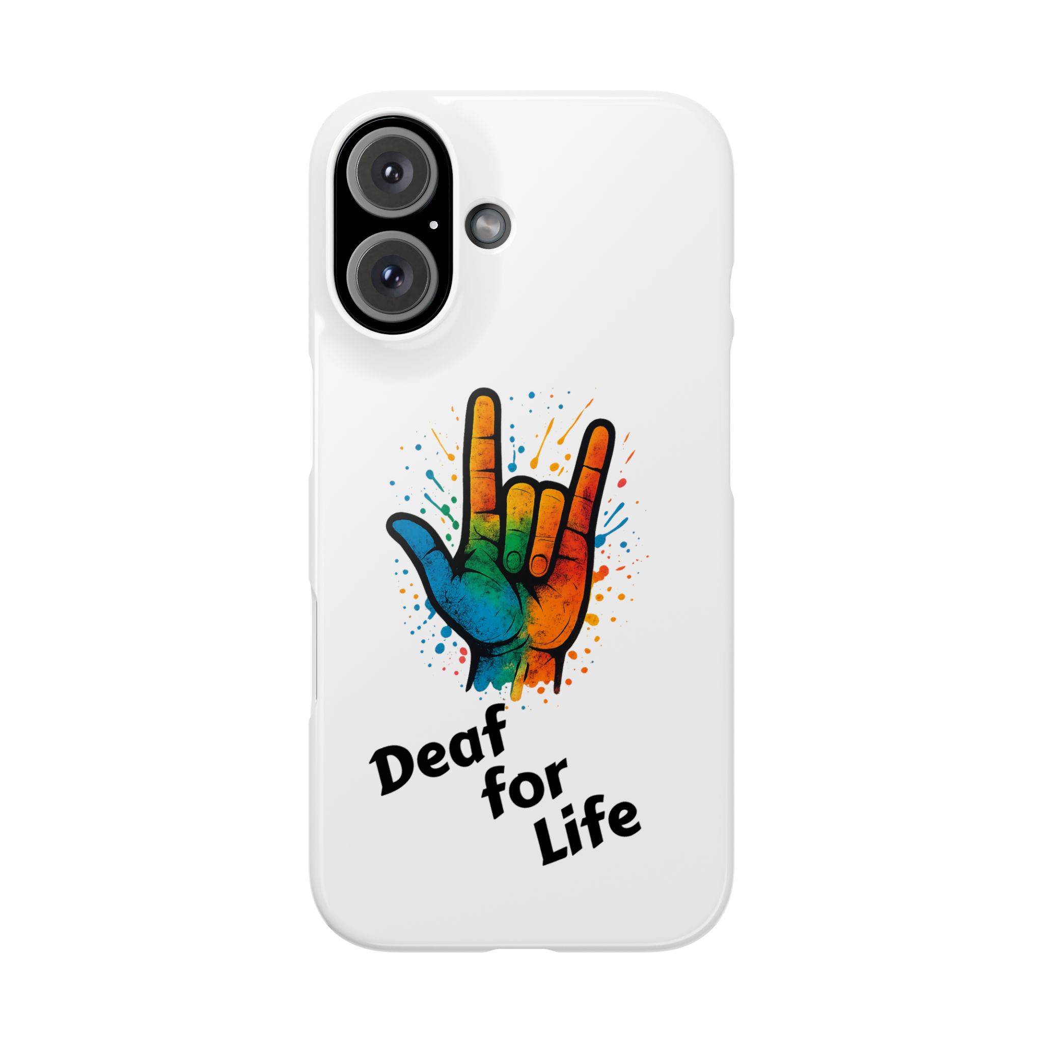 Diese lebendige Snap-Hülle ist eine Hommage an Individualität und Ausdruck, perfekt für alle, die ihre Persönlichkeit zeigen und gleichzeitig ihr Gerät schützen möchten. Diese aus robustem Polycarbonat gefertigte Hülle kombiniert Stärke mit Stil und sorgt dafür, dass Ihr Telefon aus der Masse hervorsticht. Das atemberaubende Design zeigt eine farbenfrohe Hand, die das „Ich liebe dich“-Zeichen in amerikanischer Gebärdensprache symbolisiert und eine einzigartige Botschaft der Liebe und Integration vermittelt. Egal, ob Sie Festivals oder Versammlungen besuchen oder einfach nur den Alltag genießen, dieses Snap Case verleiht Ihrem Alltag einen Hauch von Kreativität. Es ist perfekt für alle, die Wert auf Ausdruck legen, und somit ein ausgezeichnetes Geschenk für Freunde, Familie oder sich selbst, insbesondere zu Anlässen wie Geburtstagen, Feiertagen oder besonderen Feierlichkeiten im Zusammenhang mit der Gehörlosen- und Schwerhörigengemeinschaft. Die fröhliche Ausstrahlung dieser Hülle sorgt für positive Stimmung und regt Gespräche an – eine wunderbare Ergänzung zu Ihrem persönlichen Stil.