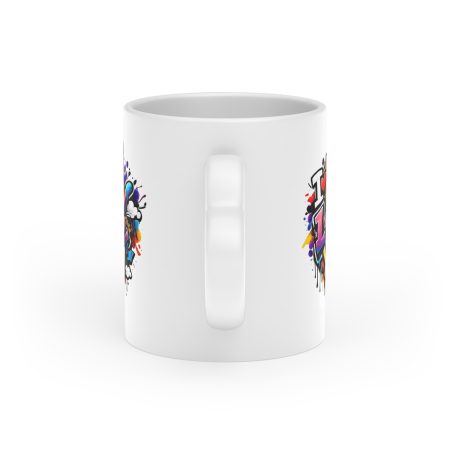 Diese farbenfrohe Graffiti-Keramiktasse (11oz) bringt moderne Street-Art-Vibes direkt an deinen Frühstückstisch. Das lebendige, vollflächige Graffiti-Design leuchtet unter einer hochwertigen Duraglaze-Beschichtung und setzt einen starken, urbanen Akzent auf dem weißen Keramikkörper. Der herzförmige Griff macht die Tasse zu einem besonderen Highlight – perfekt als Geschenk oder für alle, die ihren Kaffee oder Tee mit Persönlichkeit genießen möchten. Die robuste, REACH-zertifizierte Keramik ist langlebig, alltagstauglich und spülmaschinenfest. Ideal für Kunstliebhaber, Farb-Fans und alle, die ihren Alltag mit einem kreativen Statement bereichern wollen.