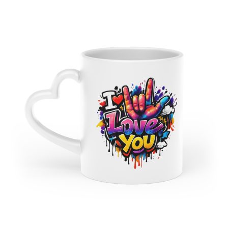 Herzentasse weiss - "I Love You" mit Handzeichen in Comic-StyleHerzentasse weiss – „I Love You“ mit Handzeichen in Comic-Style